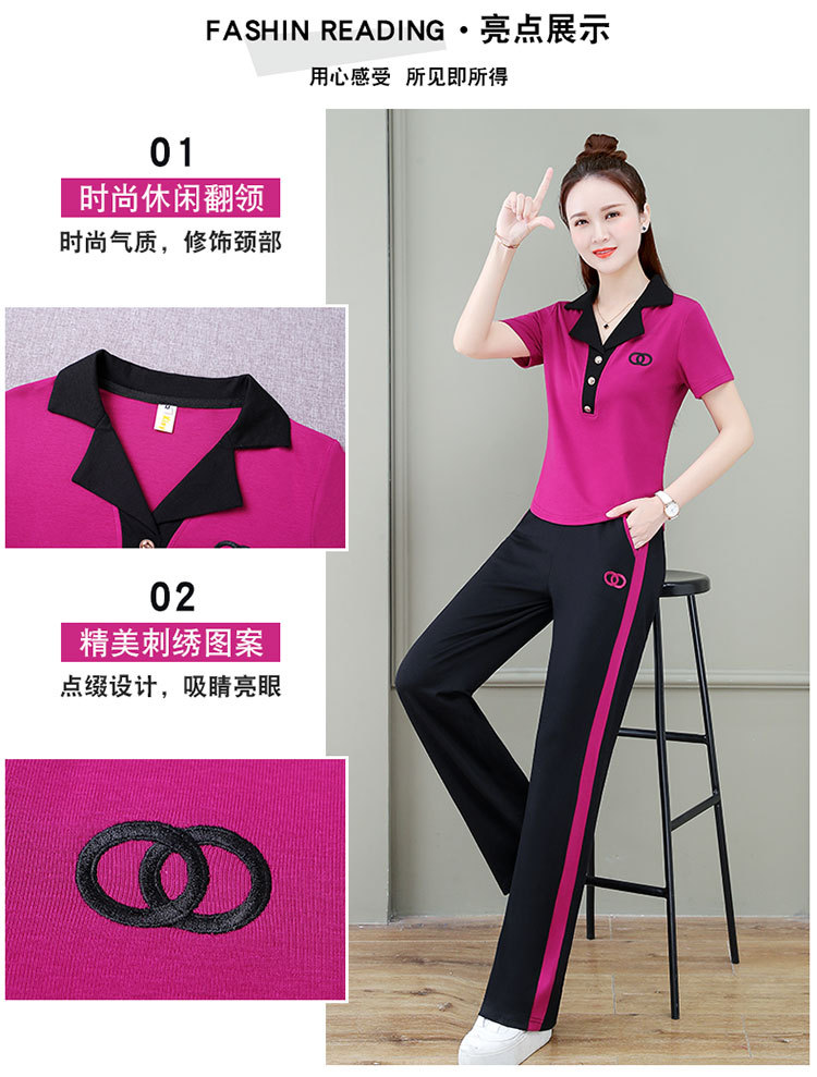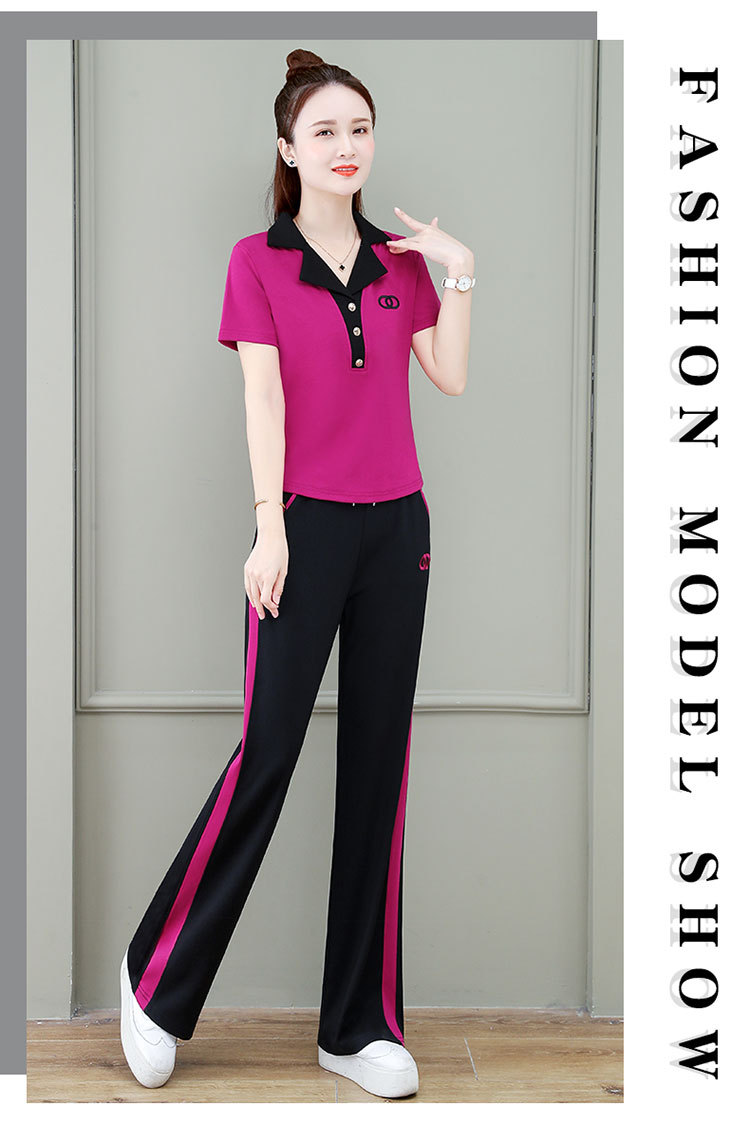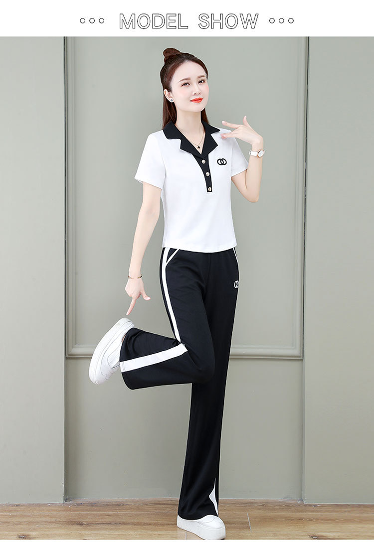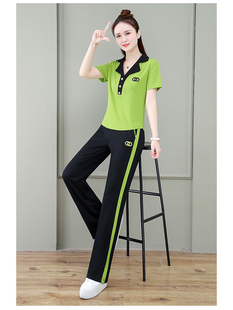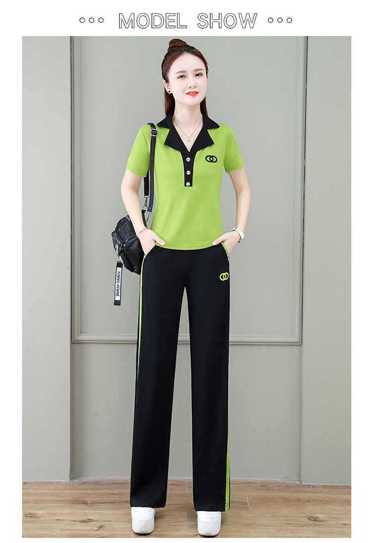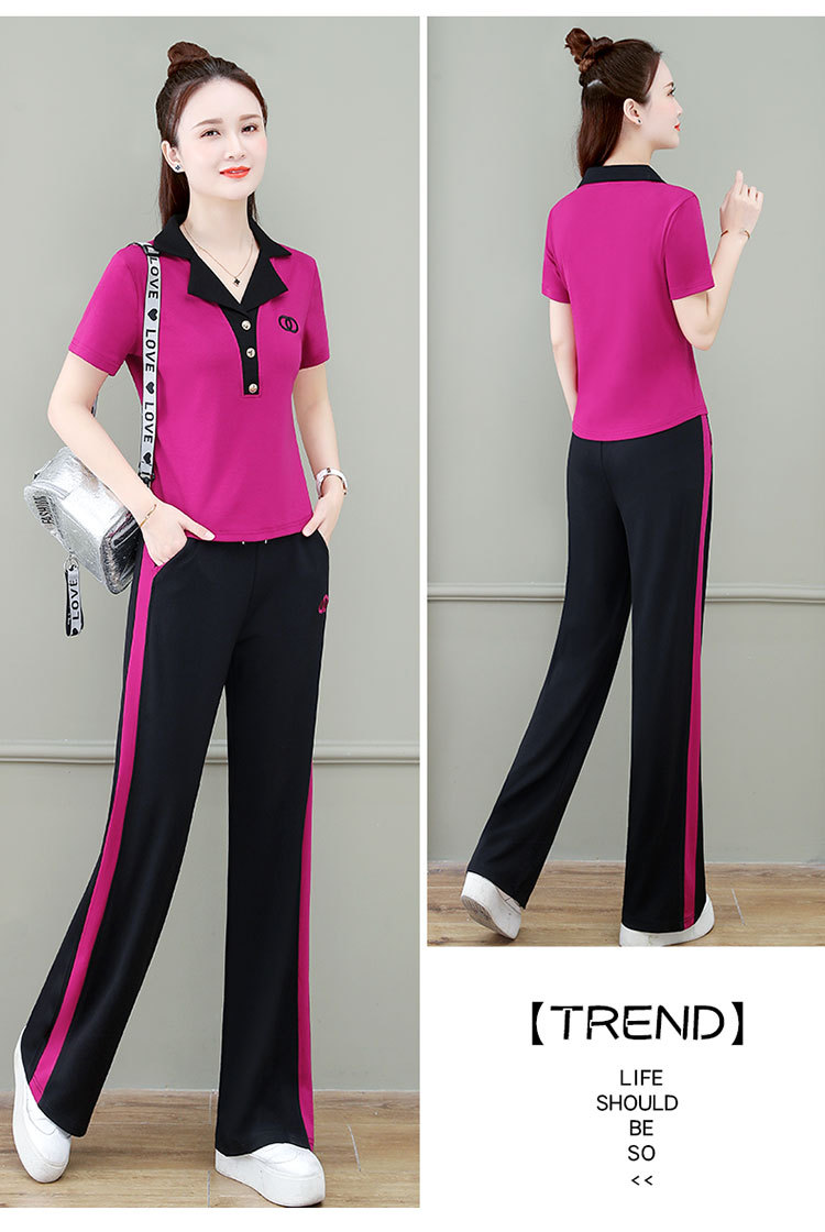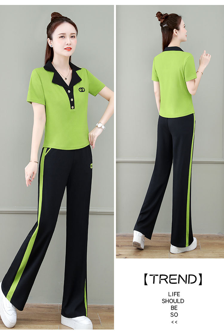 夏季新款,时尚显瘦运动休闲套装女韩系V领短袖T恤阔腿裤两件套ZYR-8303