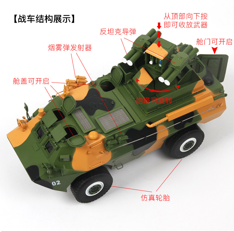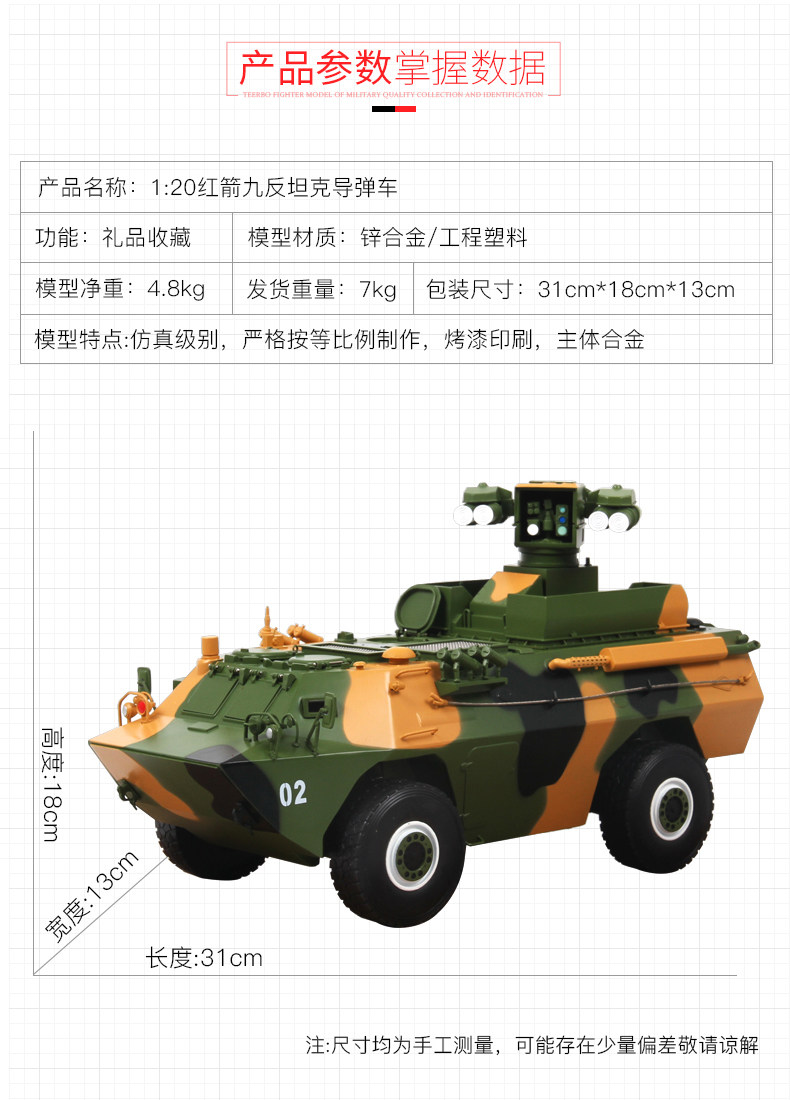 1:20红箭9反坦克导弹车模型合金坦克装甲车军事模型摆件成品