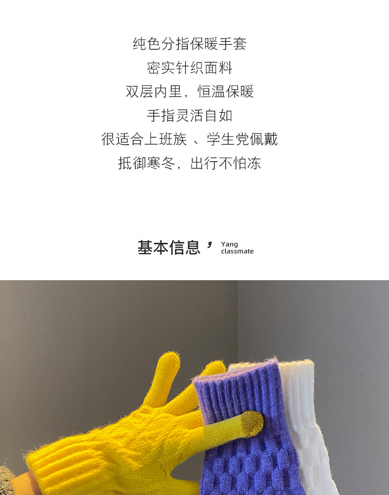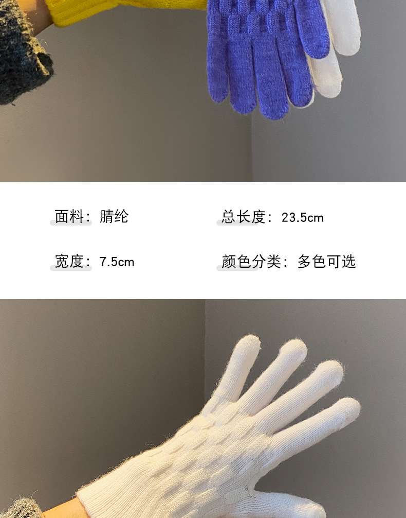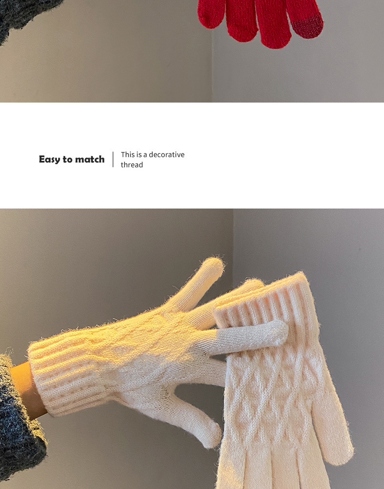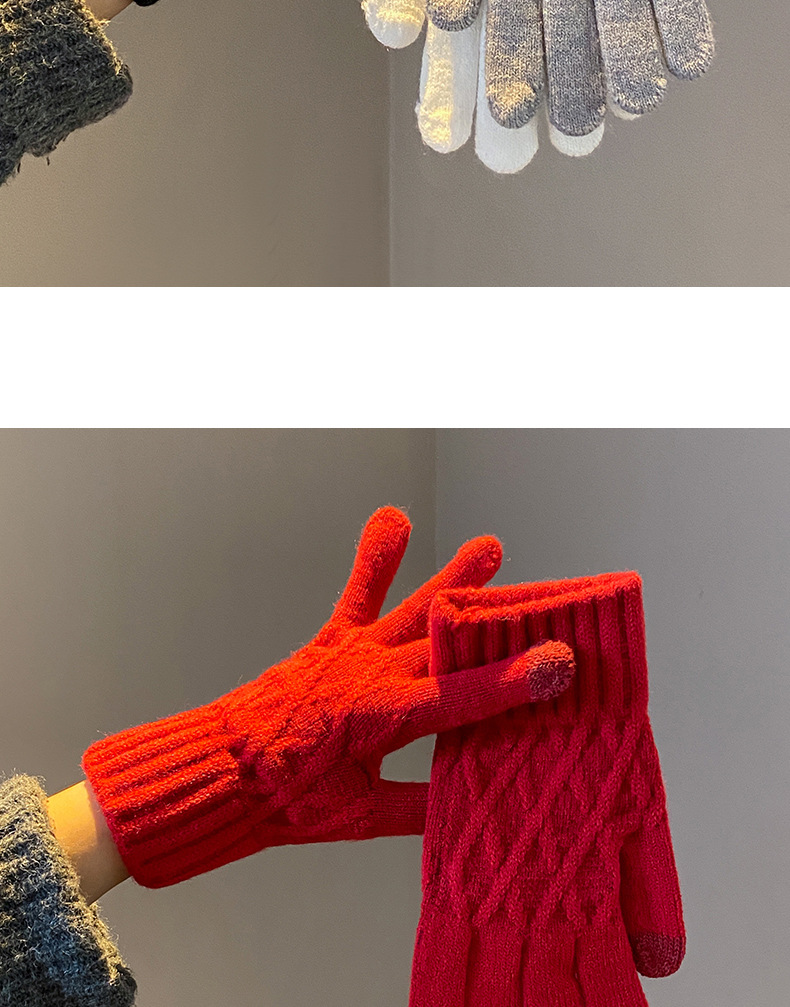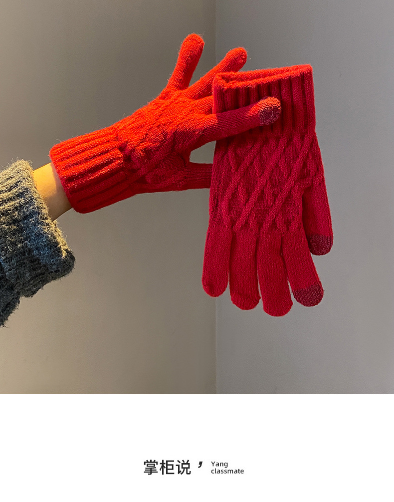 丁摩 韩国款安可拉红色毛线针织手套女士高弹冬季五指可触屏保暖手套 7972174
