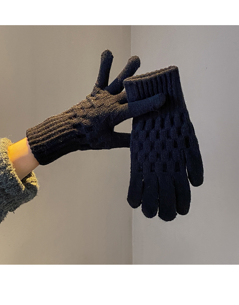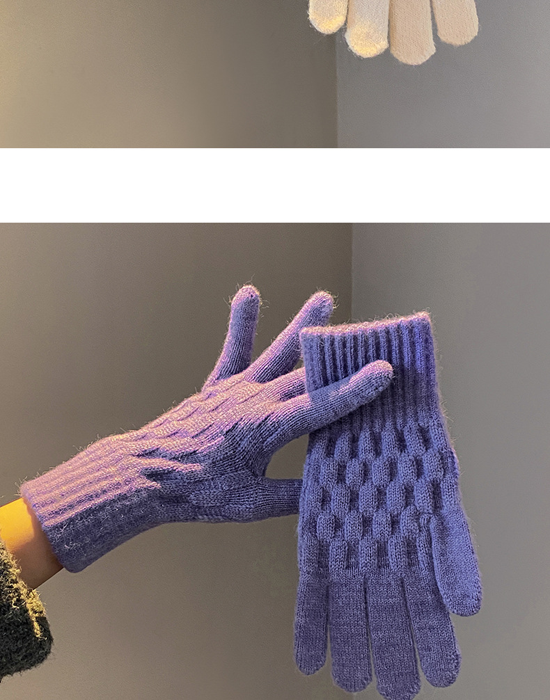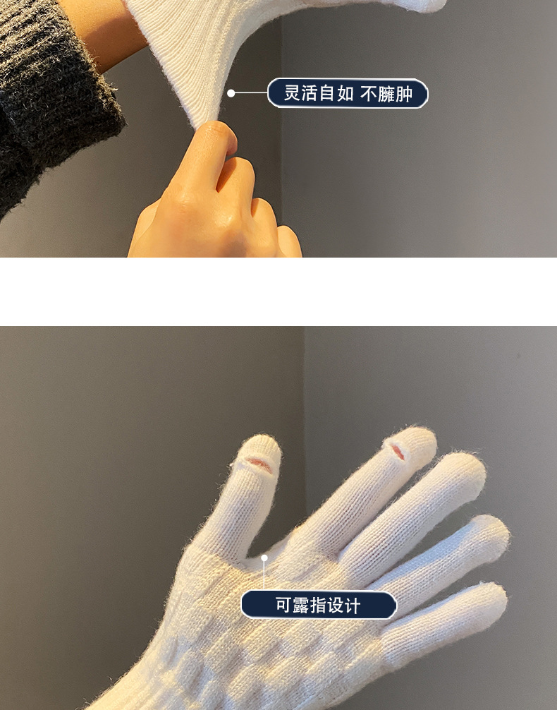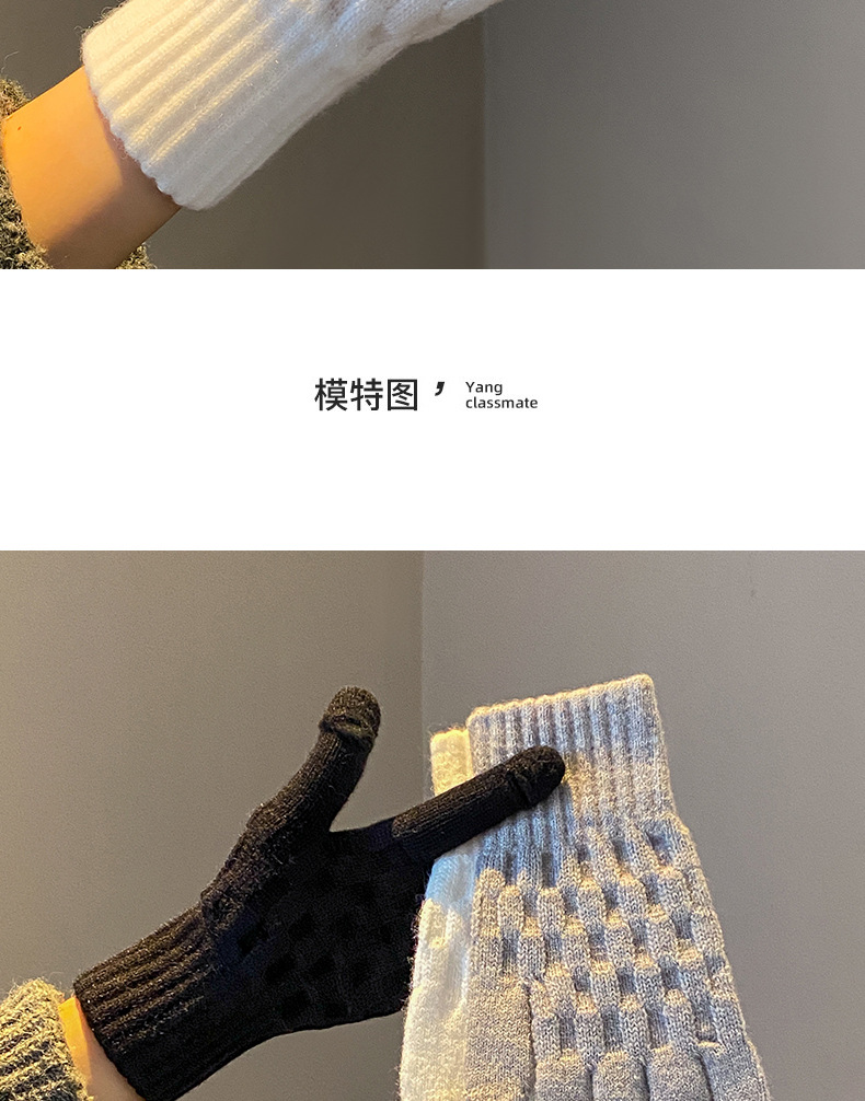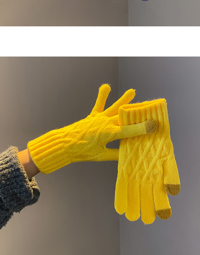 丁摩 韩国款安可拉红色毛线针织手套女士高弹冬季五指可触屏保暖手套 7972174
