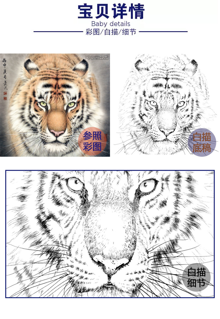 工笔动物白描底稿-老虎头-王爱民-斗方小品册页-WH16