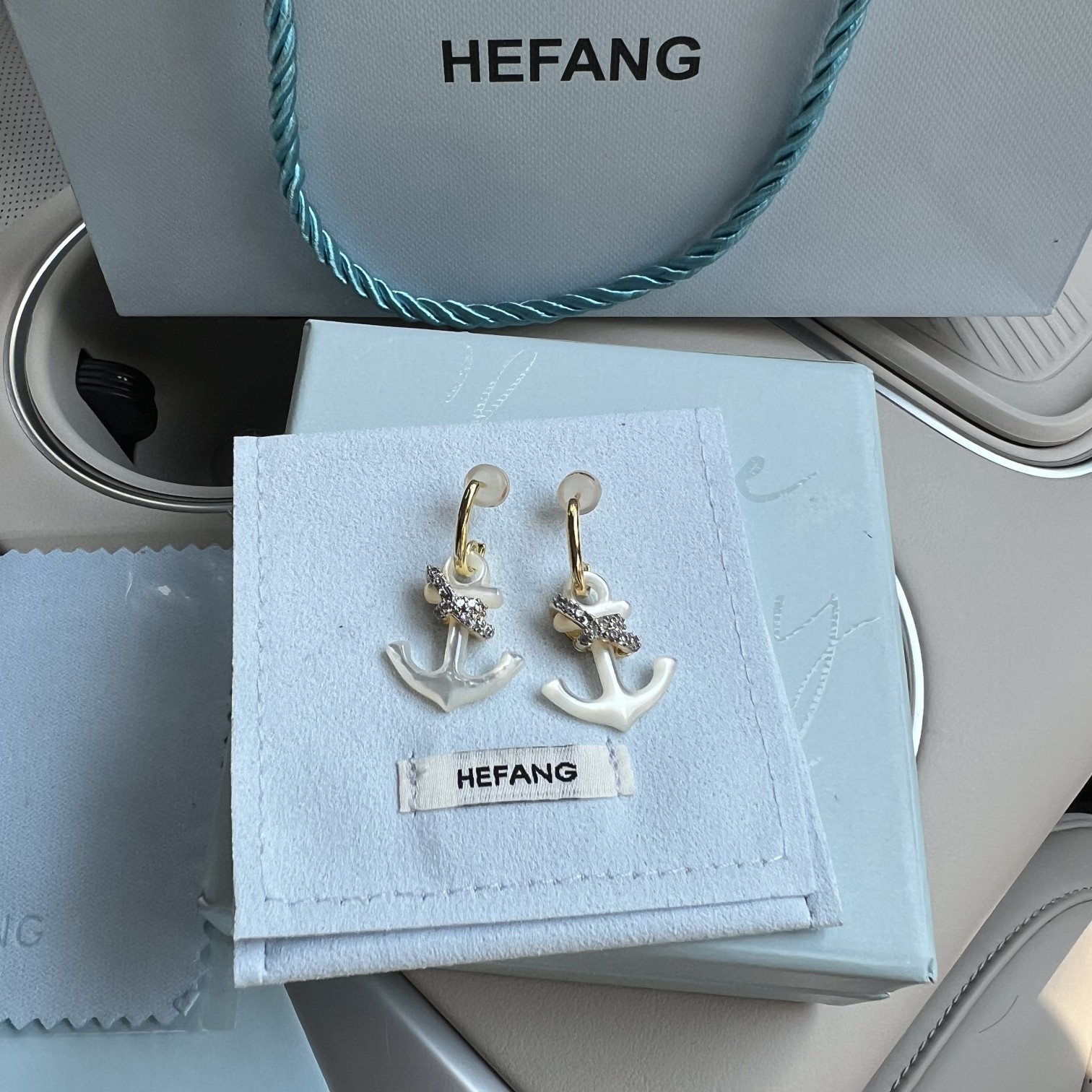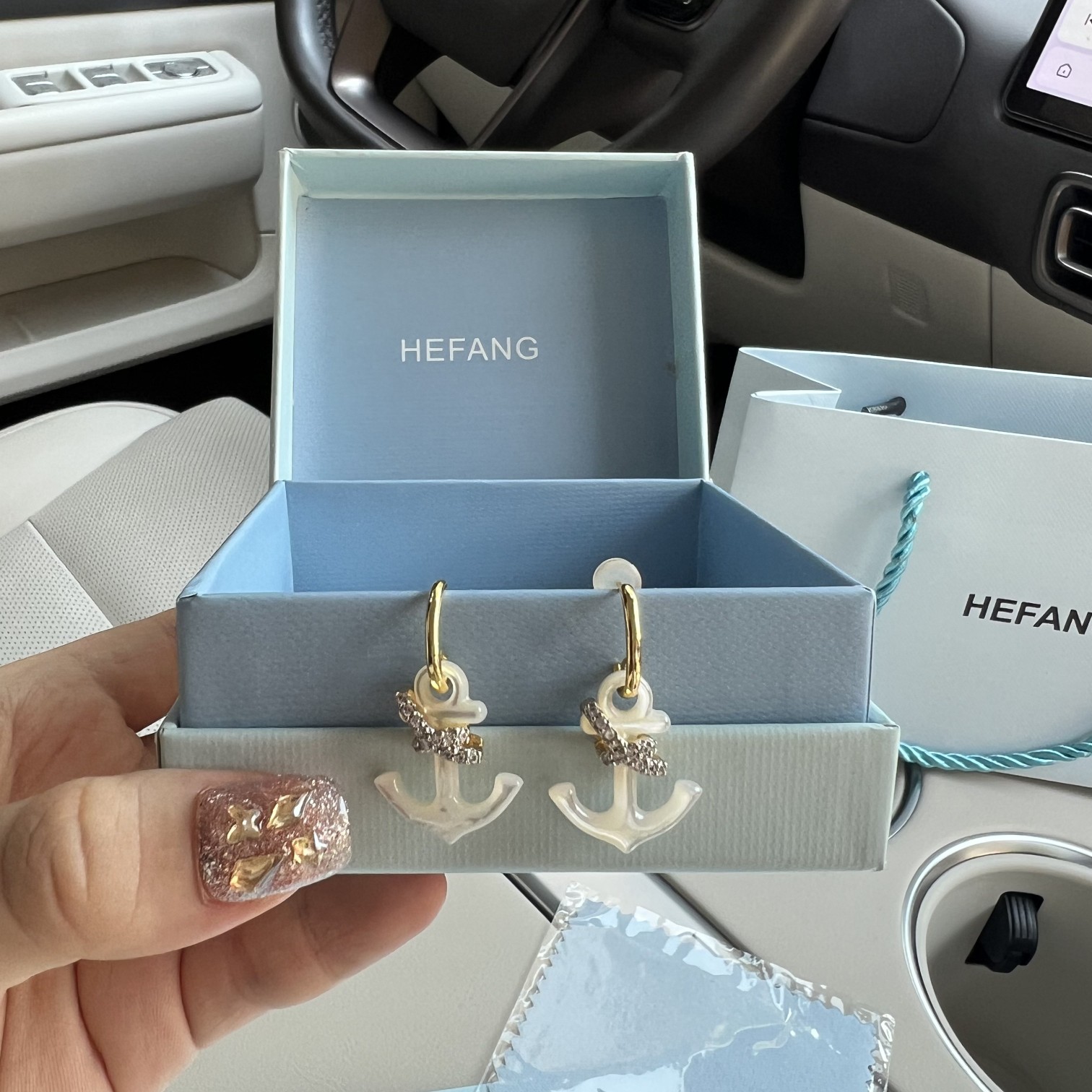 HEFANG何方珠宝闪闪船锚耳环耳钉轻奢饰品耳饰配饰女生日礼物,配全套包装