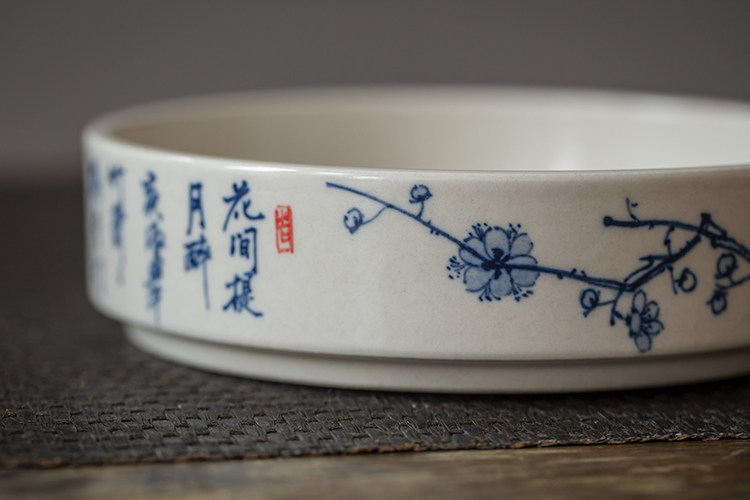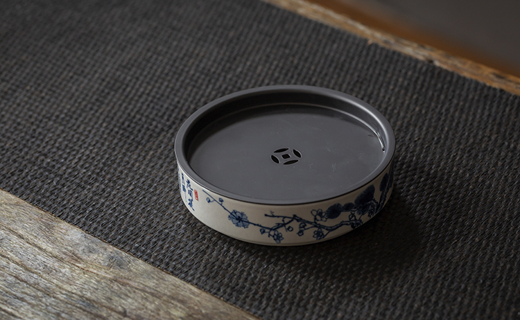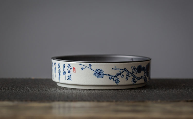 撑起茶席之美起到不小帮助的手绘青花干泡盘。