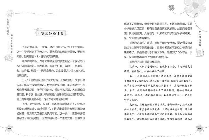 《十一份检讨书》是一本校园儿童小说,讲述了发生在北京某小学五年三班的故事,通过学生们写检讨书这个侧面,展现了孩子们真实的生活,包括他们的快乐,他们的烦恼,他们的智慧……提出了作者对小学教育的思考和理念。