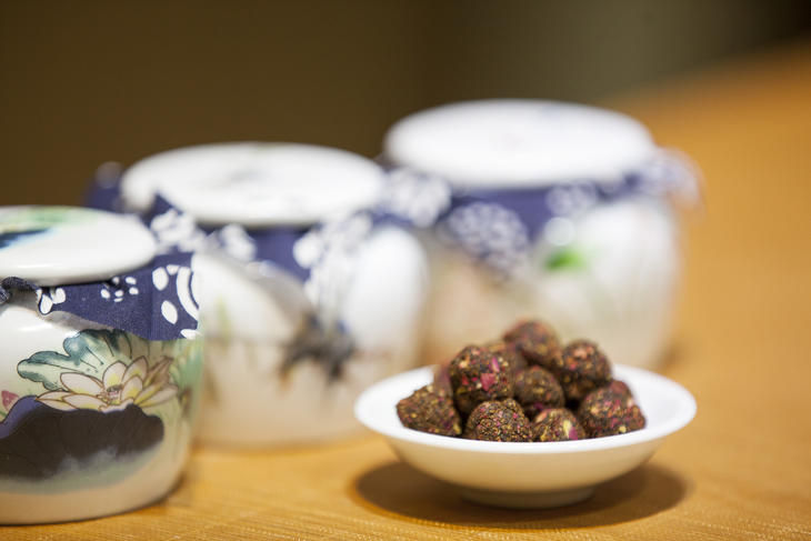 桂花、沉香、秦当归,文党参、枸杞,红枣(去核),陈皮,调老熟蜜,搓成丸子。经过九蒸九晒后服用。