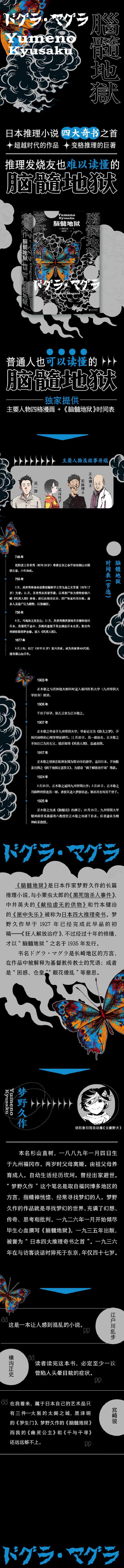 《脑髓地狱》是日本作家梦野久作的长篇推理小说,与小栗虫太郎的《黑死馆杀人事件》、中井英夫的《献给虚无的供物》和竹本健治的《匣中失乐》被称为日本四大推理奇书。梦野久作早于1927年已经完成此早品的初稿——《狂人解放治疗》,不过经过十年的修缮,才以“脑髓地狱”之名于1935年发行。