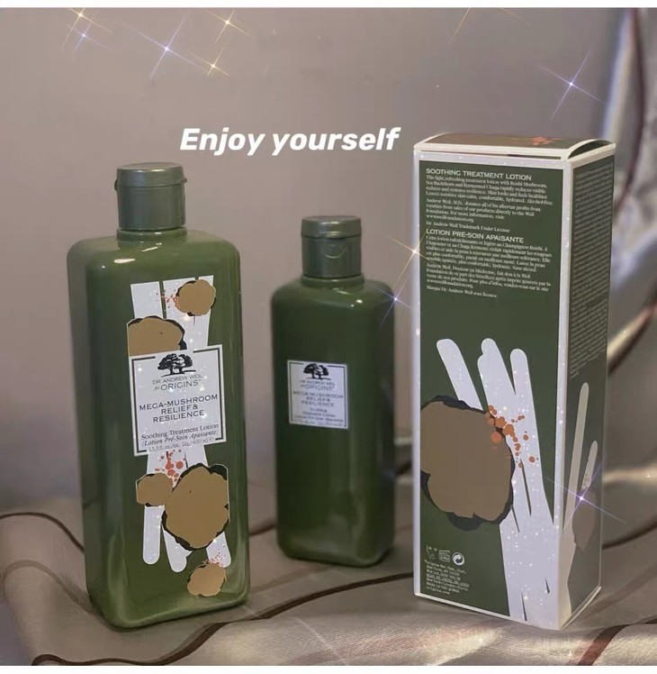 悦木之源菌菇水400ML👍2020限量新版。“烂脸”痘肌的救星。打开有一股淡淡的植物味道🌿,含有灵芝和冬虫夏草等成分,具有镇定舒缓、修护去痘、强韧皮肤屏障效果✔。还有很多常规化的抗炎成分,质地也比较清爽不油腻。能提升皮肤的自愈能力。🗓长期使用起到能够抑制痘痘、抗闭口。减少皮肤暗沉泛黄,细致毛孔。稳定皮肤状态,减少糖化产物累积的效果。急救必备,适合湿敷!