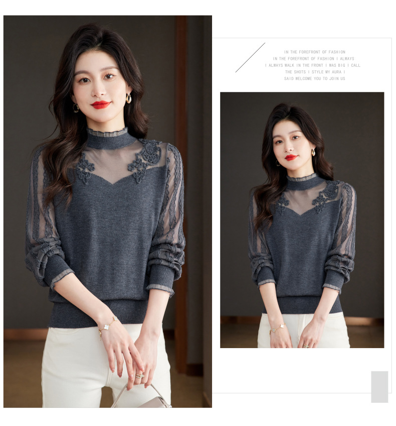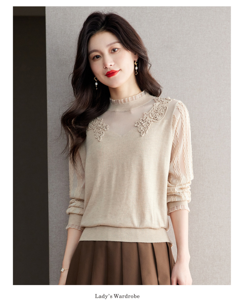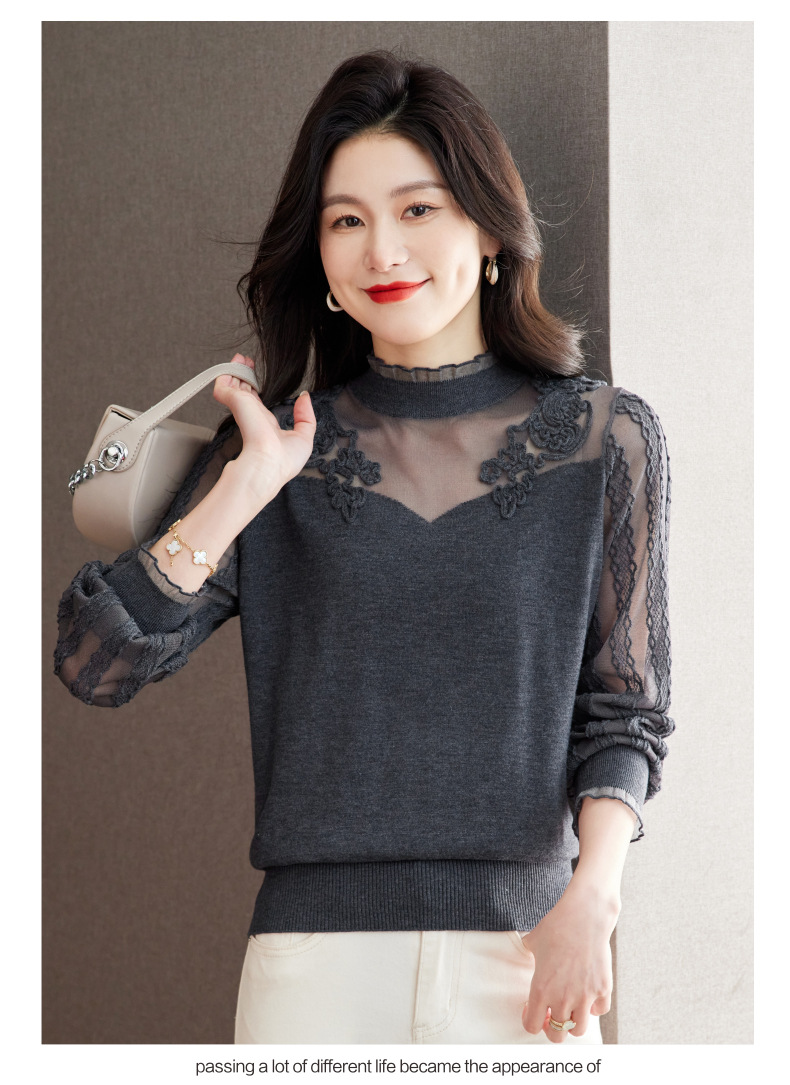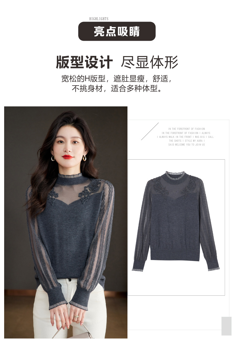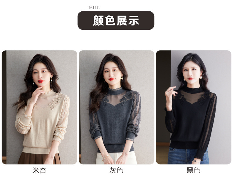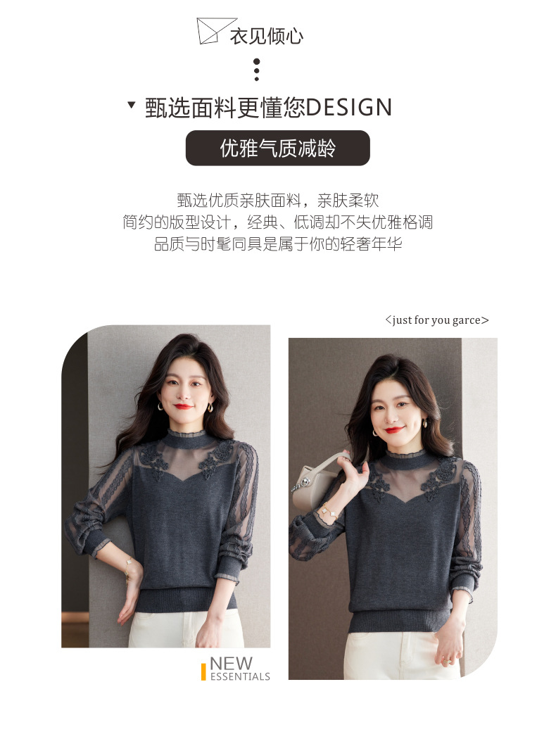 CC17-1918镂空针织衫女上衣洋气春装2024年新款春秋女装长袖妈妈蕾丝打底衫