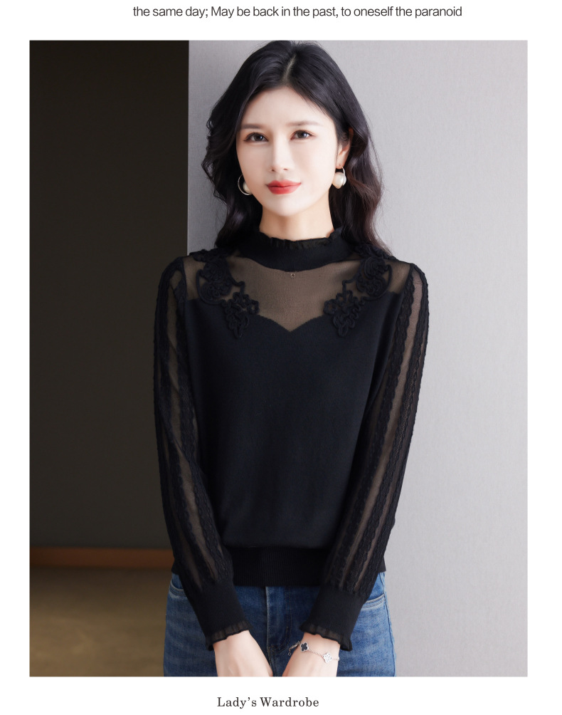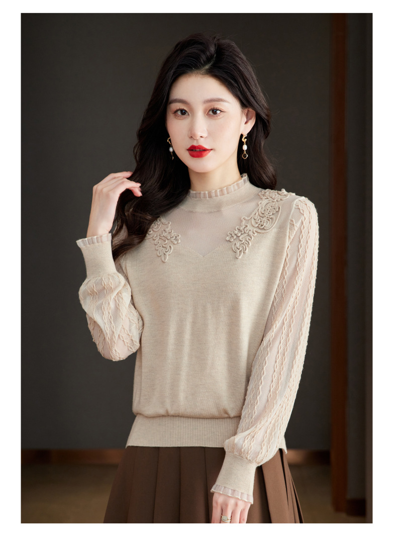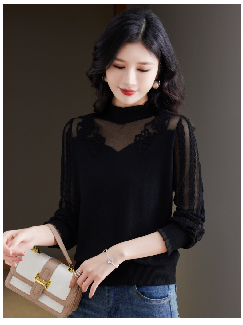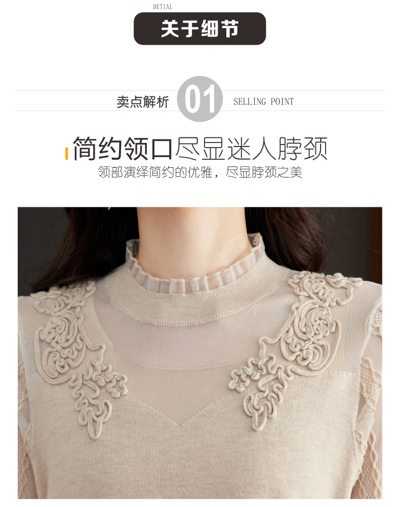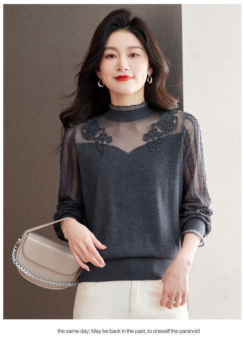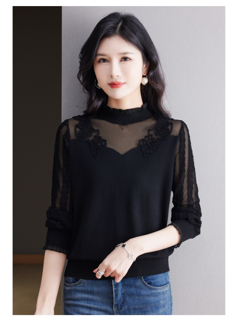 CC17-1918镂空针织衫女上衣洋气春装2024年新款春秋女装长袖妈妈蕾丝打底衫