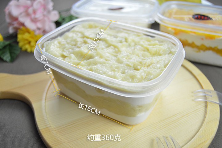 盒子蛋糕有两款口味可供选择:榴莲盒子、芒果盒子