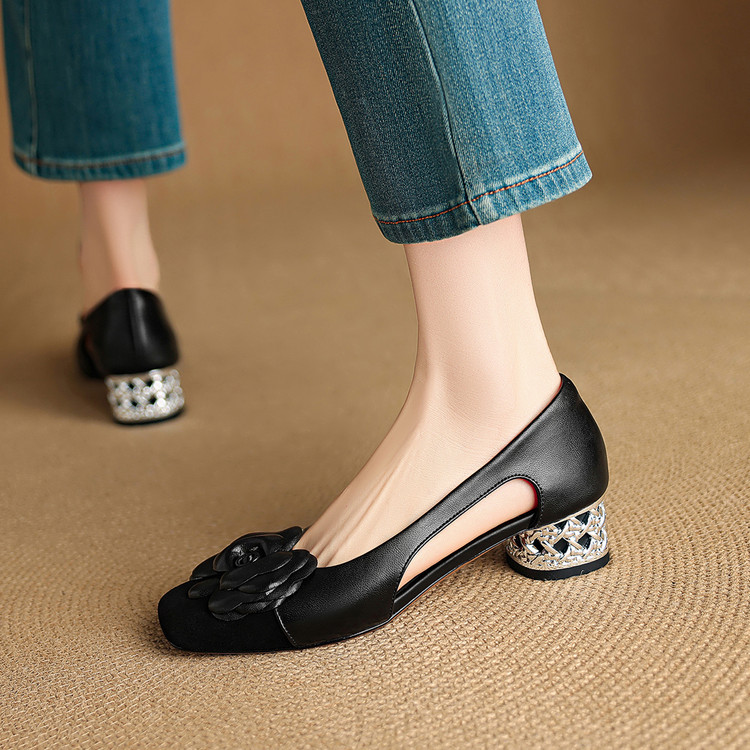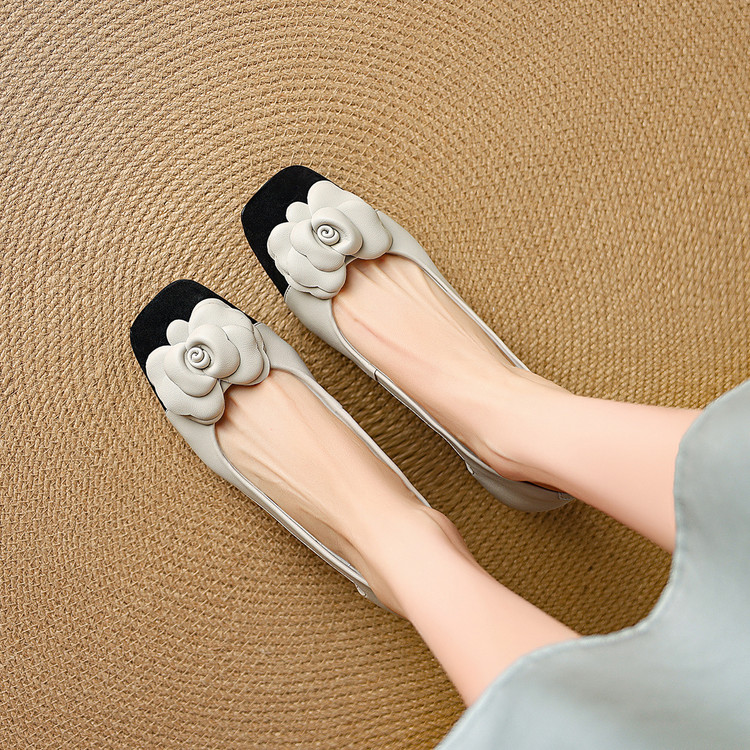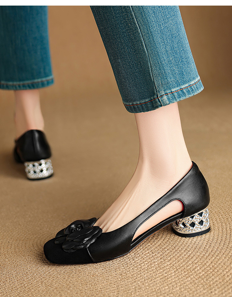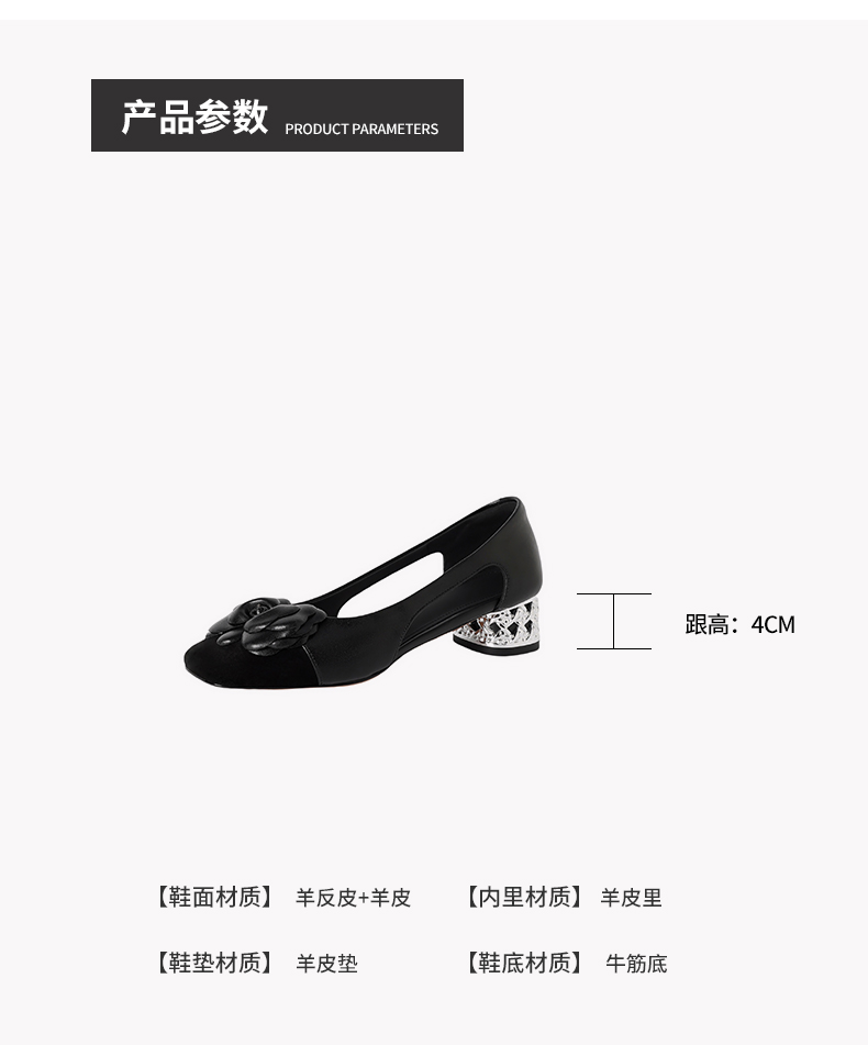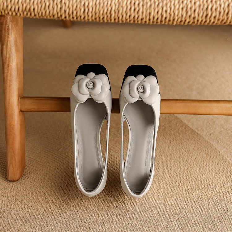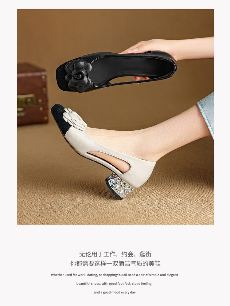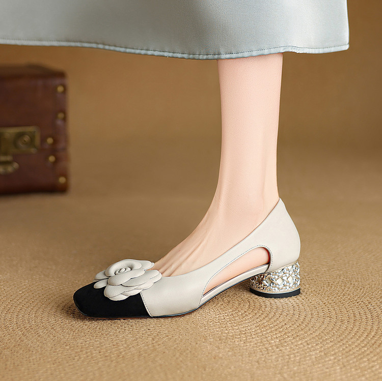 【预售5天】时尚法式小香风拼色花朵粗跟包头凉鞋女夏季新款方头中跟镂空浅口单鞋NJMK&K1617