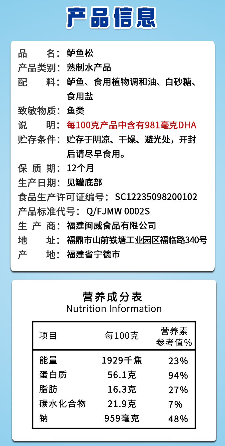 【预售-12月29日配送】闽威鲈鱼松/1罐(8小袋,共80g)生产日期:25年11月