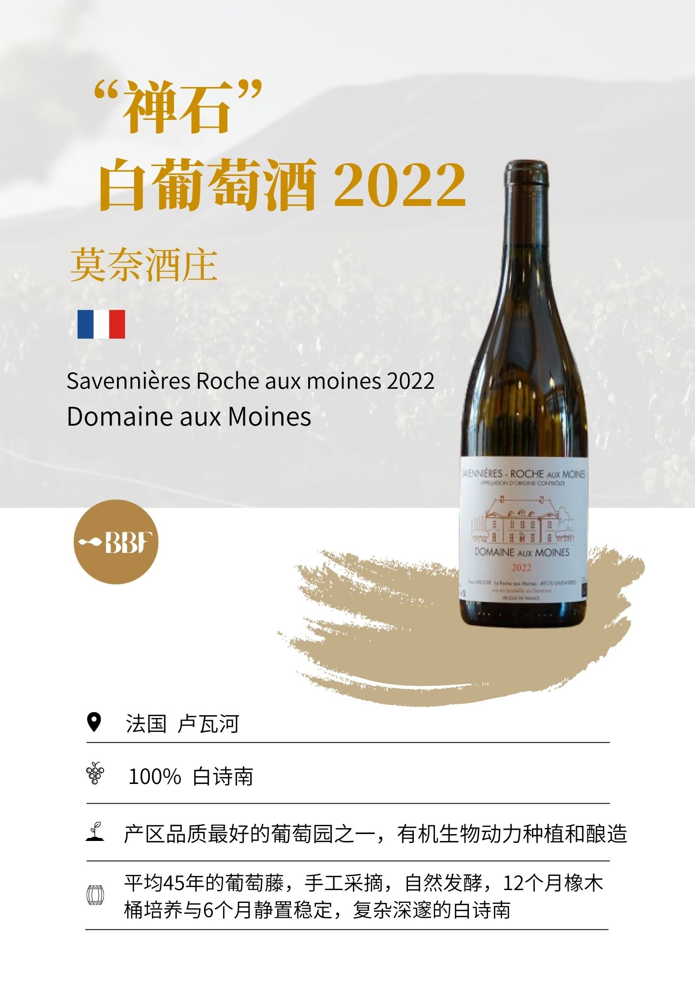 禅石干白 2022:修道院风土巅峰之作,陈年潜力10年+,蜂蜜杏仁香暗藏其中。
