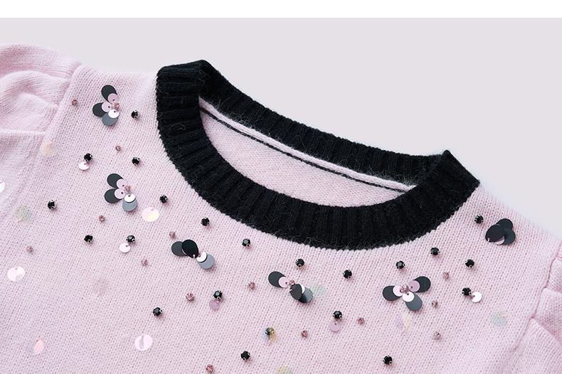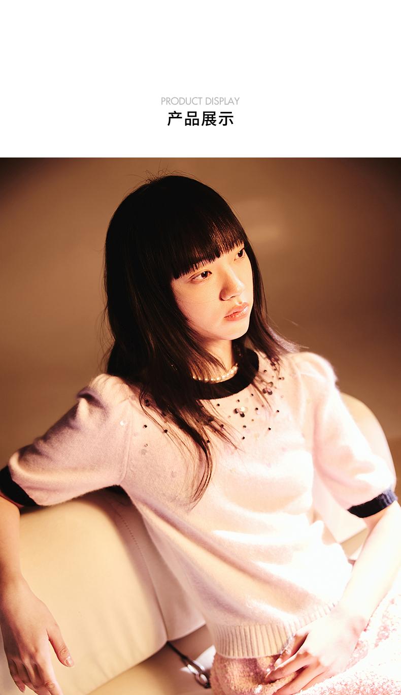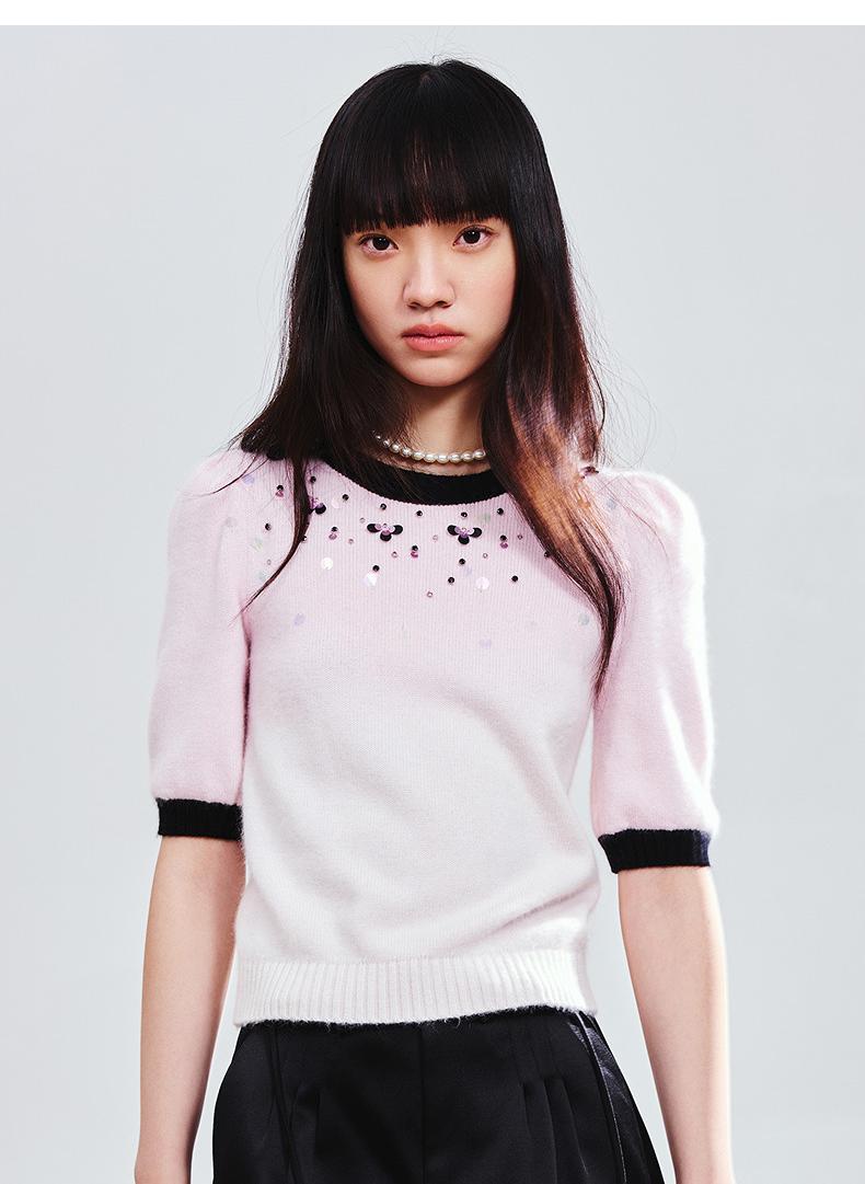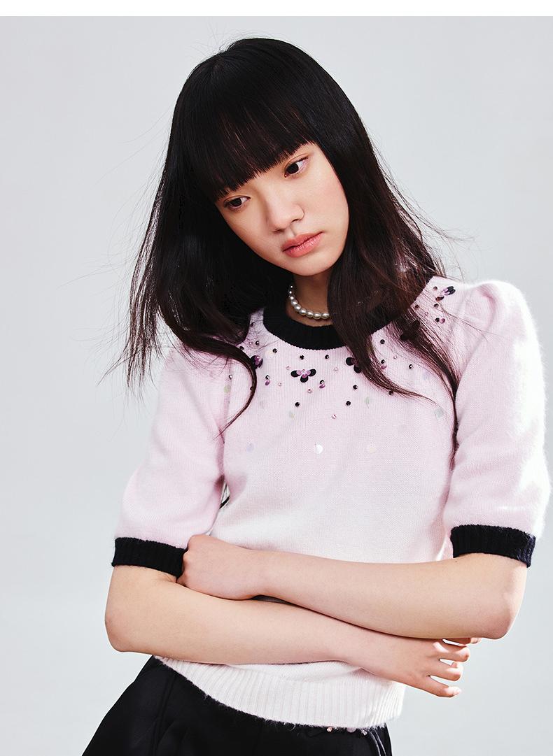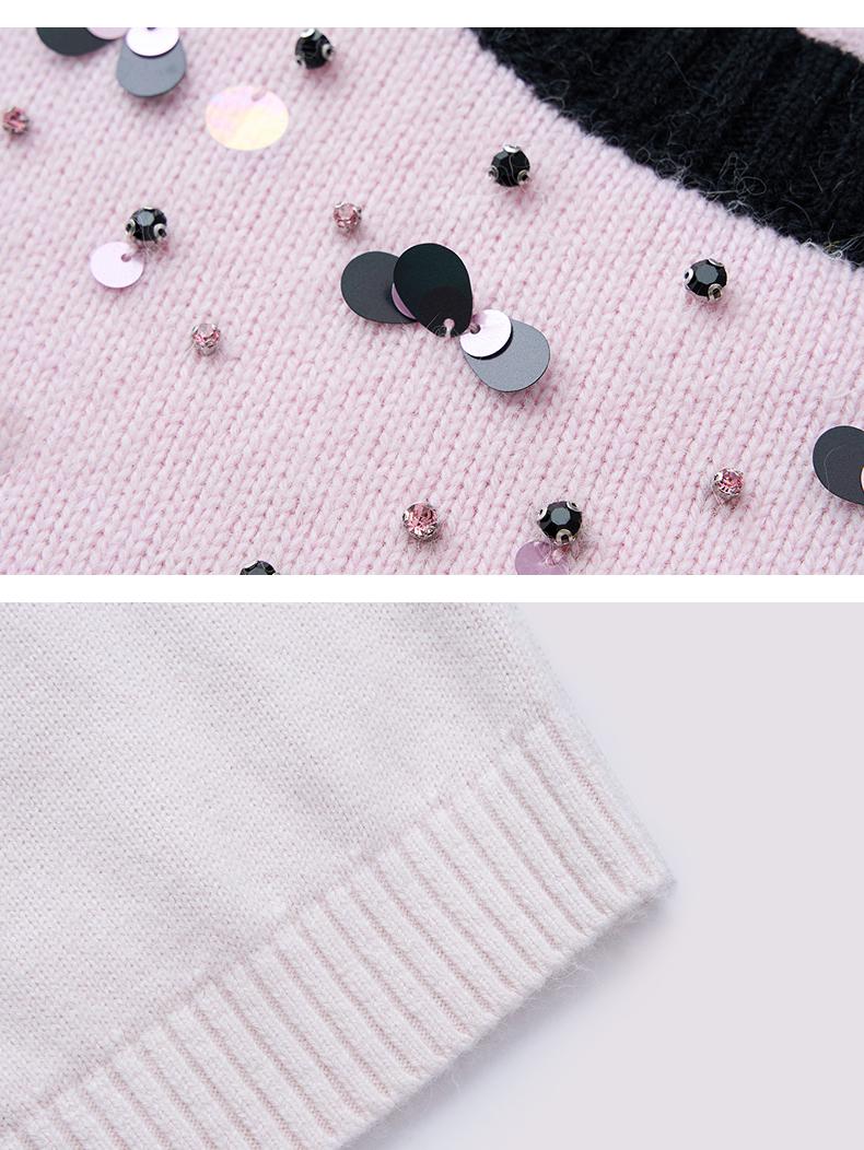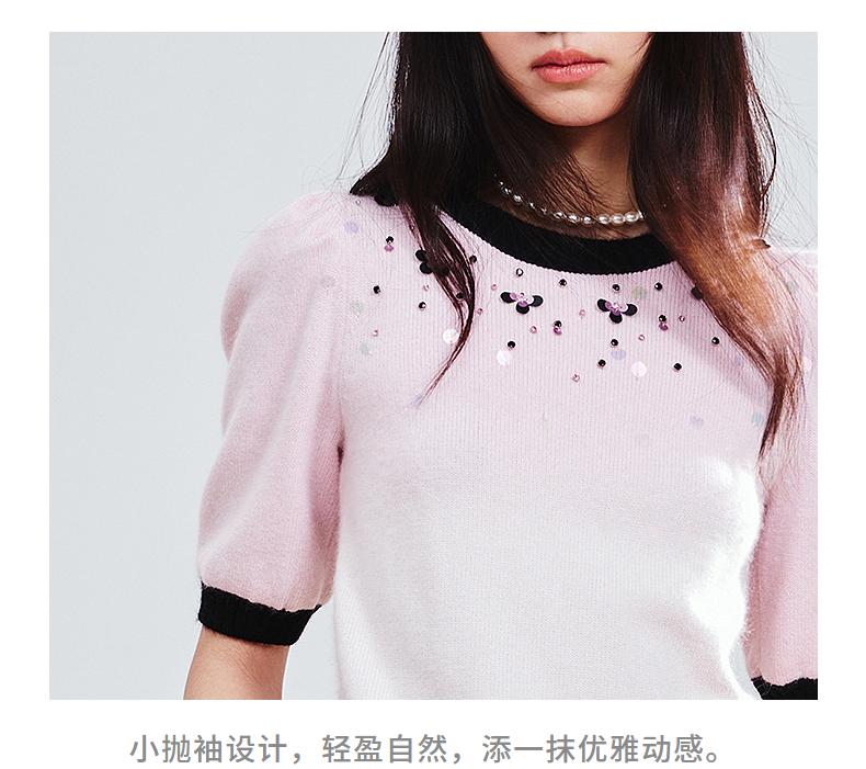 玛克门店发货:MAXRIENY撞边甜美精致钉珠修身套头毛衫女(货号:MC85SW774)