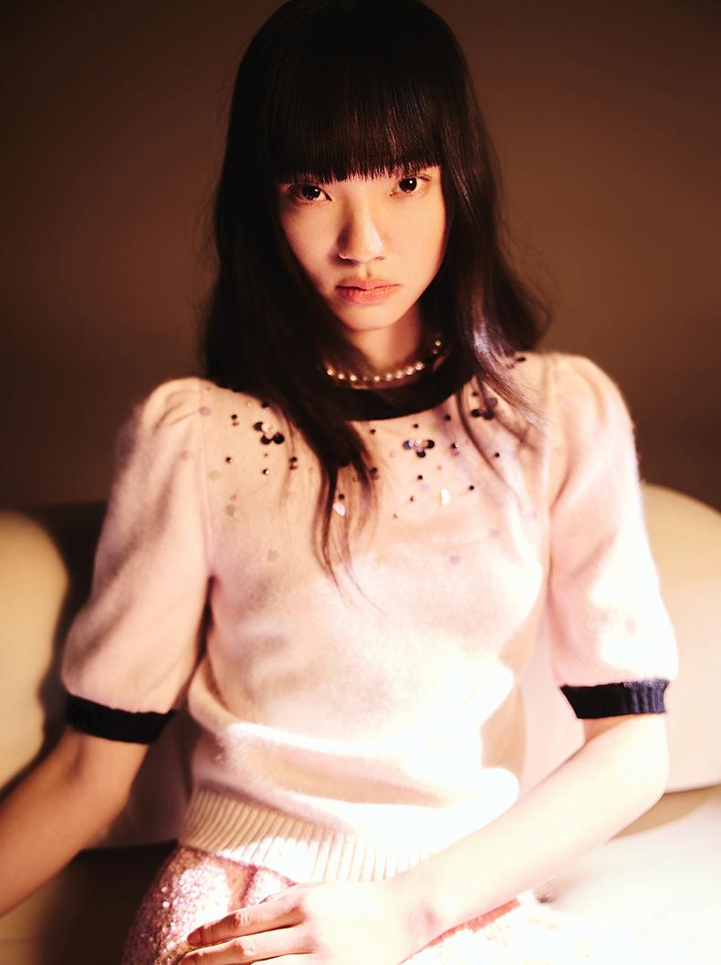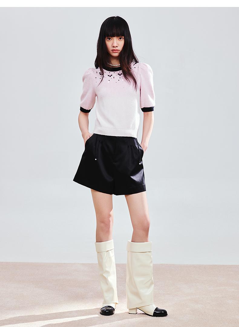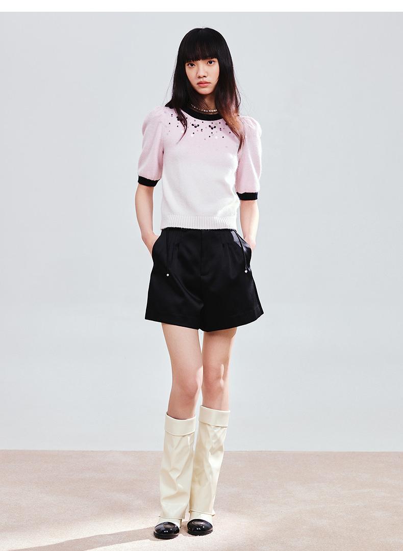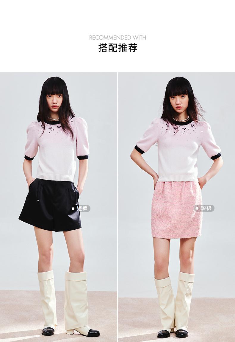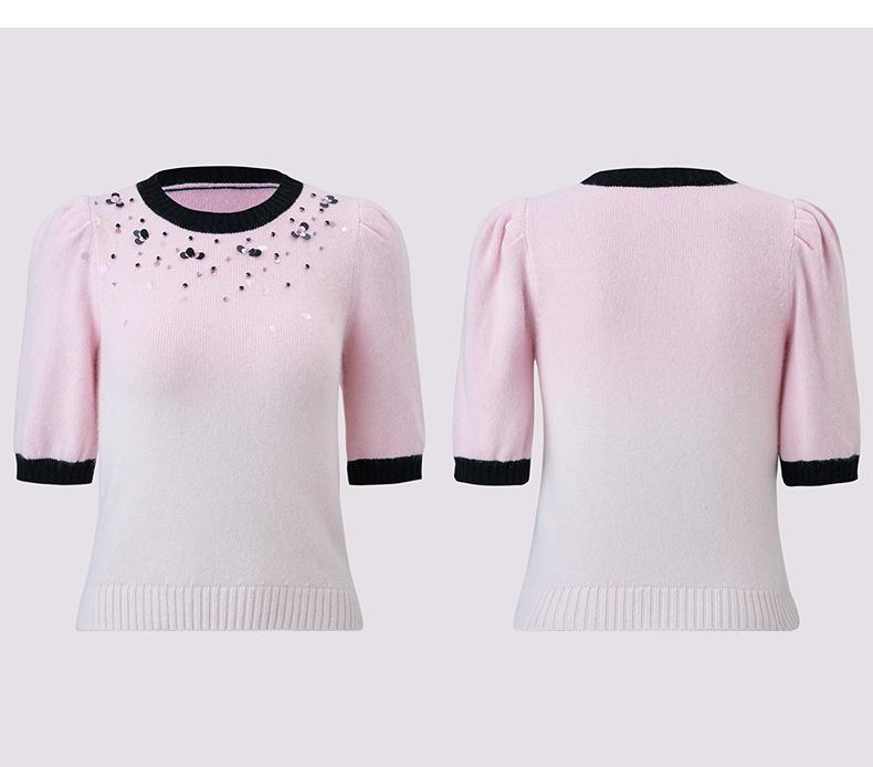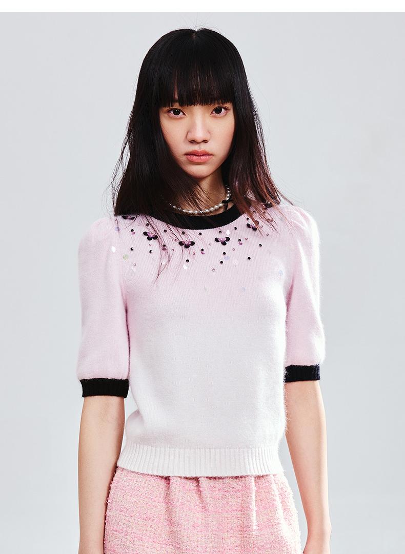 玛克门店发货:MAXRIENY撞边甜美精致钉珠修身套头毛衫女(货号:MC85SW774)