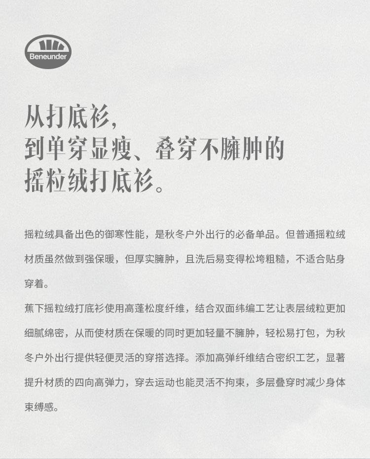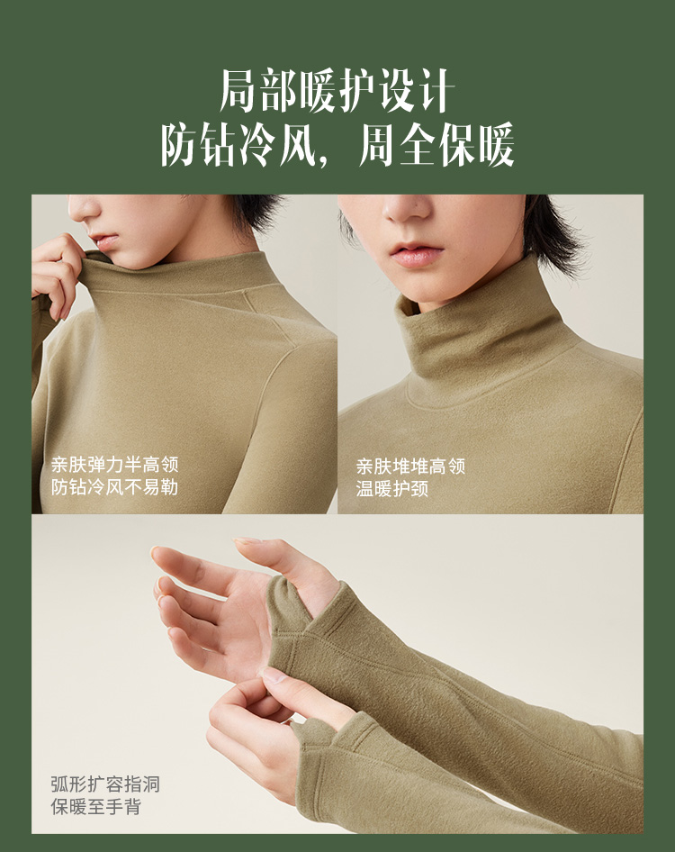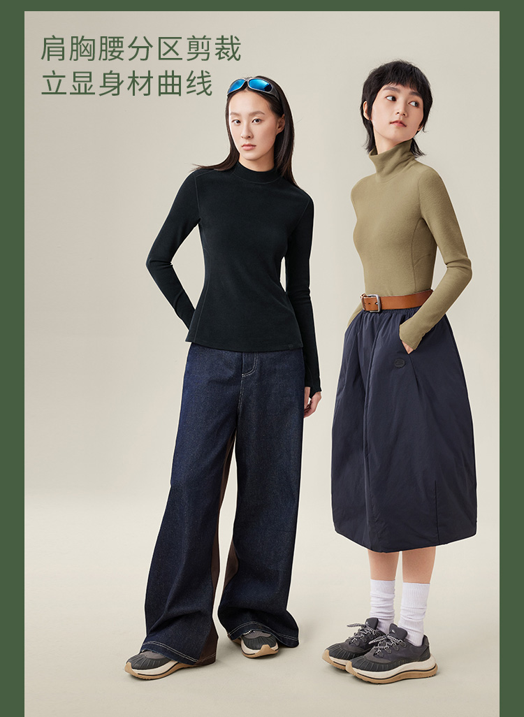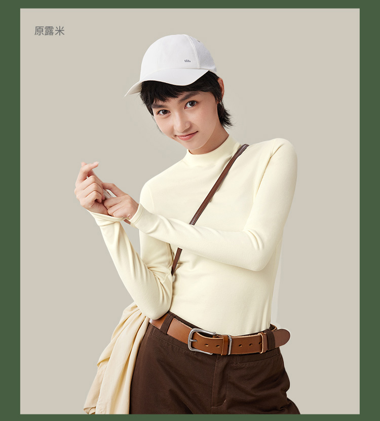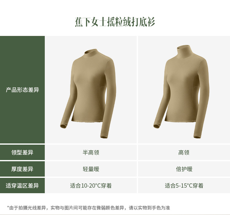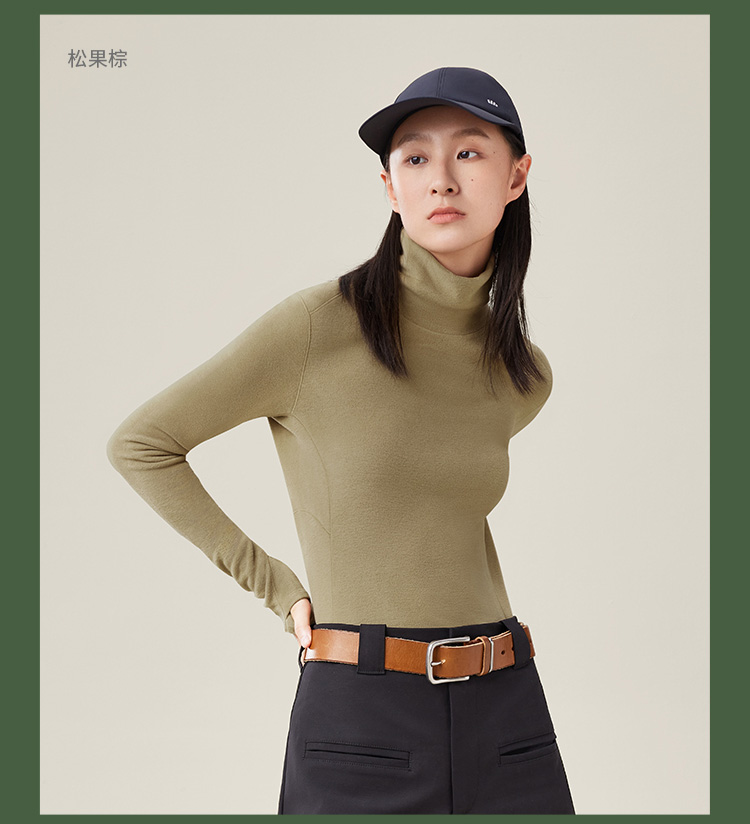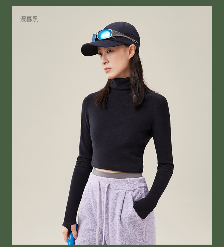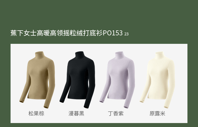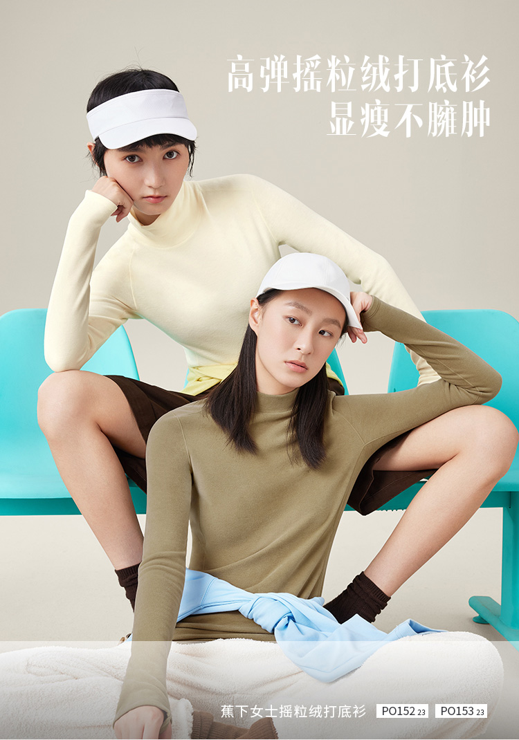 蕉下打底衫PO152摇粒绒女秋修身舒适长袖弹力半高领肤感内搭上衣