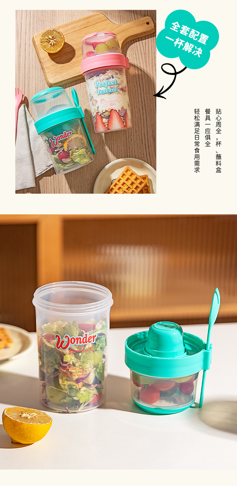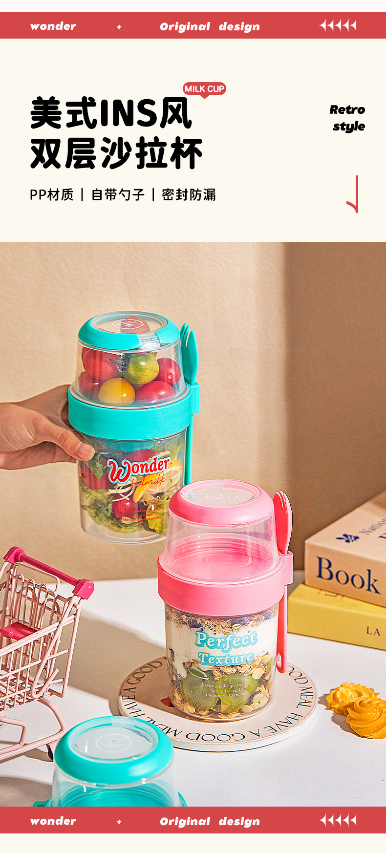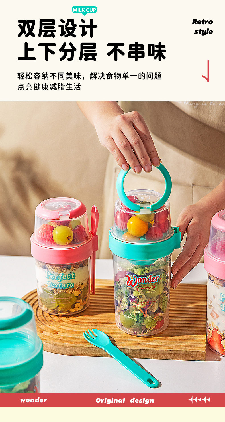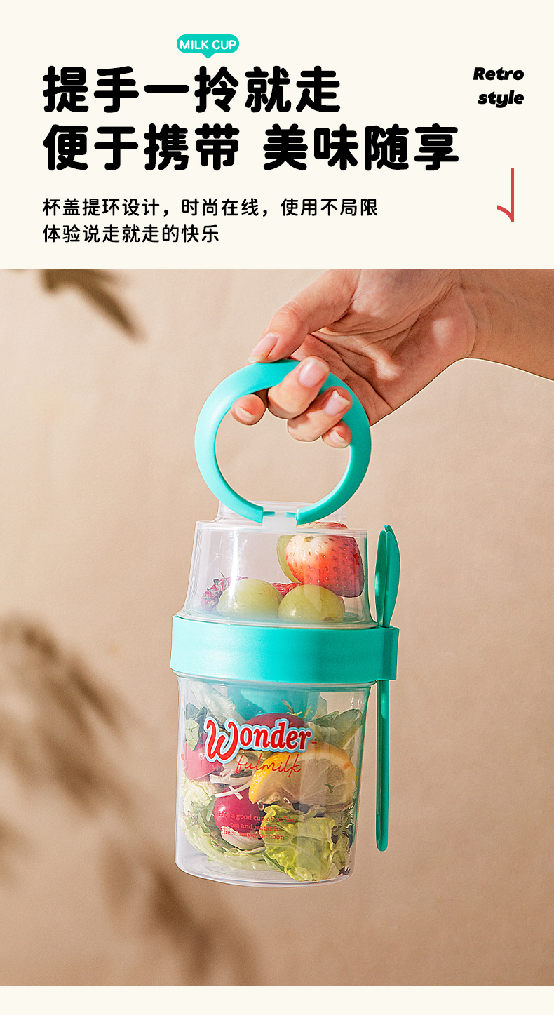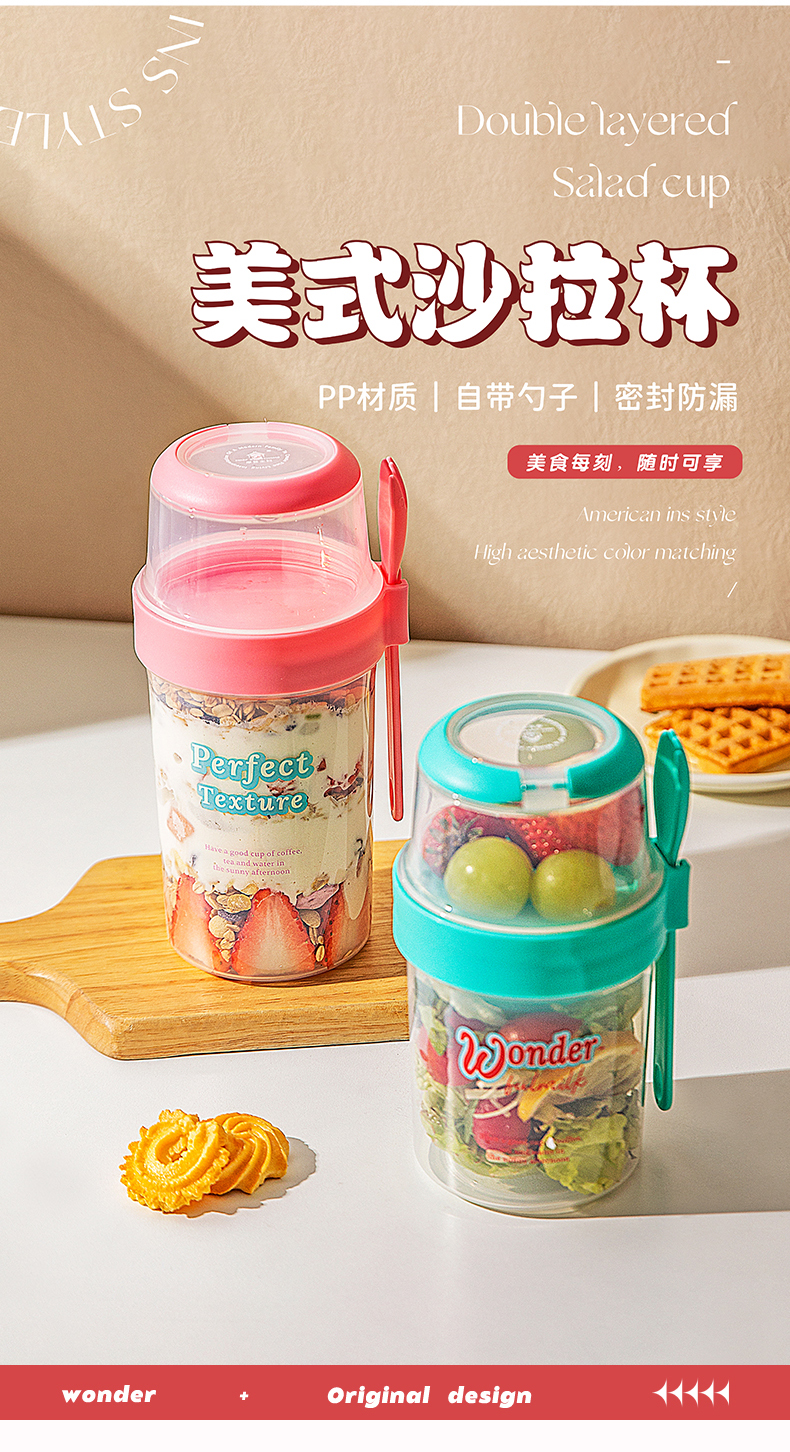 摩登主妇隔夜燕麦杯带盖勺酸奶杯外带便携早餐杯轻食水果沙拉杯子
