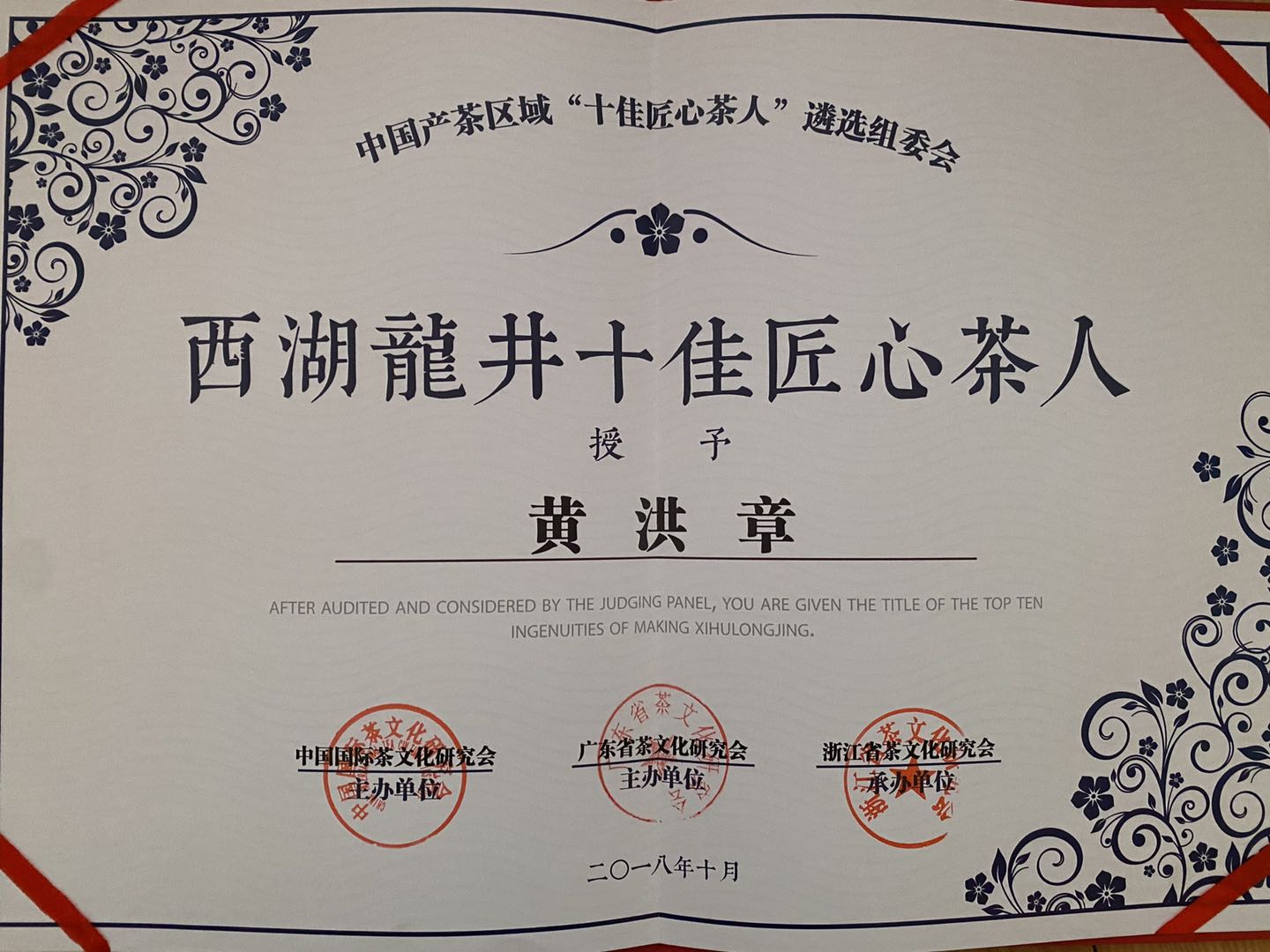 黄洪章(被业内称为西湖龙井茶王)