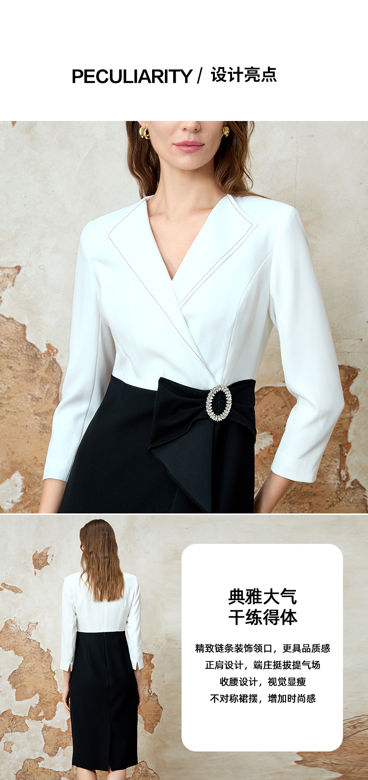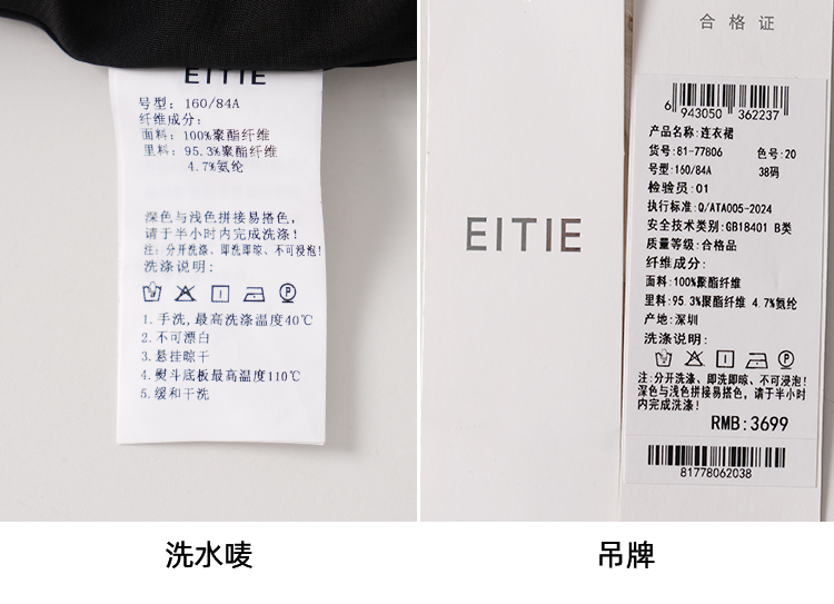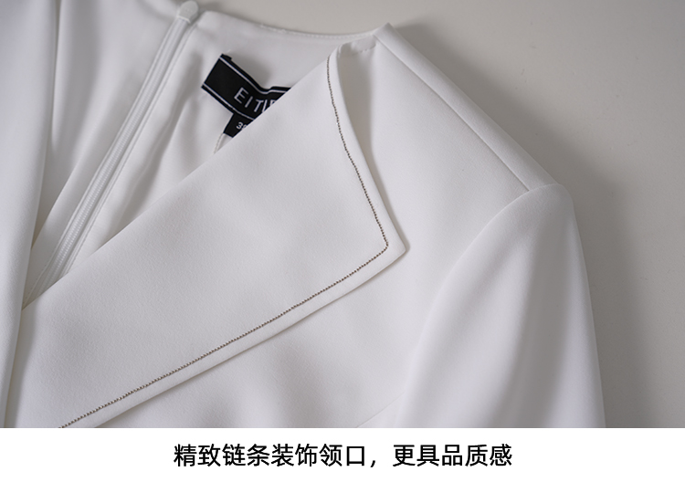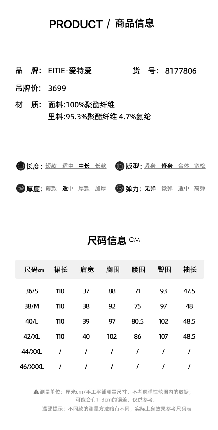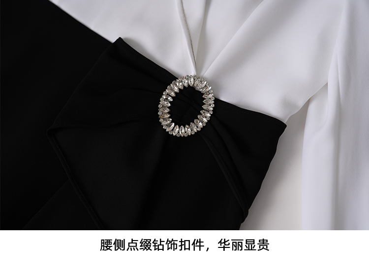 EITIE爱特爱春新款优雅翻领高腰显瘦撞色a字连衣裙礼服8177806