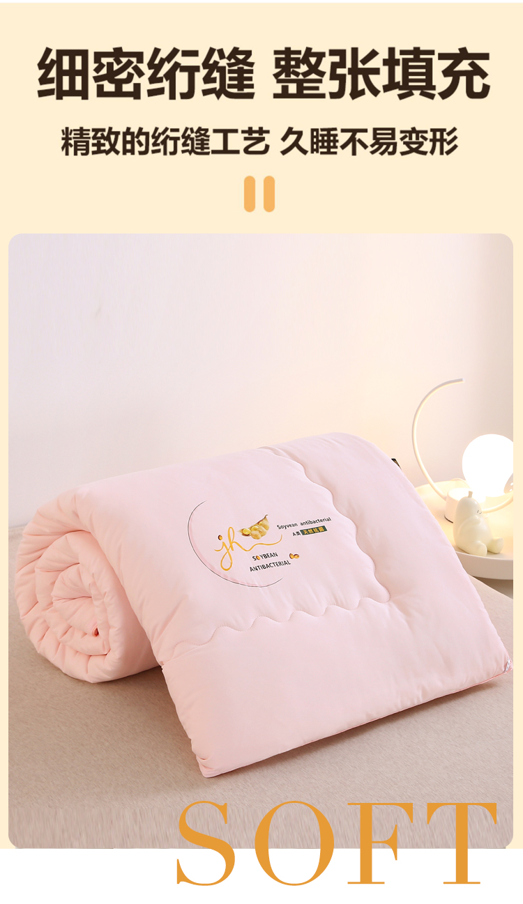 蚕蛹大豆秋冬被【悠梦嘉居蚕蛹大豆秋冬被 含蚕蛹蛋白精华 磨毛压花面料优质中空纤维 蓬松不易打结 双人200*230 2000克YB-1301,粉装】