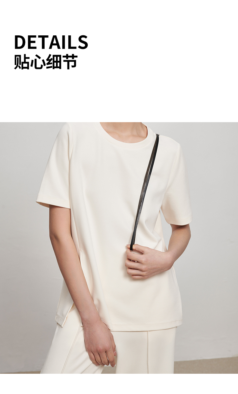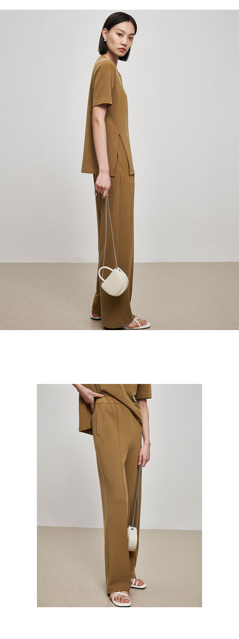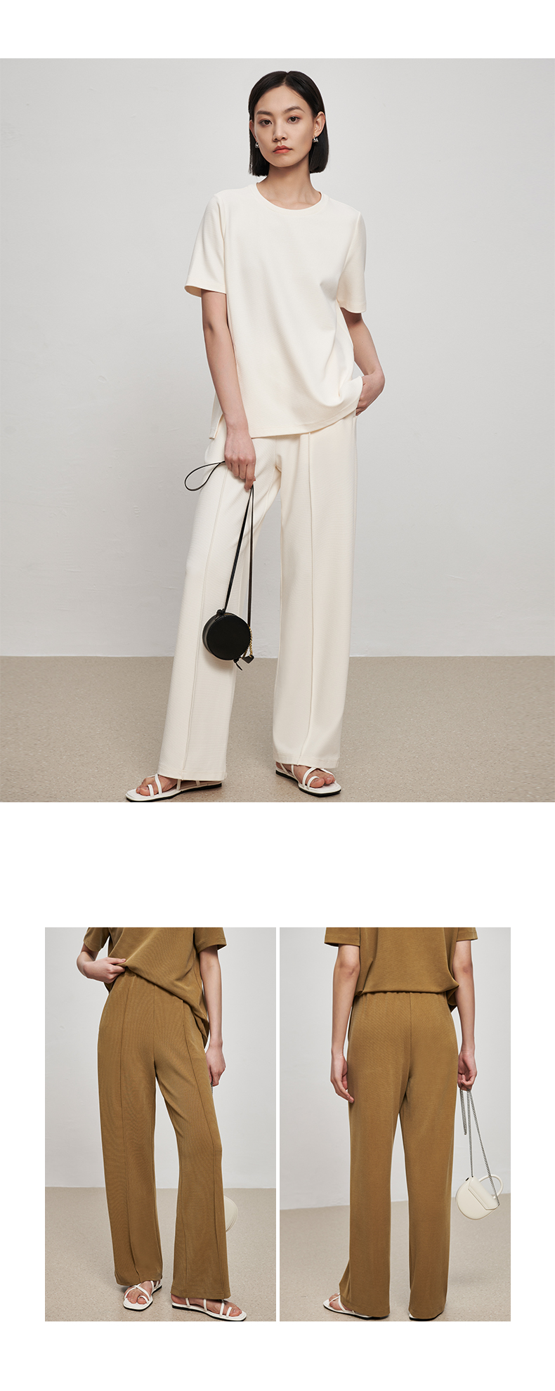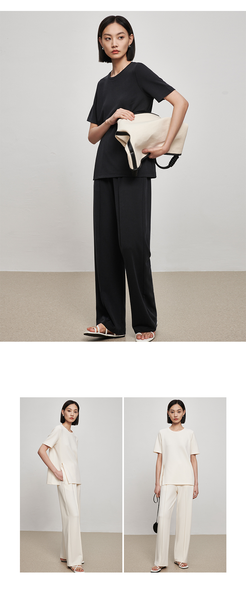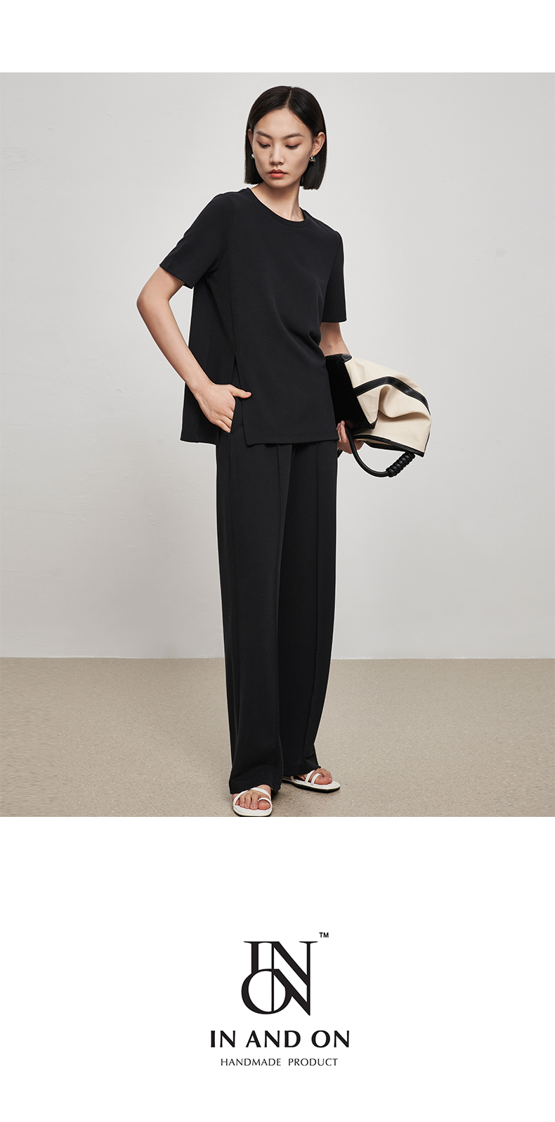 IN AND ON53221+53223华夫格白色时尚套装女短袖开叉上衣垂感显瘦阔腿休闲裤子两件套