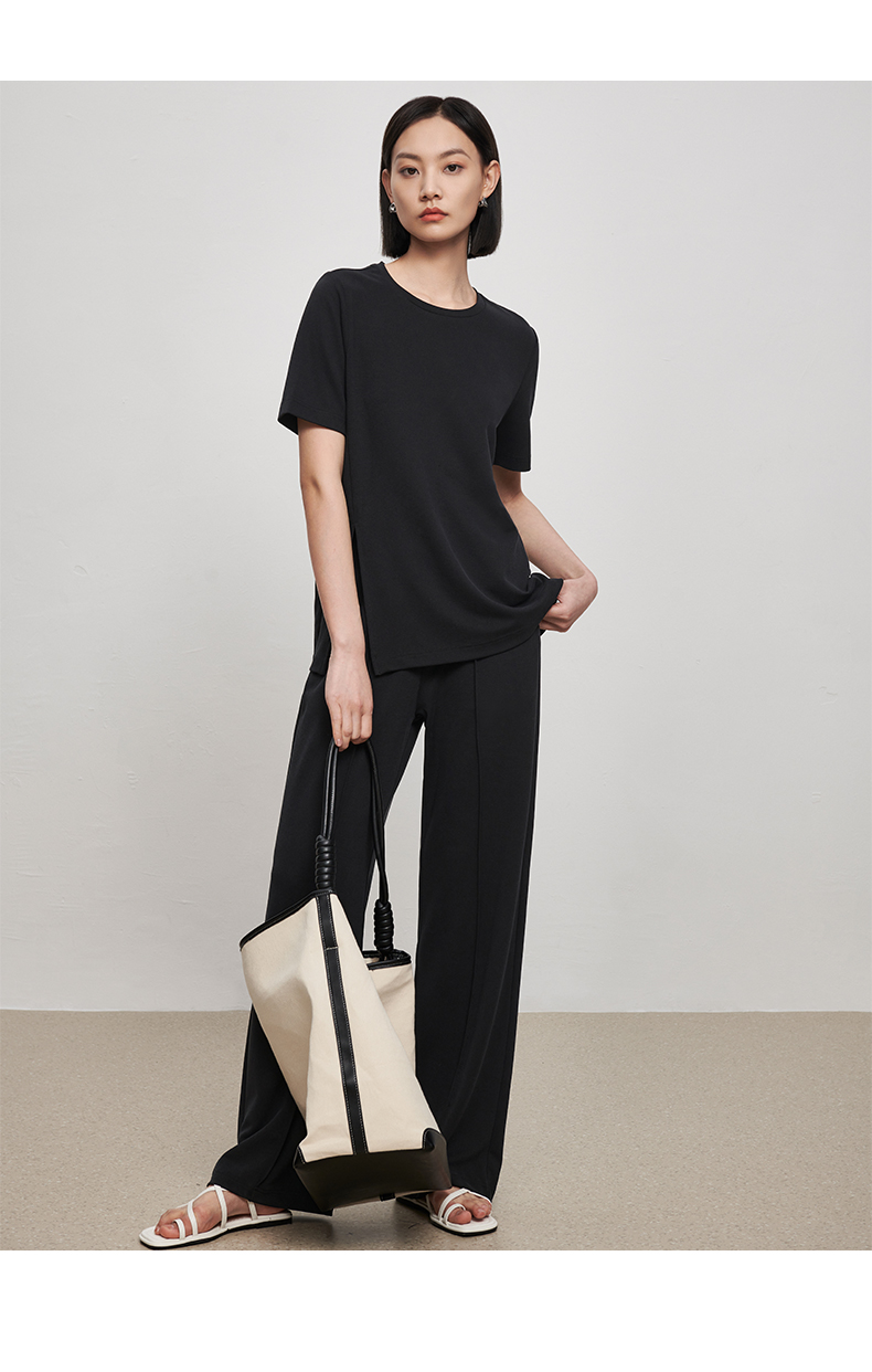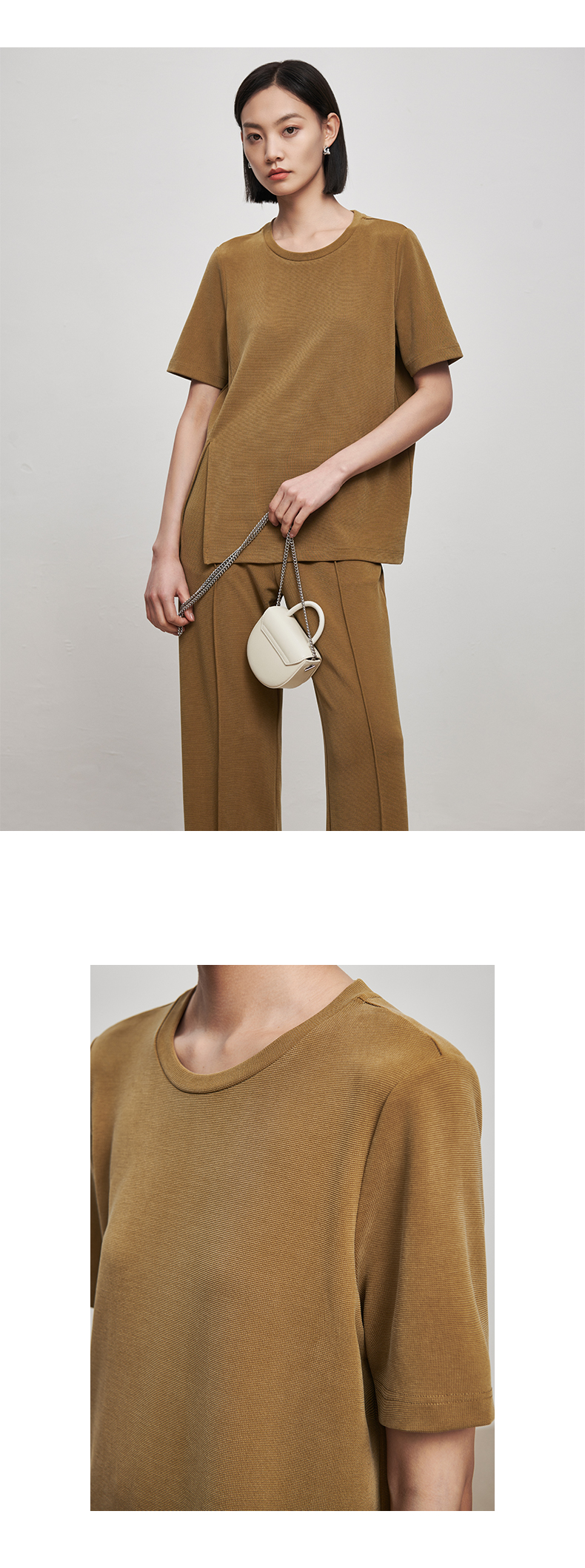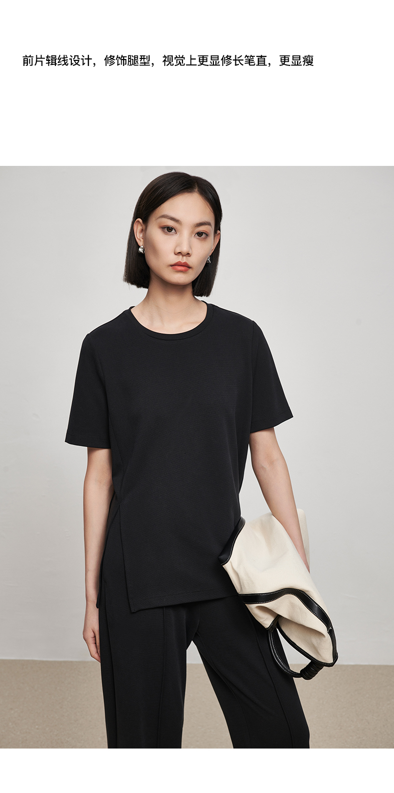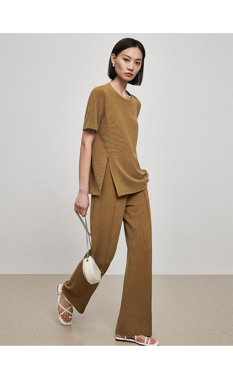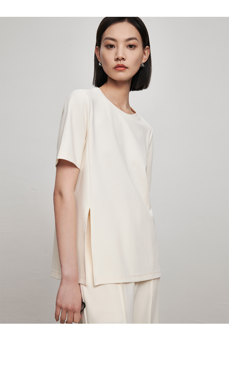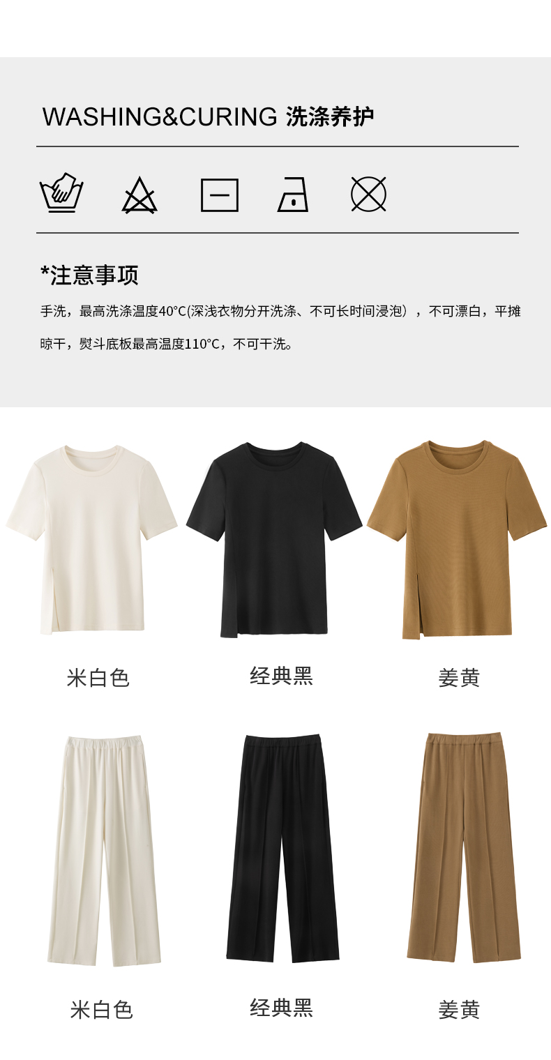 IN AND ON53221+53223华夫格白色时尚套装女短袖开叉上衣垂感显瘦阔腿休闲裤子两件套