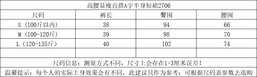 品名:百搭A字半身裙2706