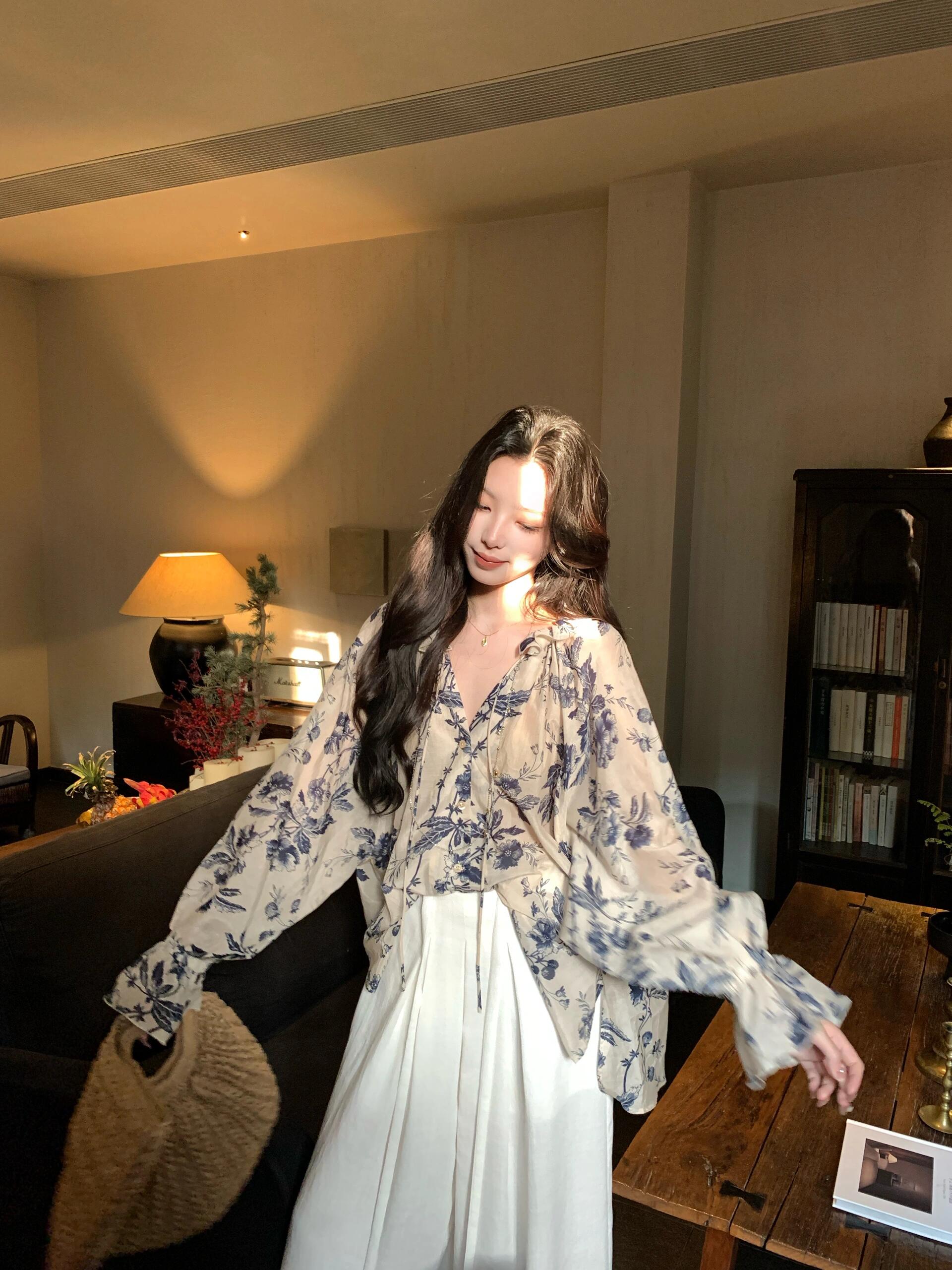 品名:复古碎花衬衫2496