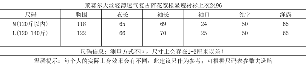 L胸围122衣长66袖长70袖口25领字50绳露65(120-140斤)