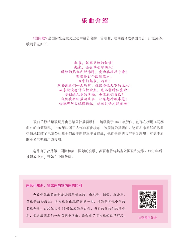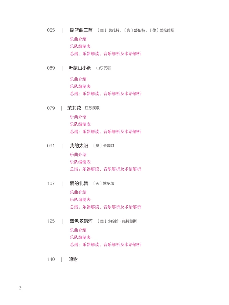 《中小学管弦乐团名曲教程1(总谱解析版)》的面世,及时解决了当下中小学管弦乐社团面临没有合适的曲目供团员排练的苦恼。本书包含11首中外经典名曲,包括中国作品《送别》《踏雪寻梅》《沂蒙山小调》《茉莉花》,外国作品《多年以前》《新年好》《欢乐颂》《摇篮曲》《我的太阳》《爱的礼赞》《蓝色多瑙河》,这些熟悉的曲调,经过作者的精心编排后,能让小乐手们在短时间内排练出高质量的音乐会曲目。 |