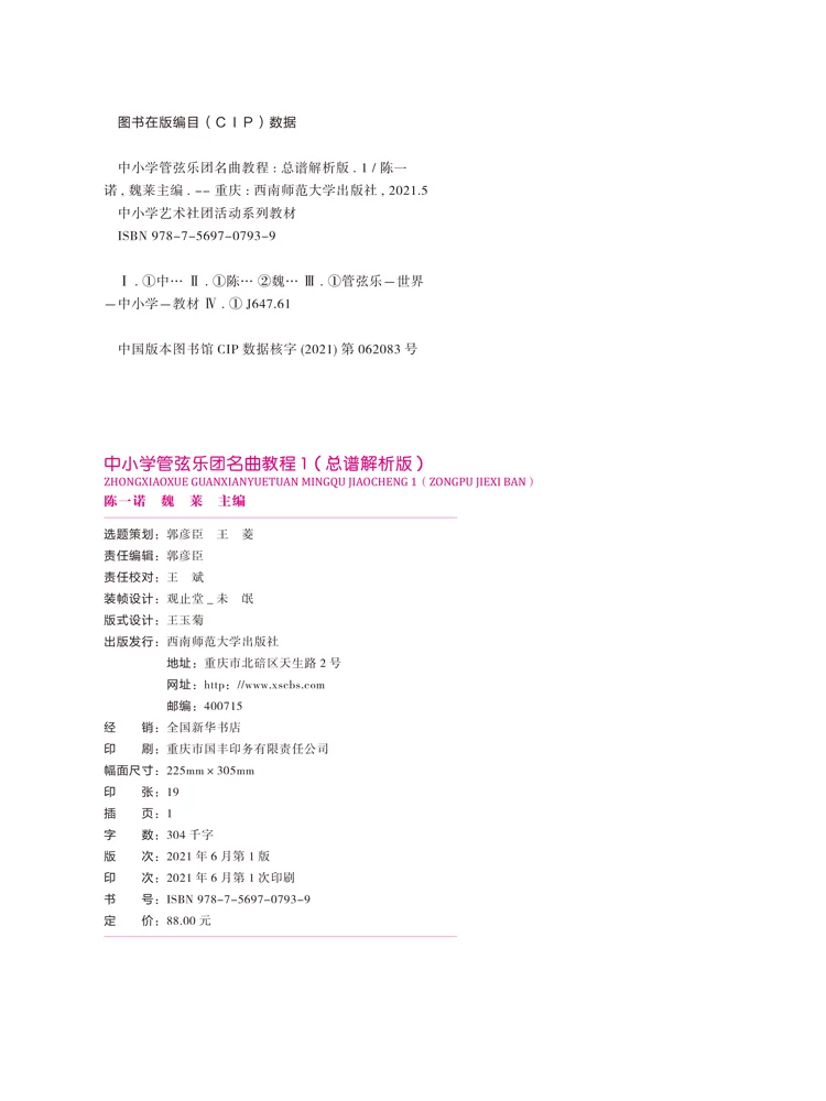 *书名:中小学管弦乐团名曲教程1(总谱解析版) | *ISBN:978-7-5697-0793-9 |