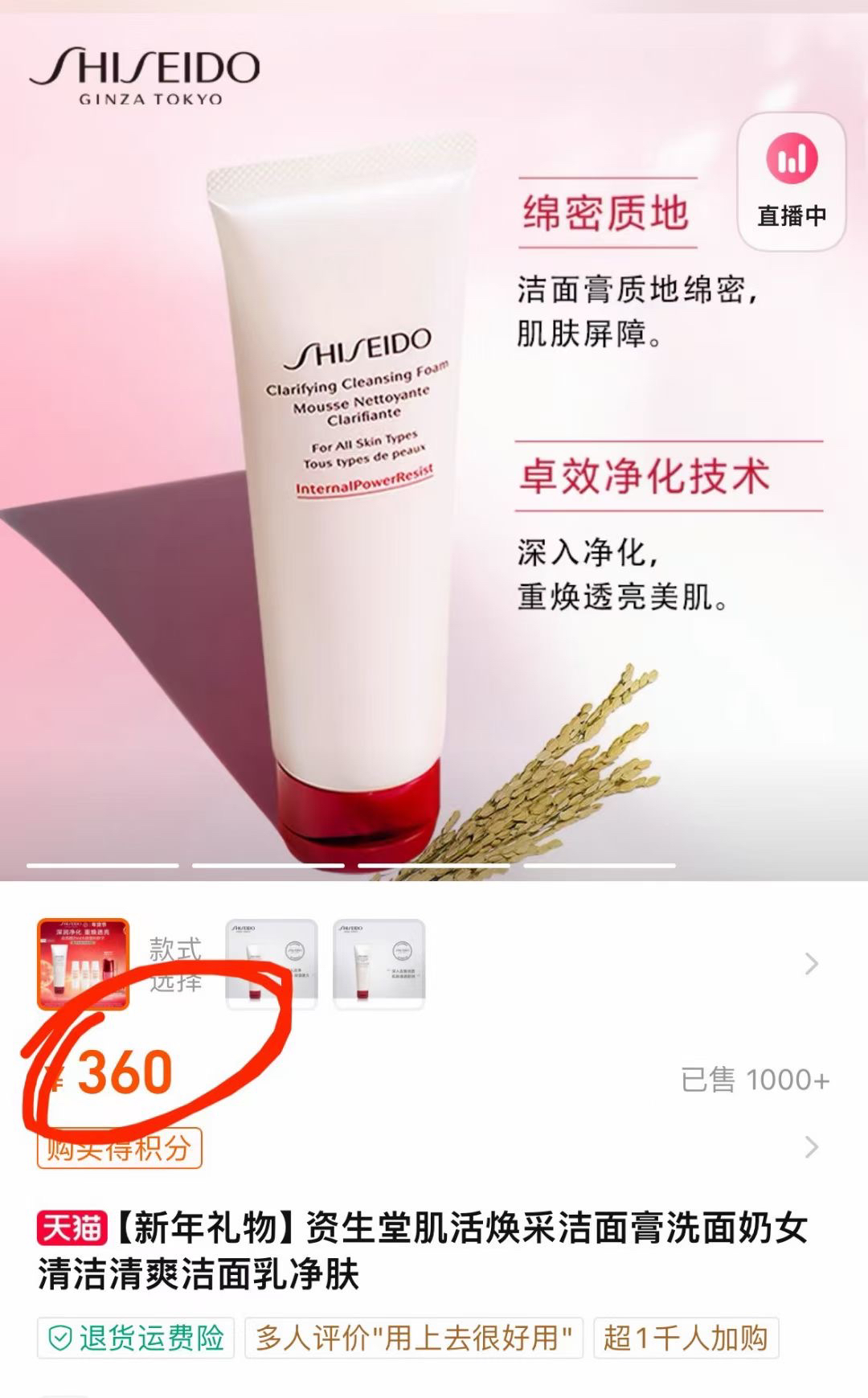 专柜360 资生堂肌活焕彩洁面【红腰子洁面】125ml 清洁保湿杠杠的