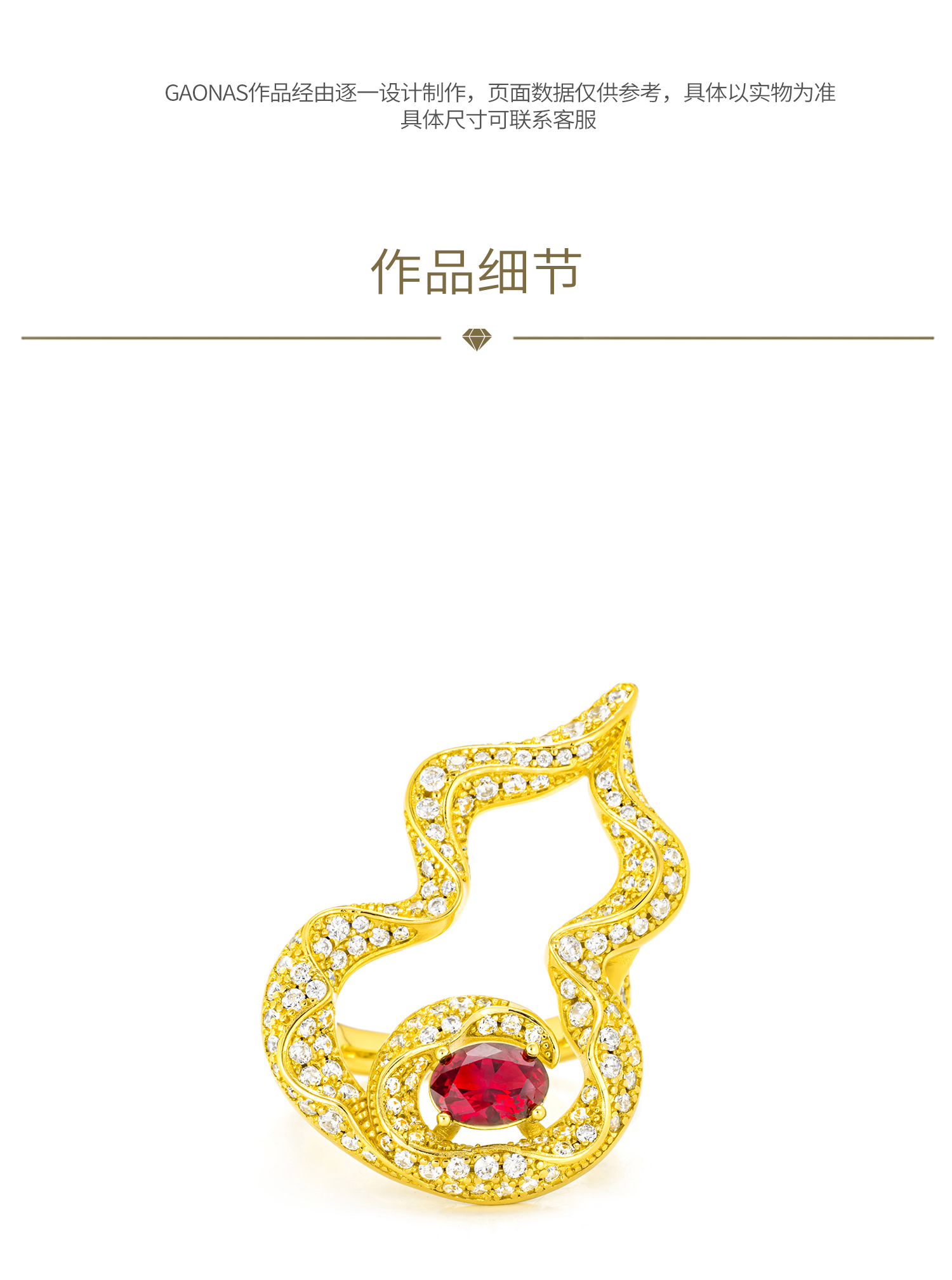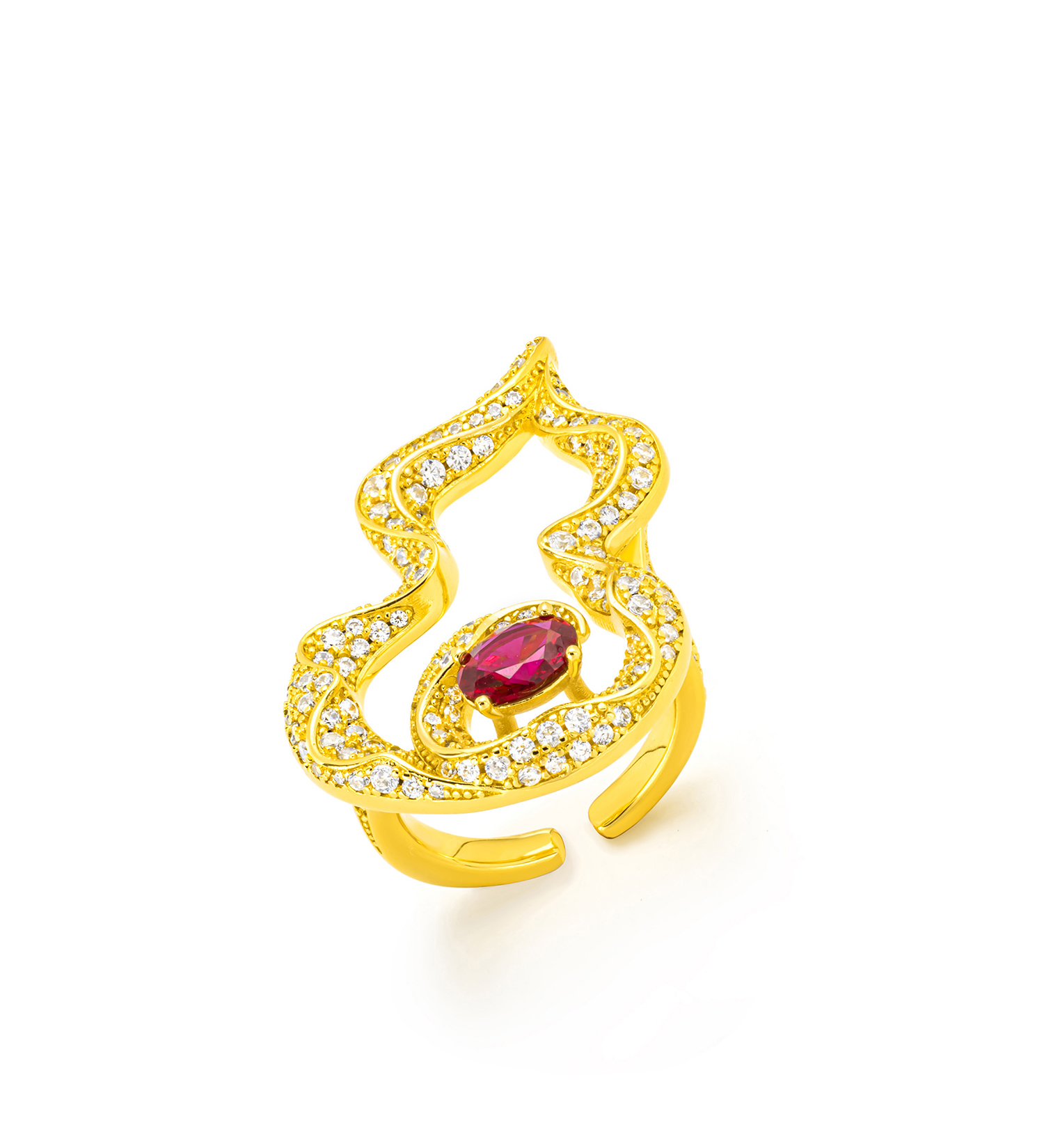 GAONAS 广纳福禄 中式贵气金色葫芦戒指11929JGO