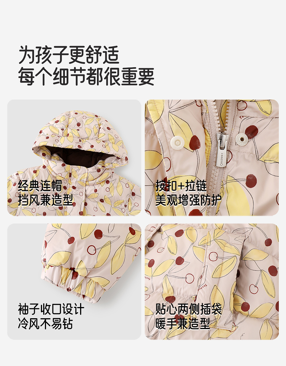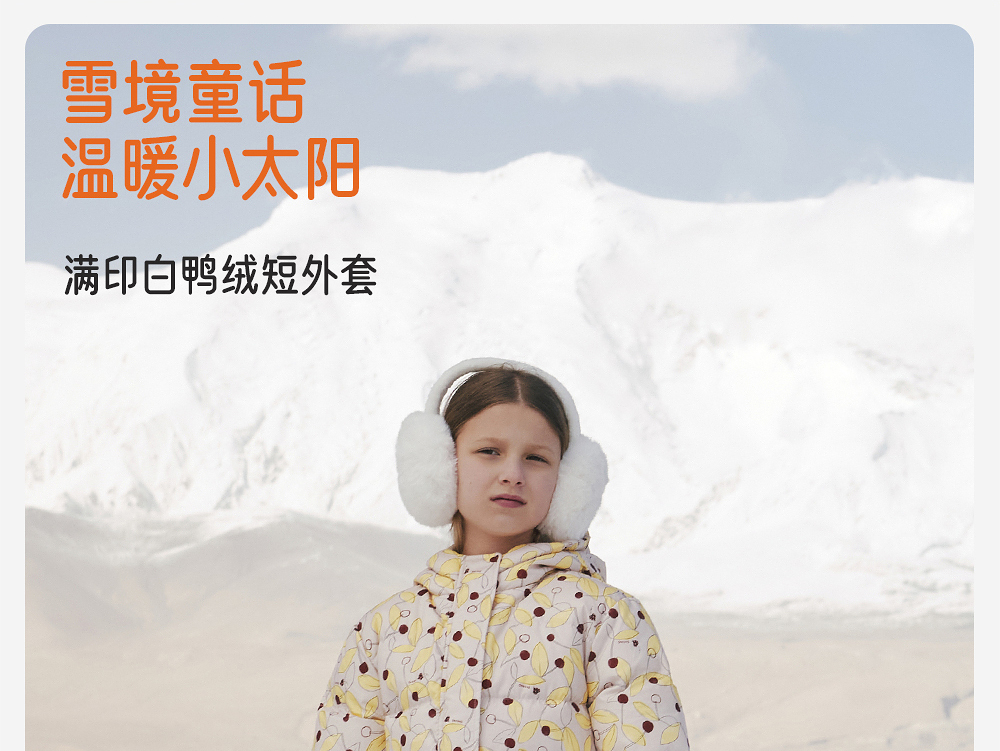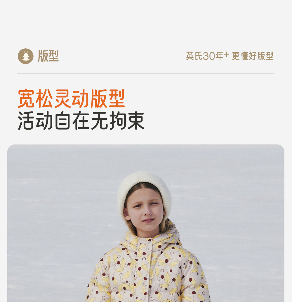 【商场同款】英氏女童羽绒服白鸭绒秋冬保暖防寒防风满印休闲新款超韧绒