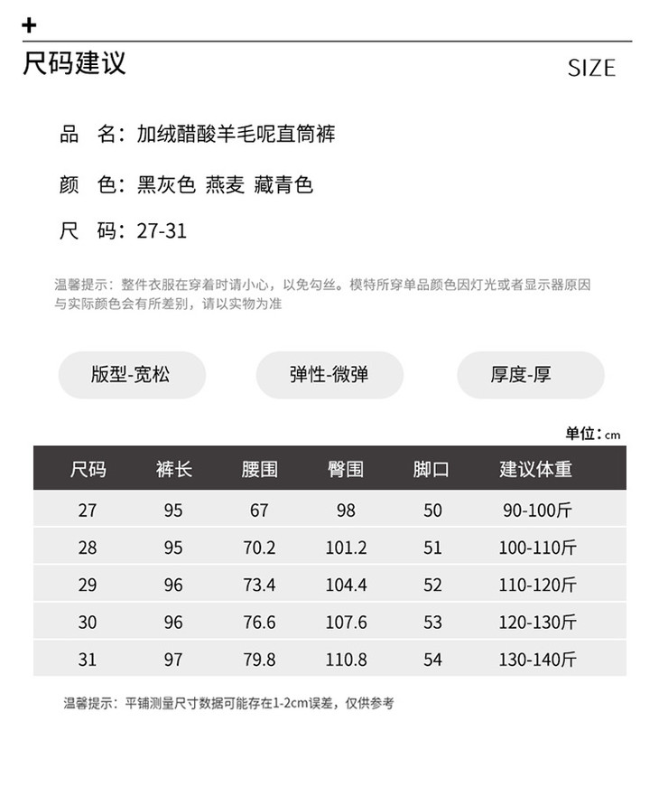 加绒醋酸羊毛呢直筒裤,厚款秋冬季保暖阔腿裤MYX-XBMY-9572-Y