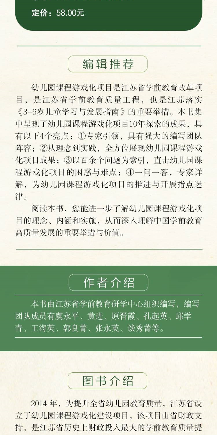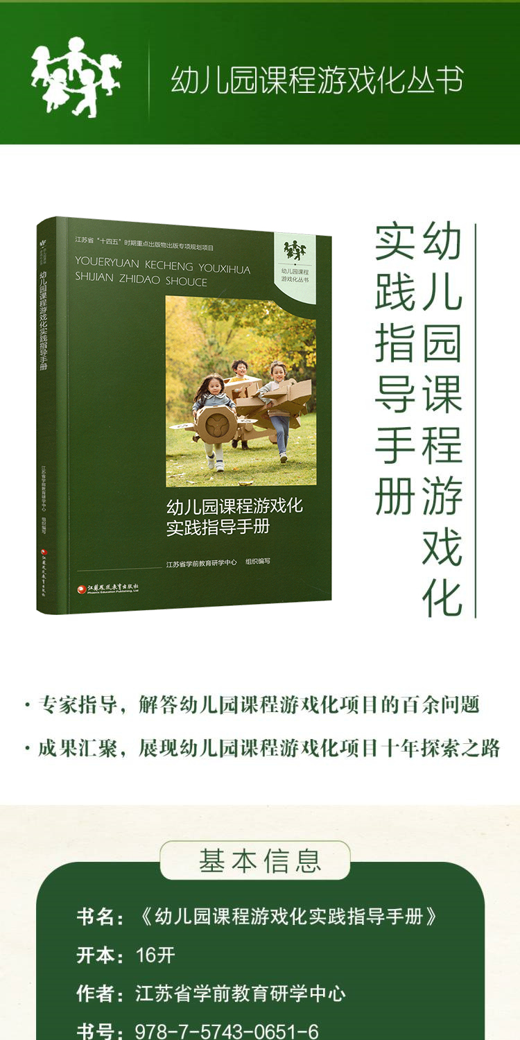 幼儿园课程游戏化实践指导手册 学前教育游戏课教学研究 课程游戏化的理念 从理念到行动等 学前教育 江苏凤凰教育出版社