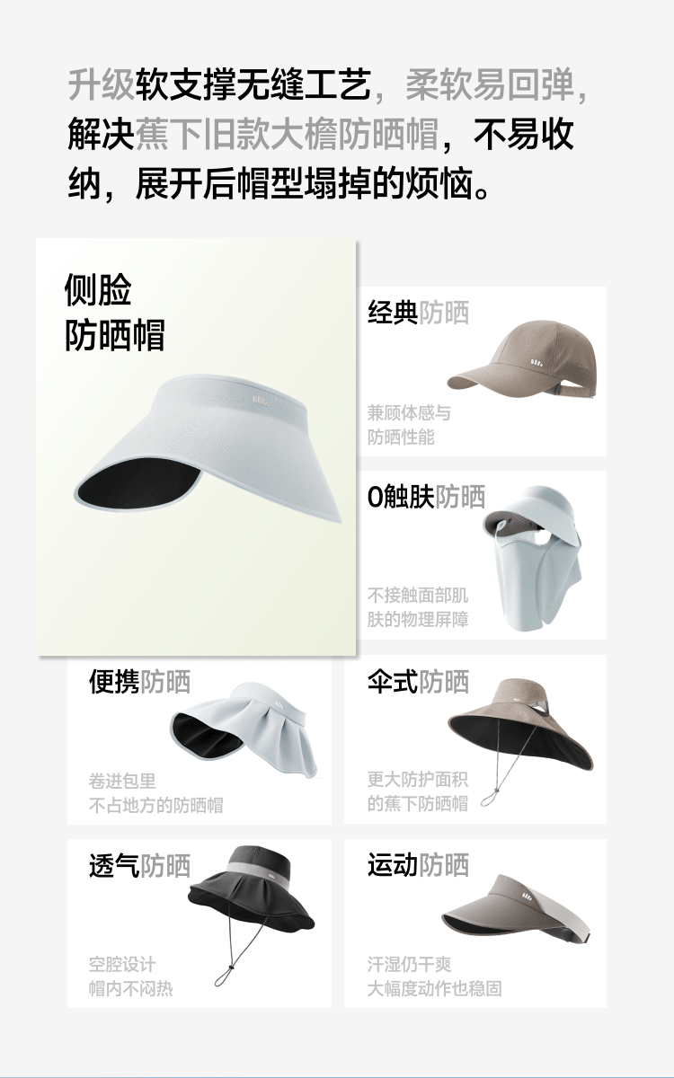【26春夏新品】蕉下女士一体无痕灯罩防晒帽UL712