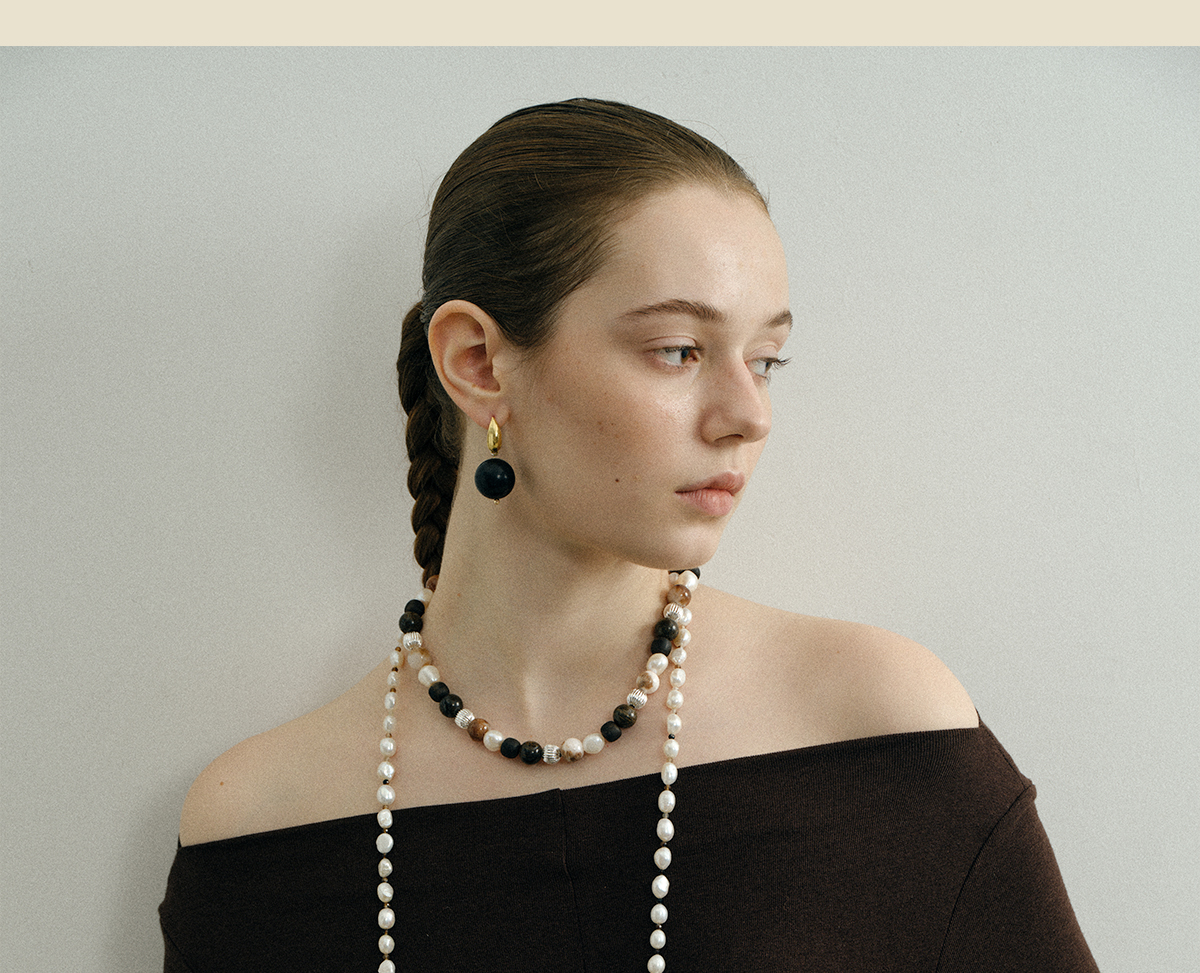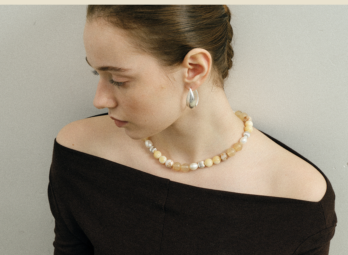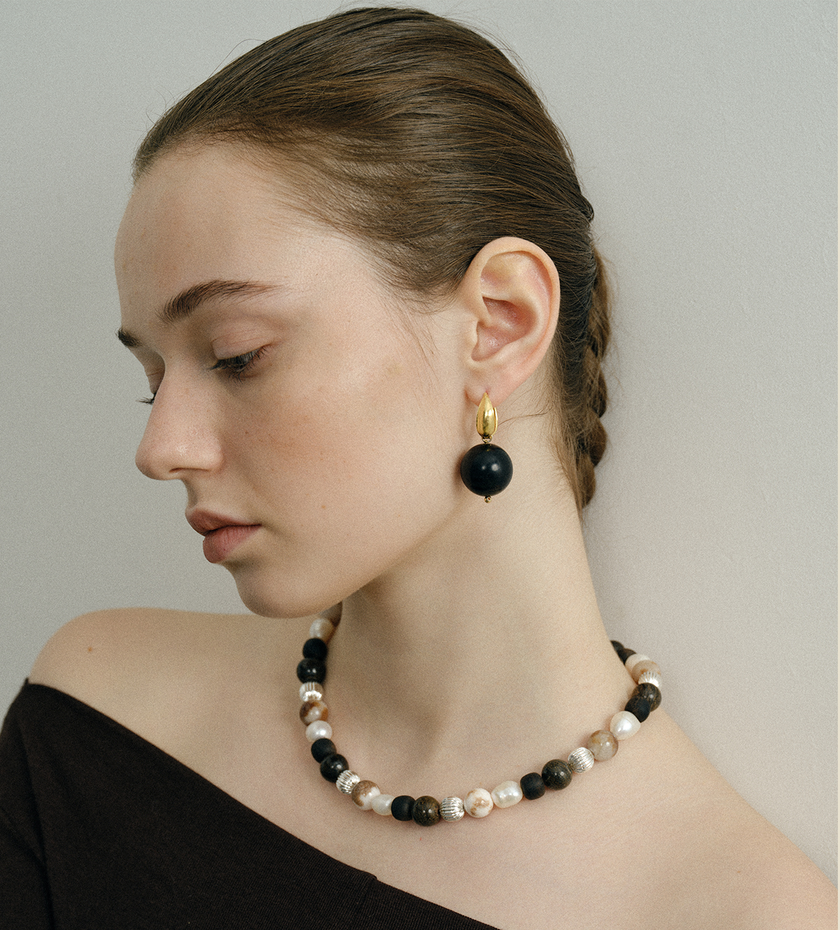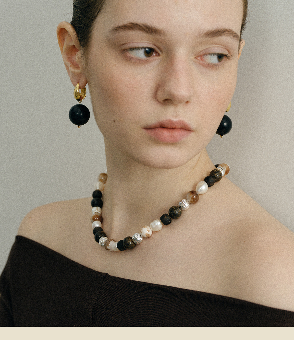 SOFT ROOM 木果造型茶花色黄玉髓/黑檀木咖啡玉髓大串珠项链