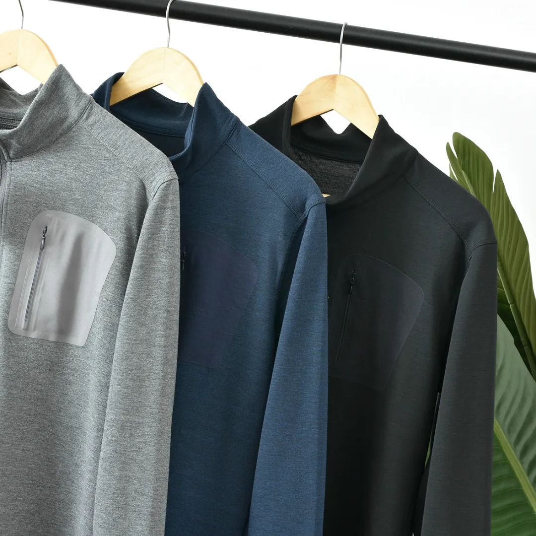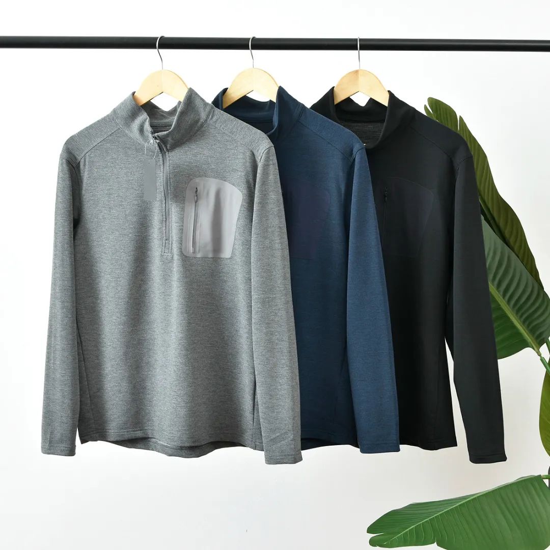 PhasicARII定制面料 男士1/2拉链压胶口袋套头运动休闲打底衫长袖