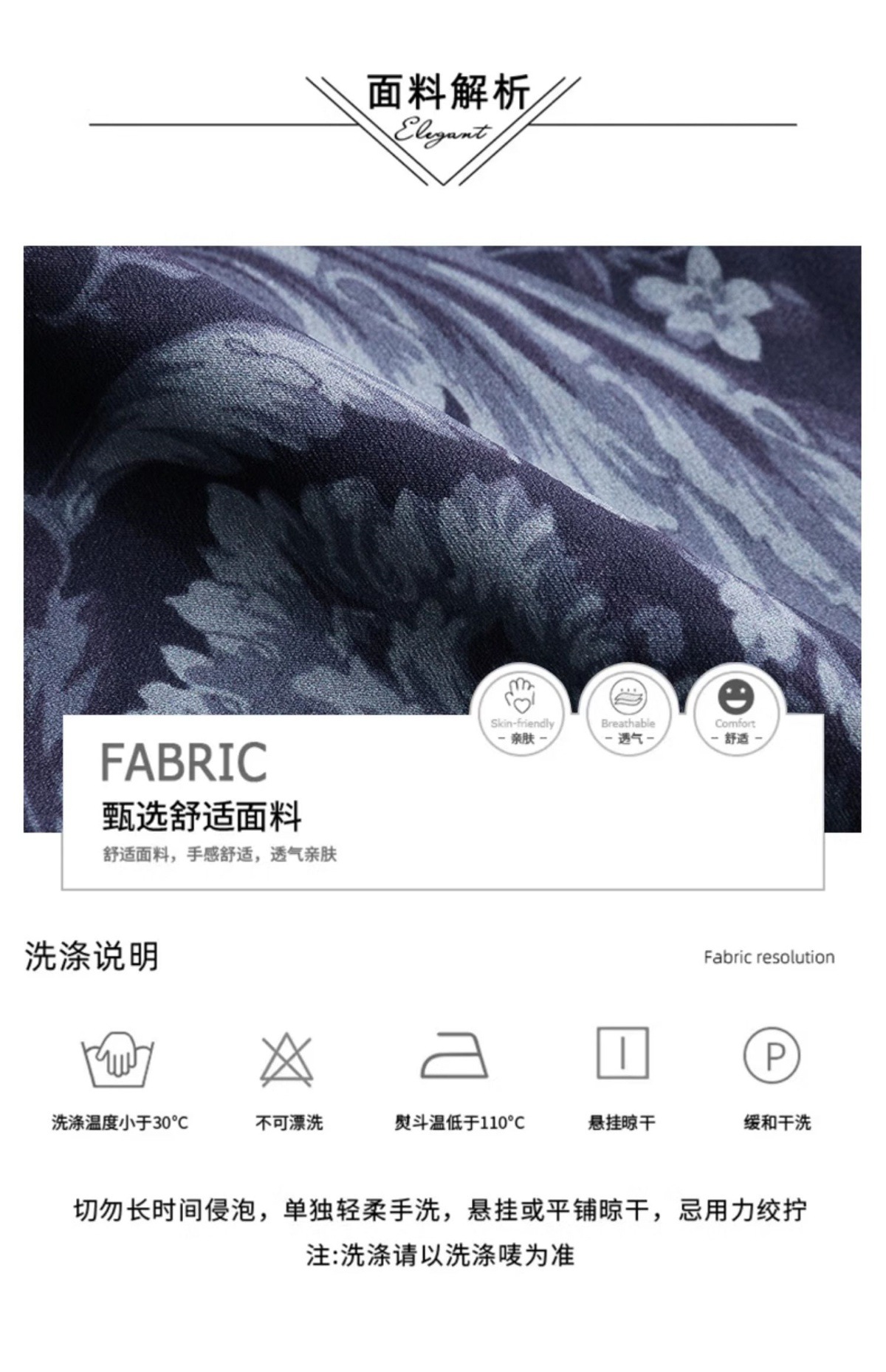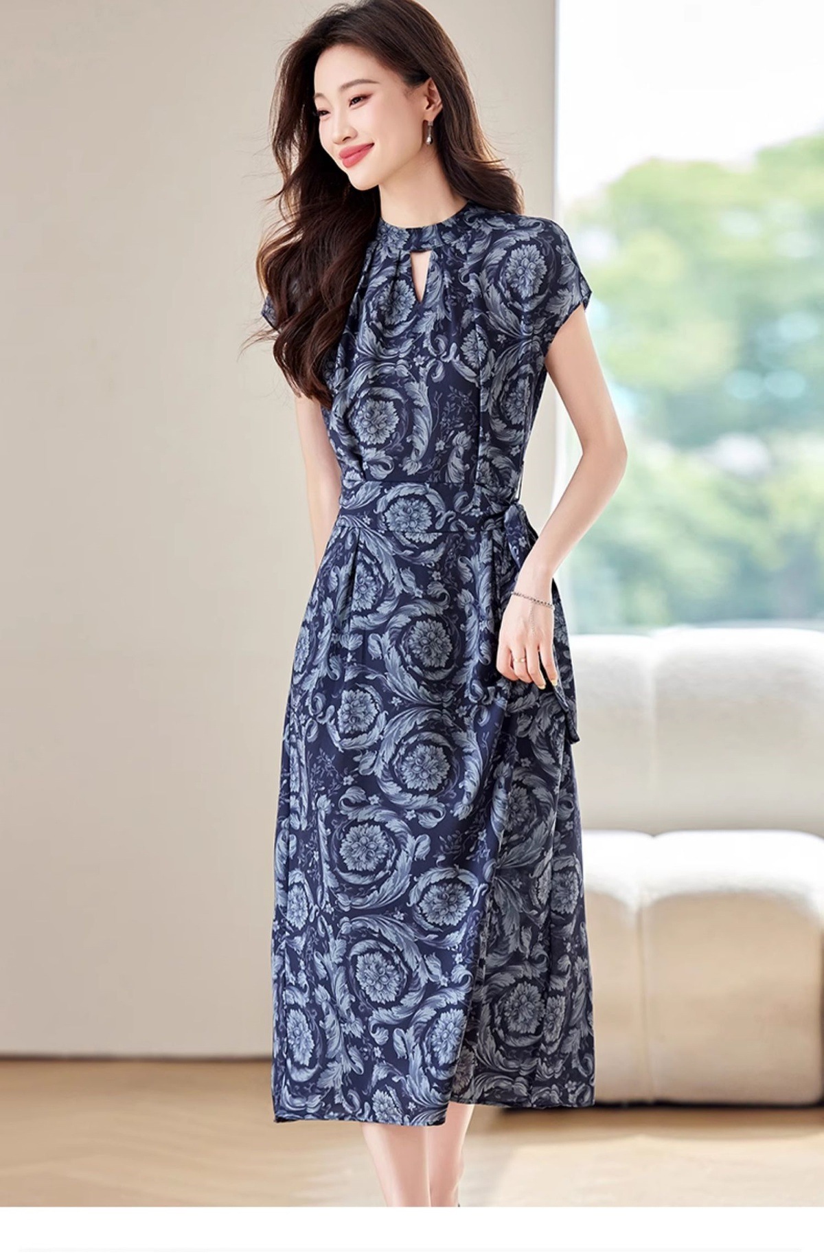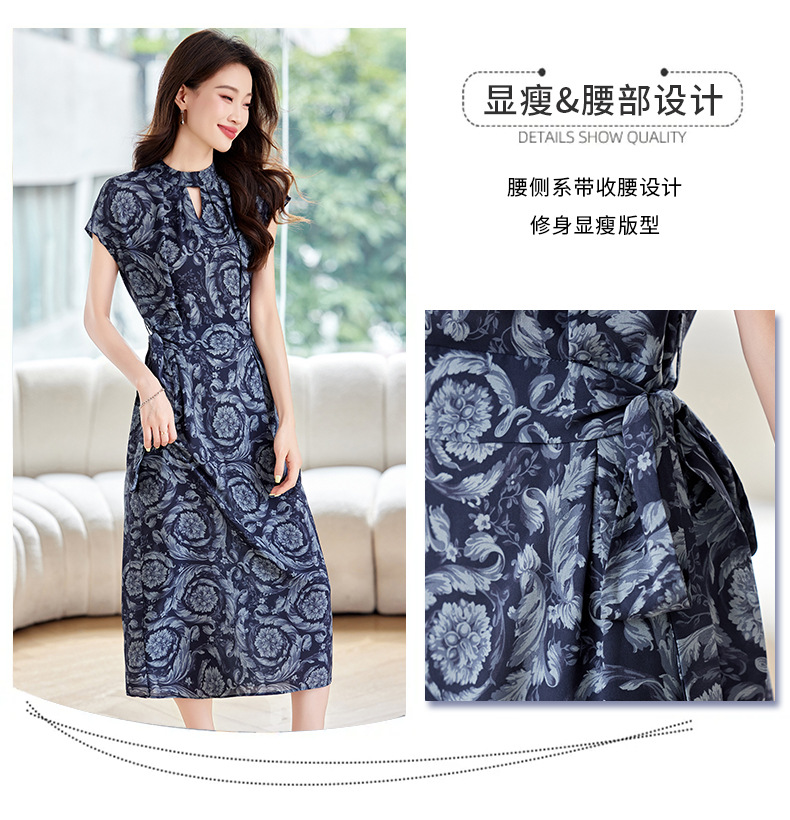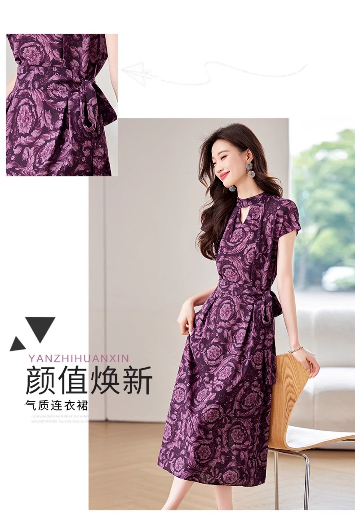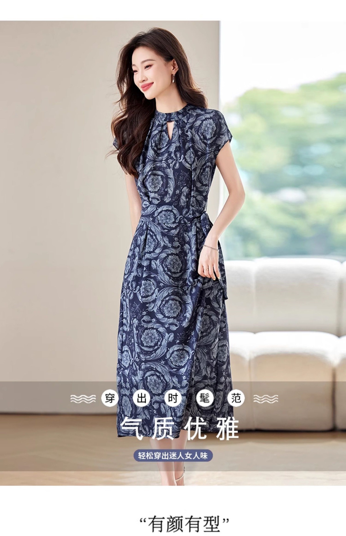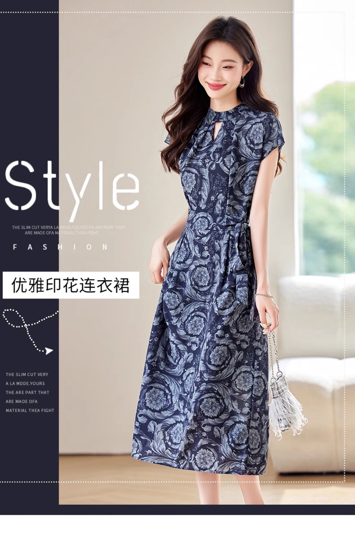 气质碎花连衣裙,翻领收腰显瘦妈妈印花裙子HR-LMYS8847A