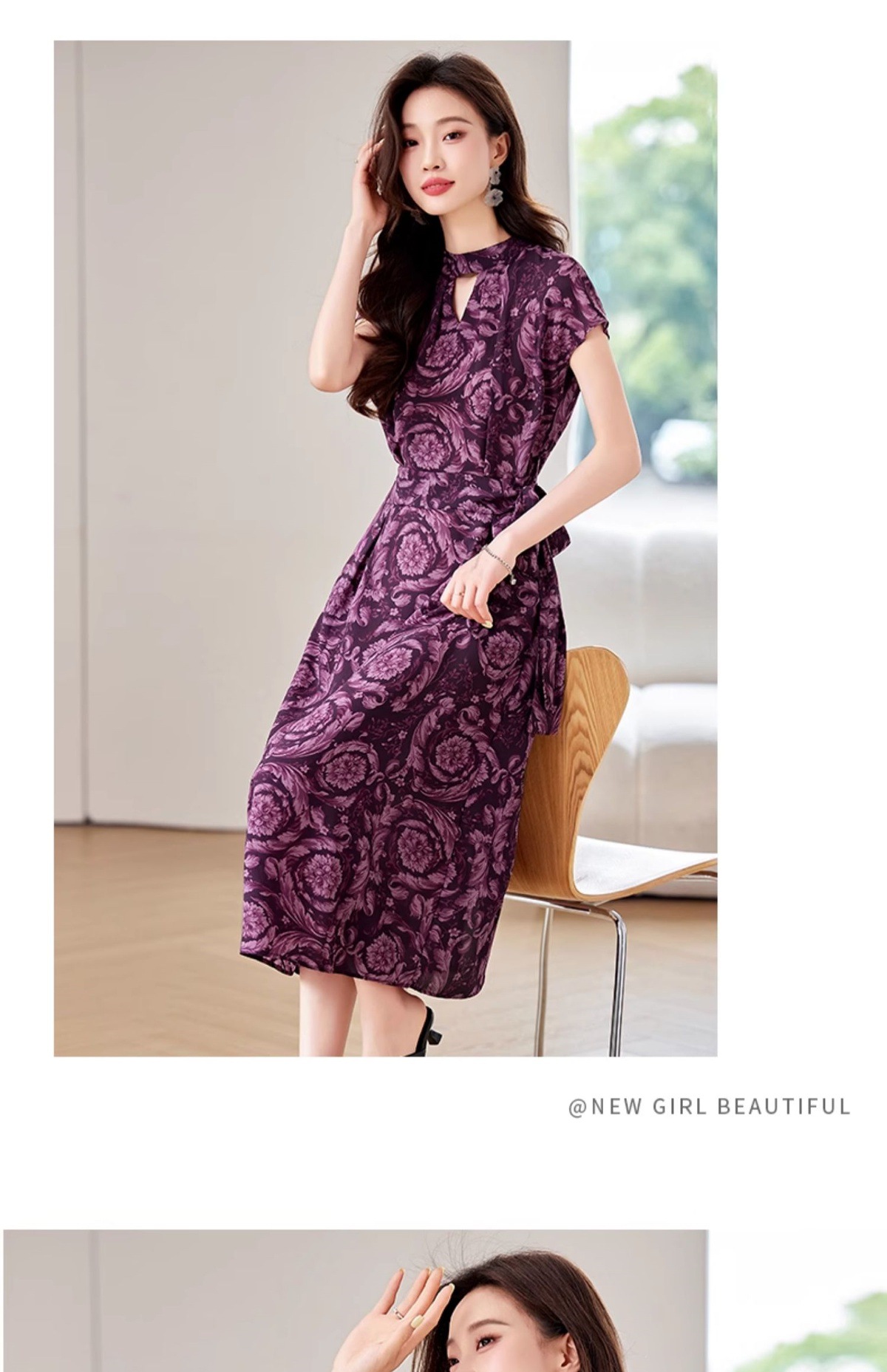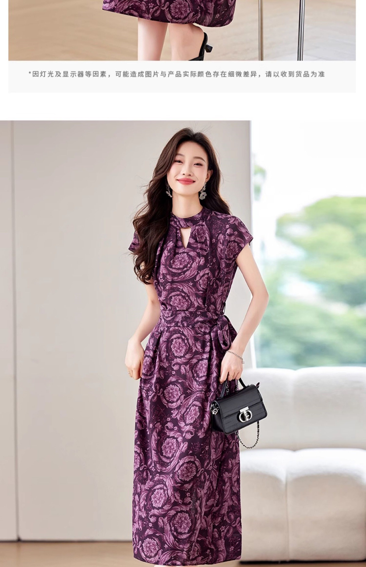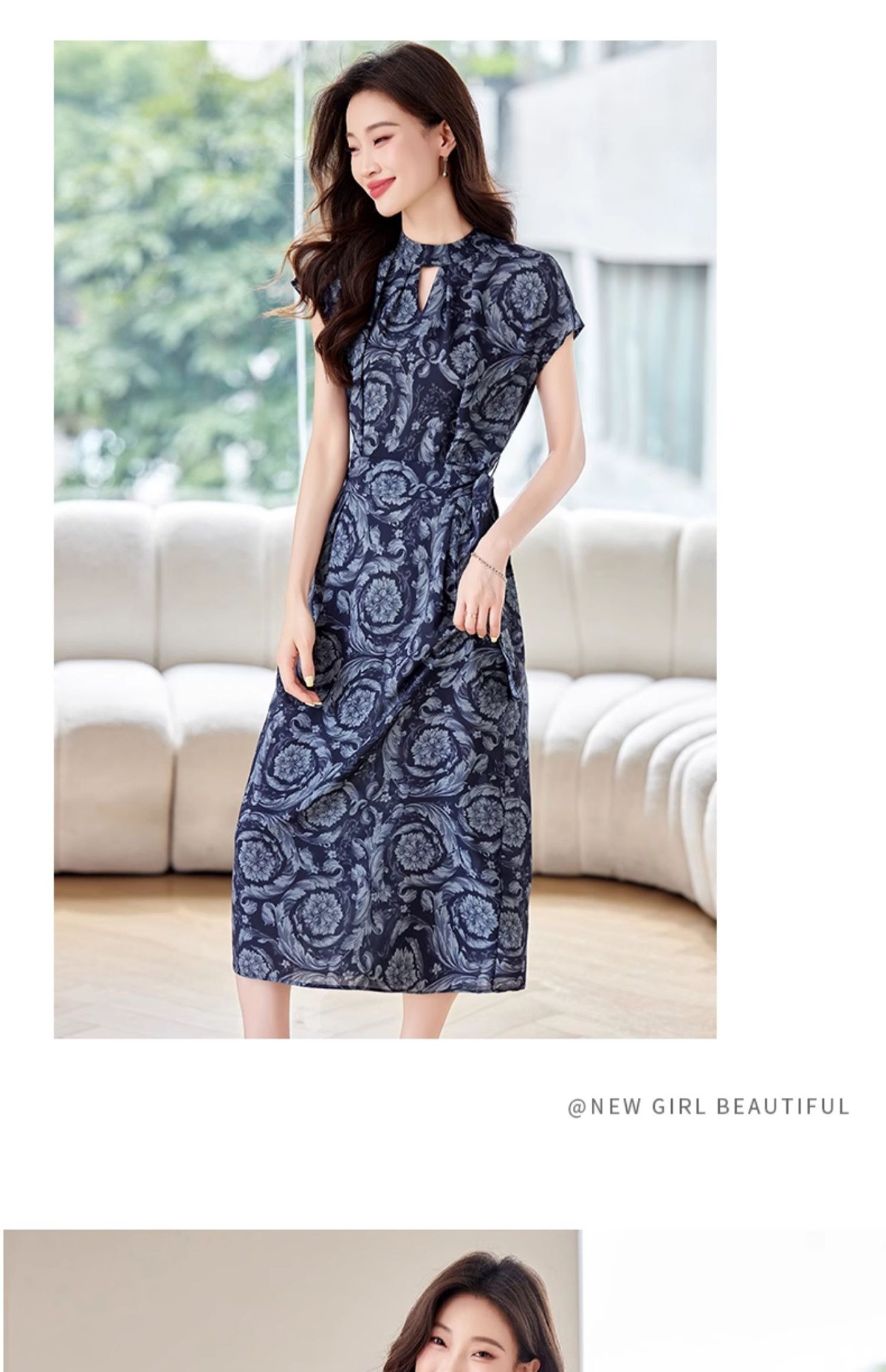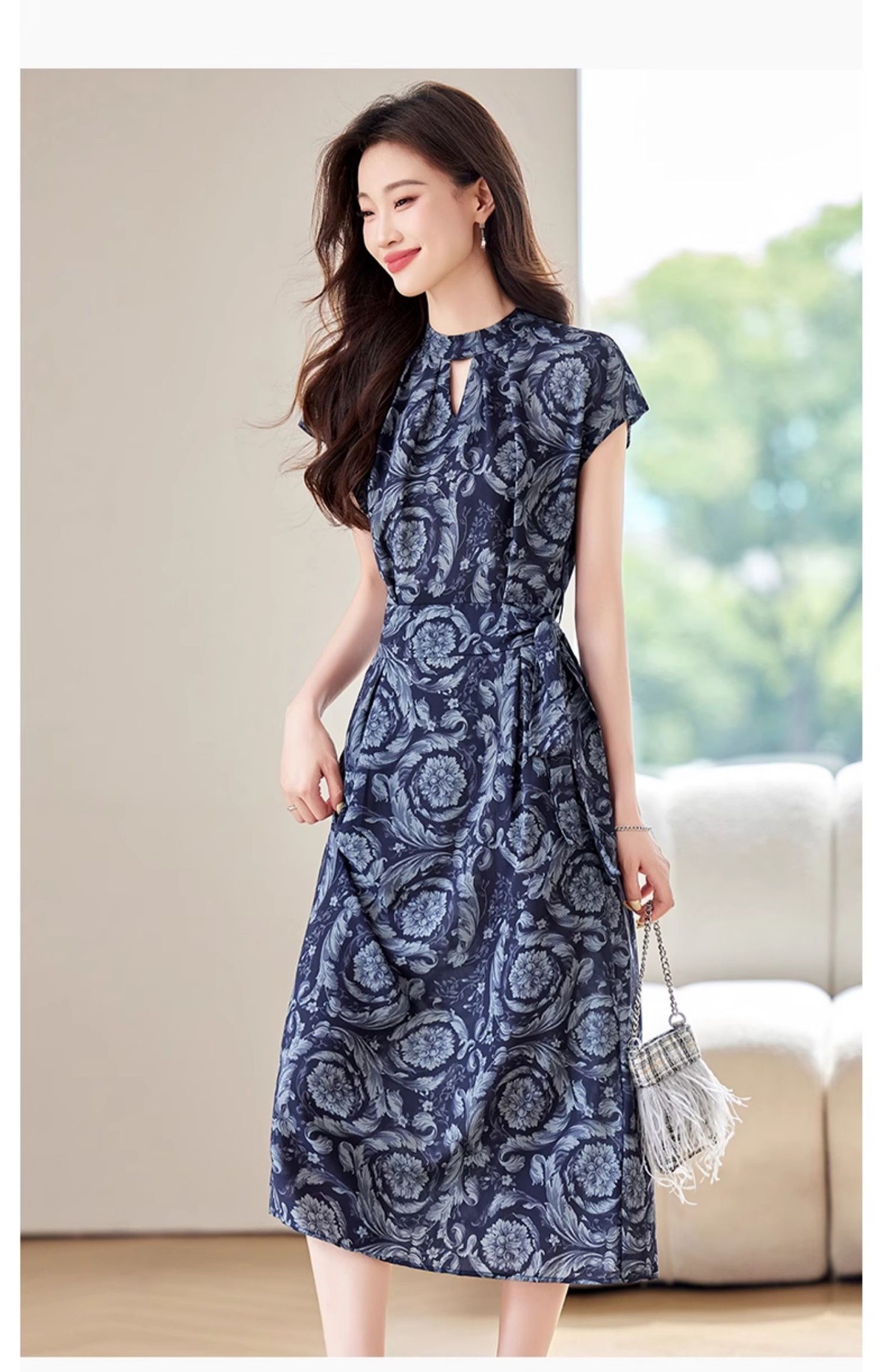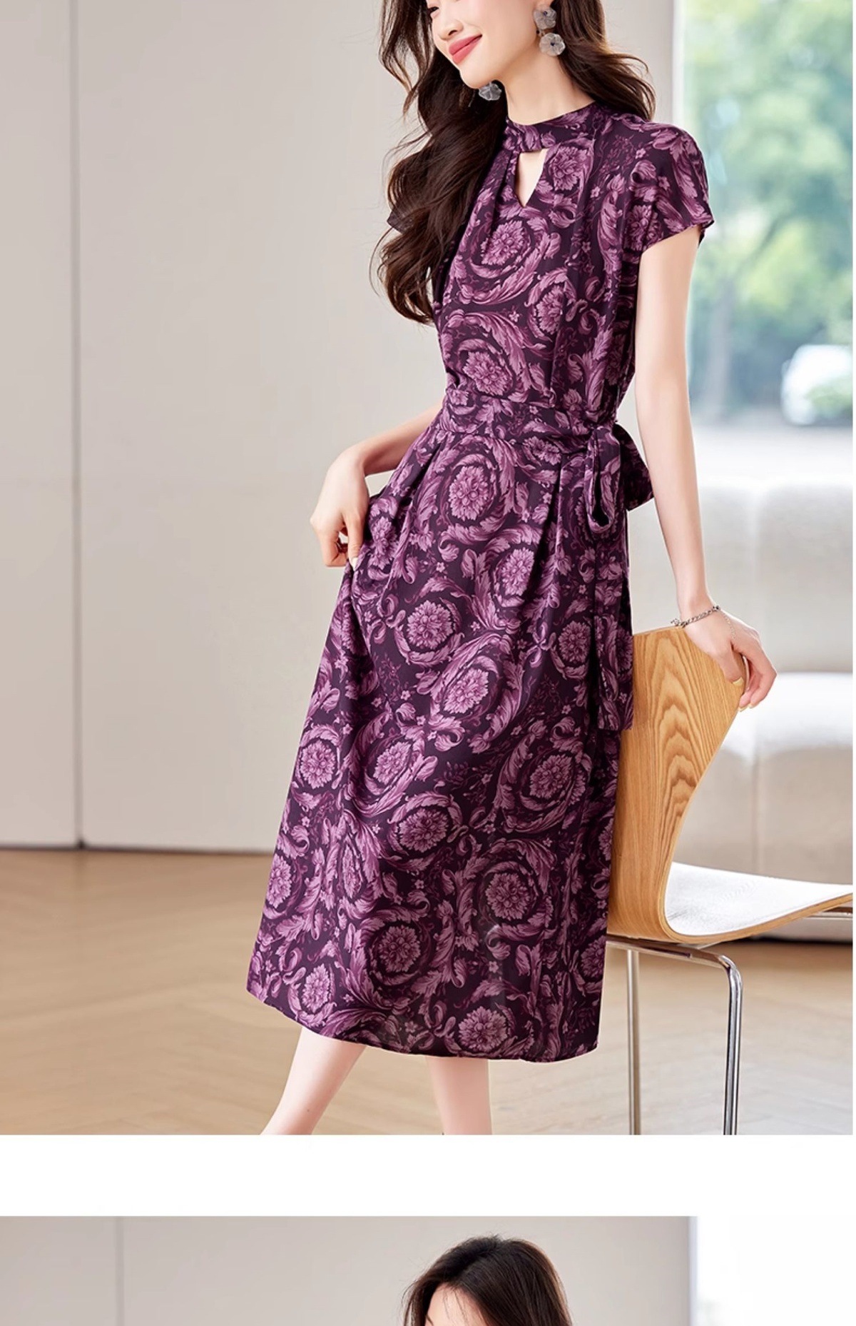 气质碎花连衣裙,翻领收腰显瘦妈妈印花裙子HR-LMYS8847A