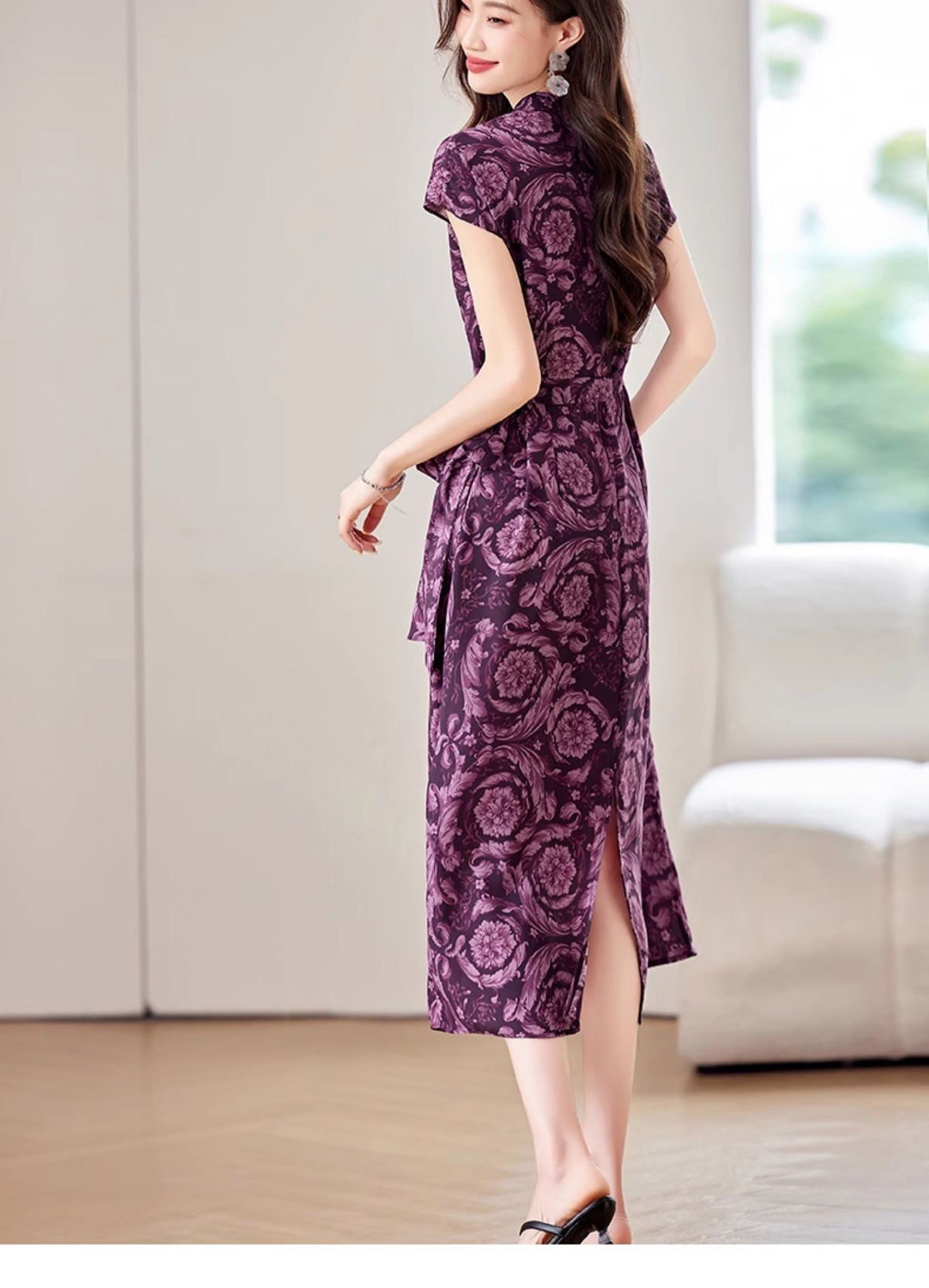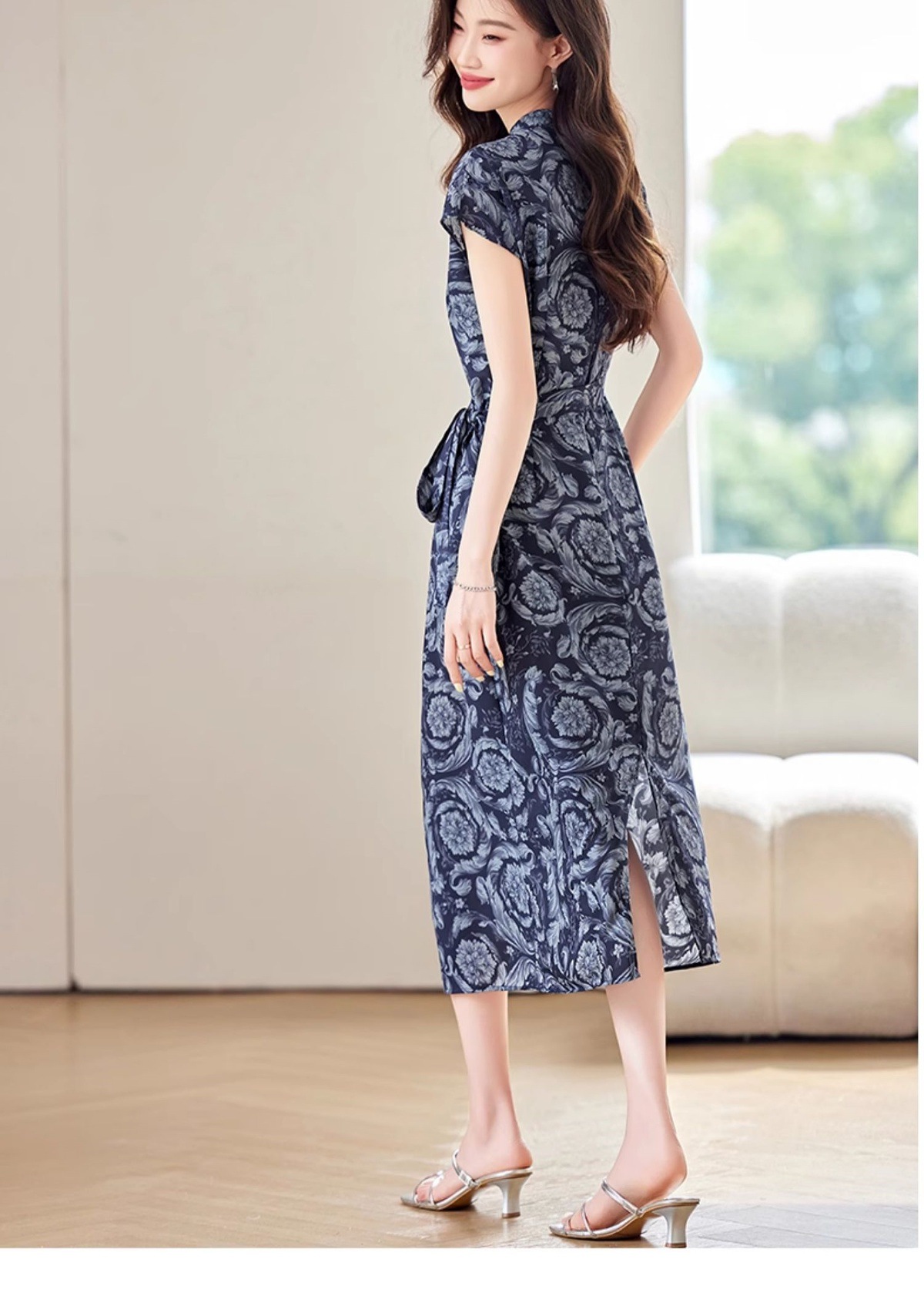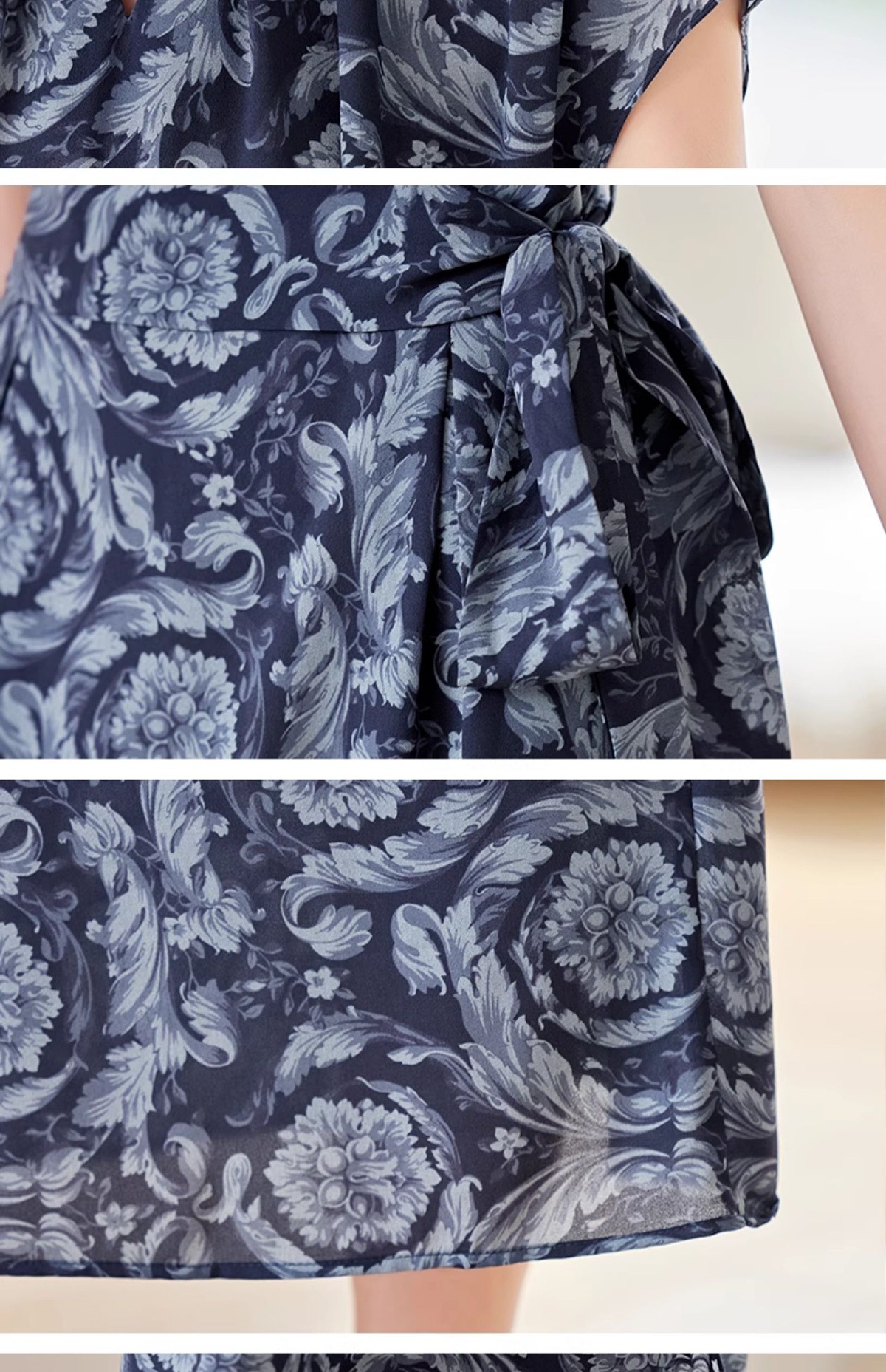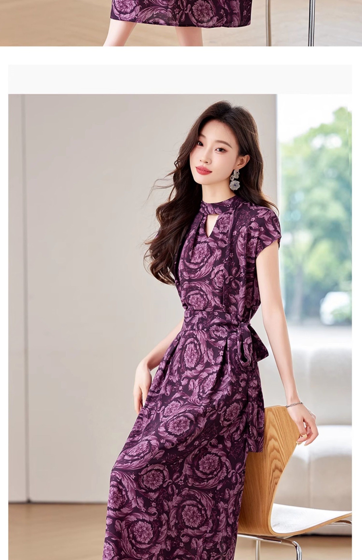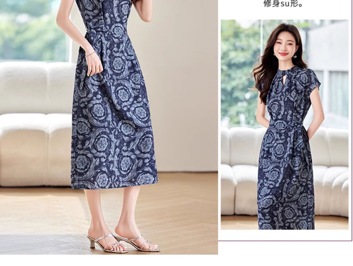 气质碎花连衣裙,翻领收腰显瘦妈妈印花裙子HR-LMYS8847A