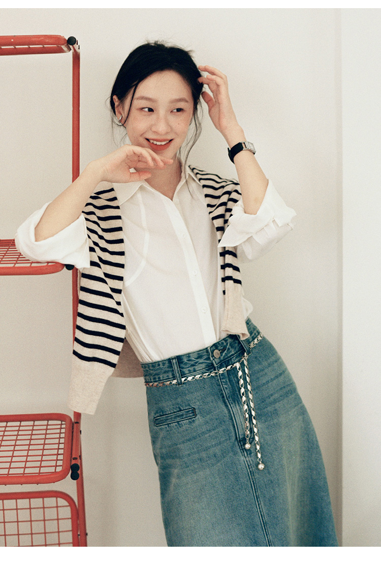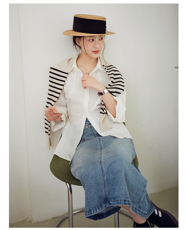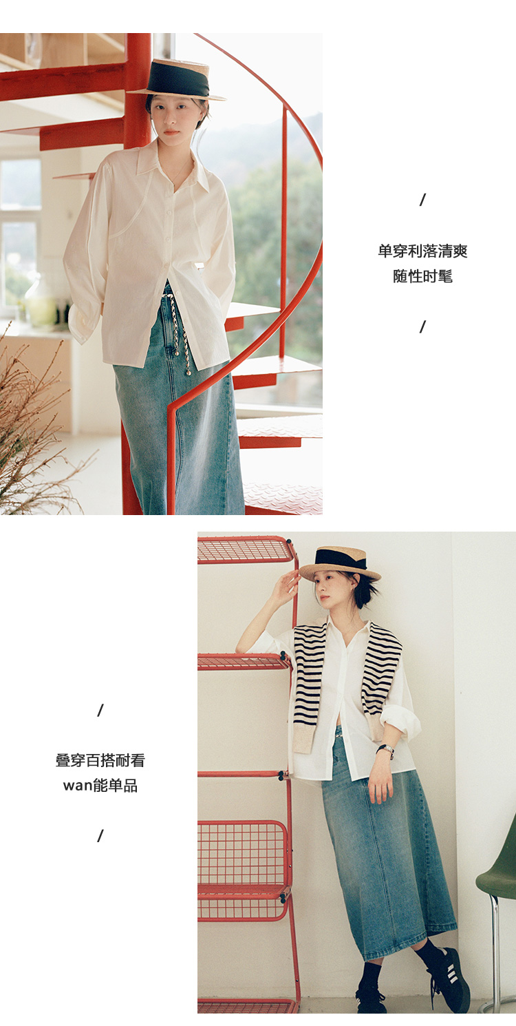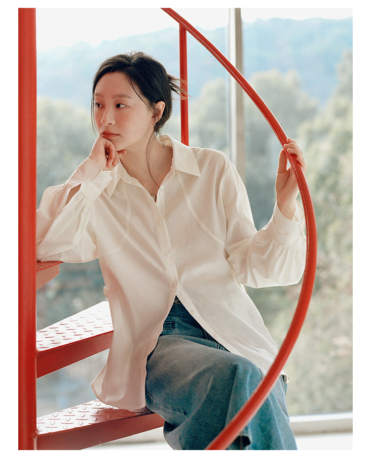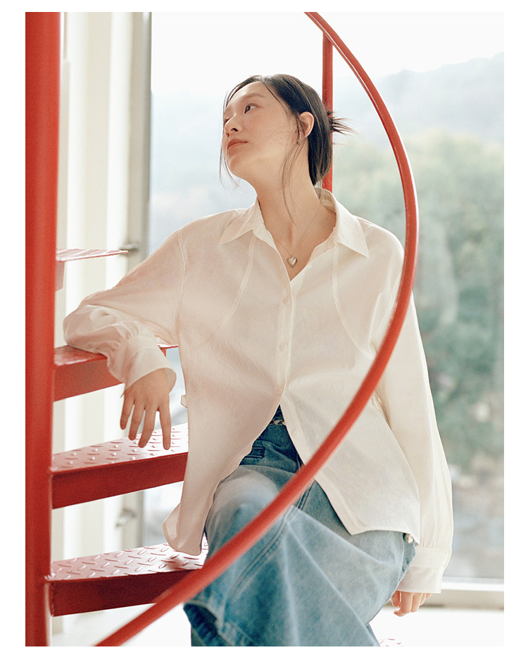 Even Vintage | 百搭天丝般质感直角肩白衬衫女圆弧分割收腰衬衣