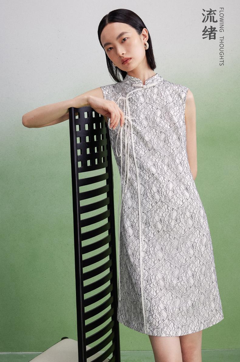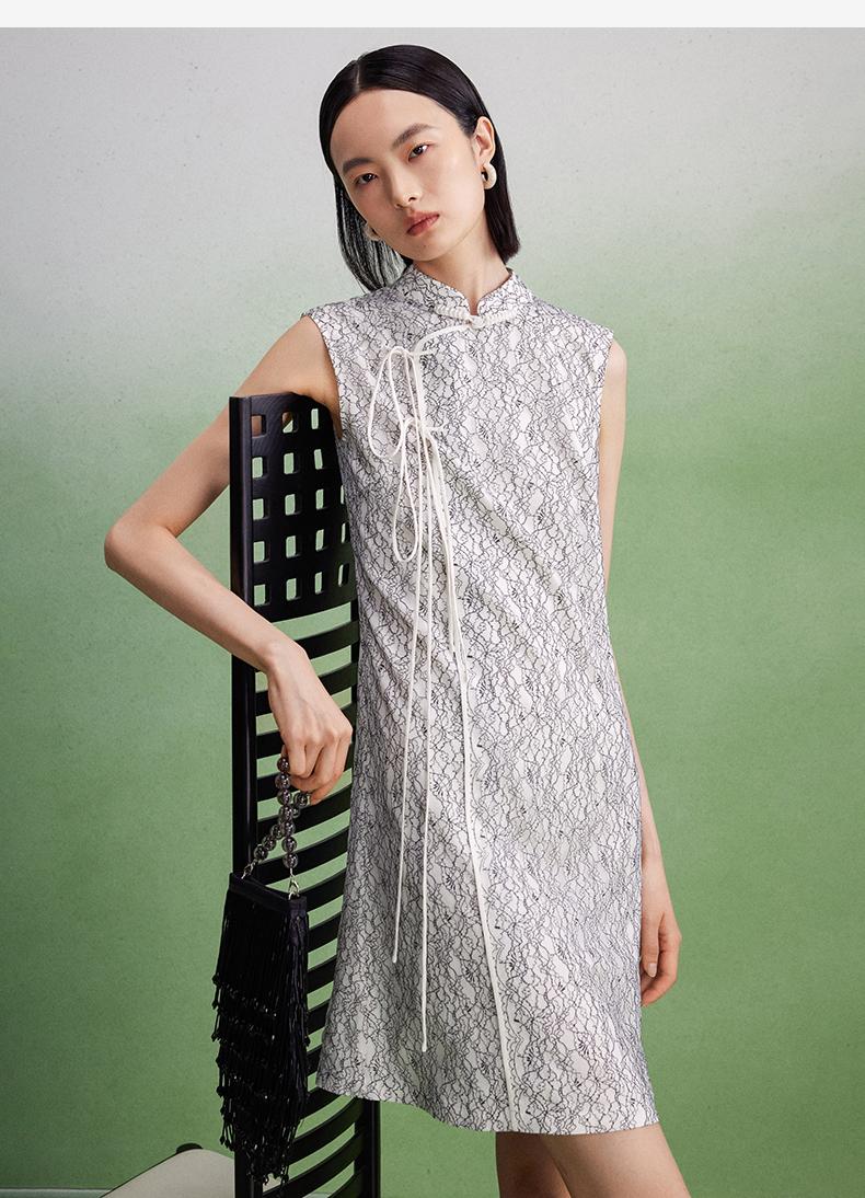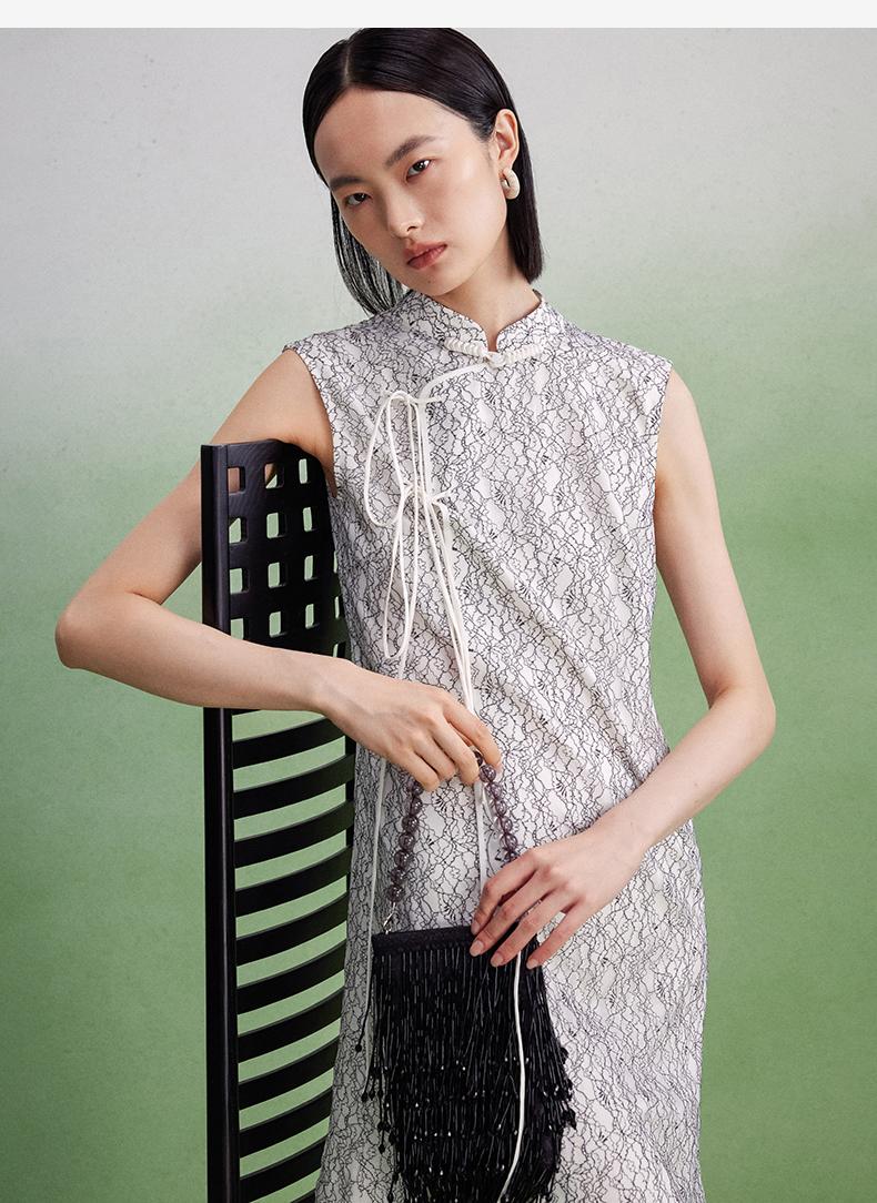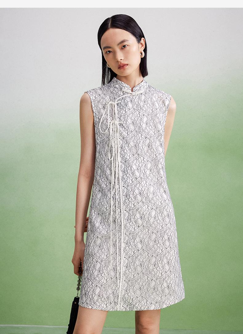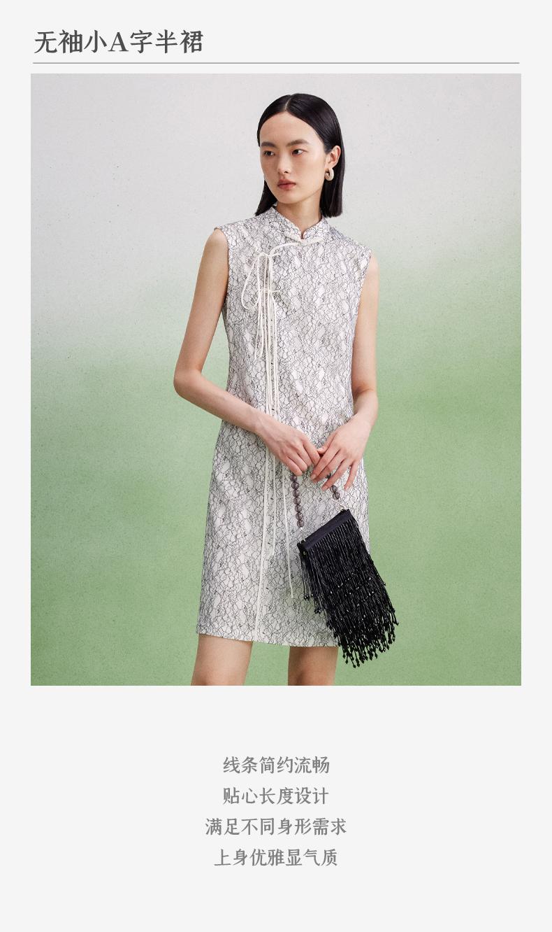 西嘉【现货】C+IMPRESS/西嘉醋酸底山茶花蕾丝无袖新中式连衣裙女高端精致裙子LYQ2402048
