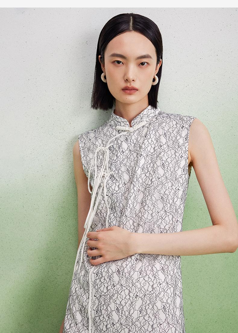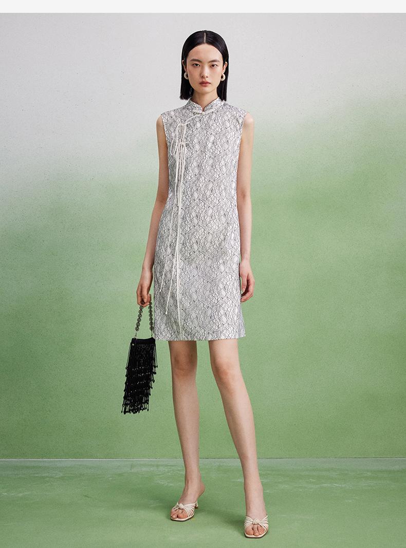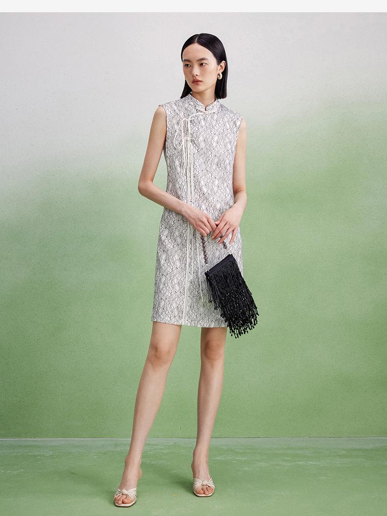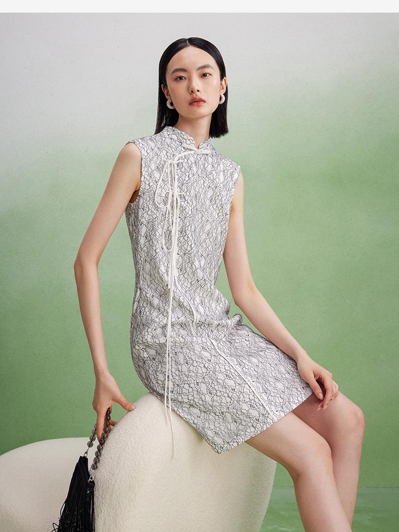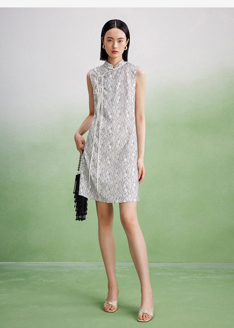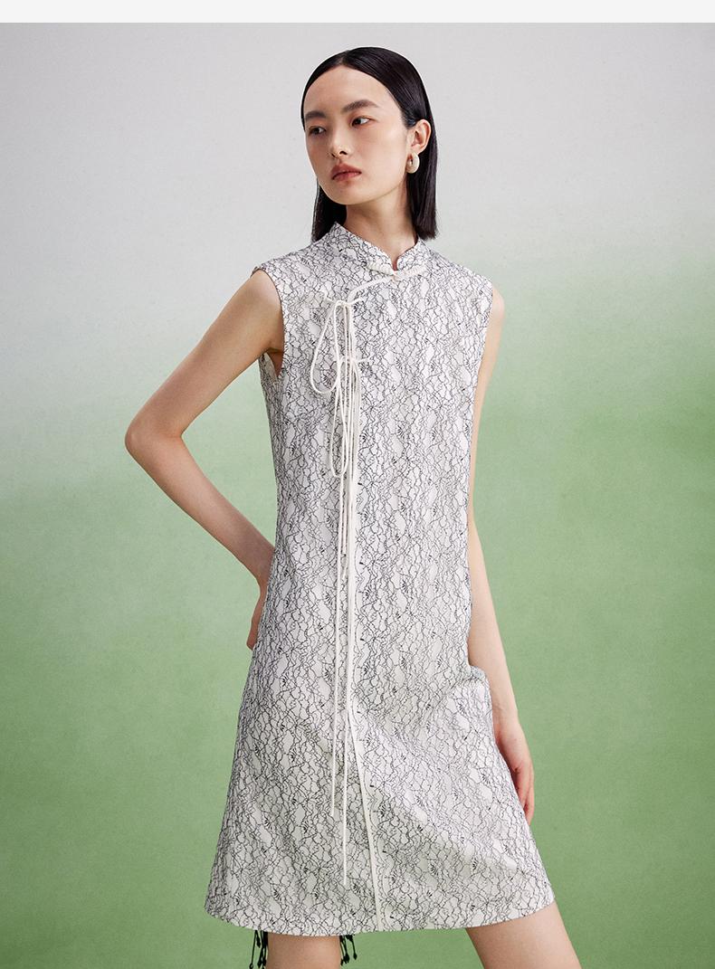 西嘉【现货】C+IMPRESS/西嘉醋酸底山茶花蕾丝无袖新中式连衣裙女高端精致裙子LYQ2402048