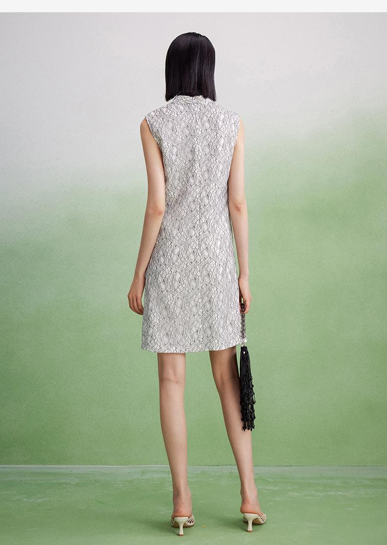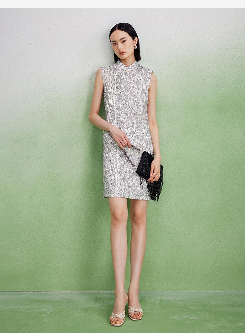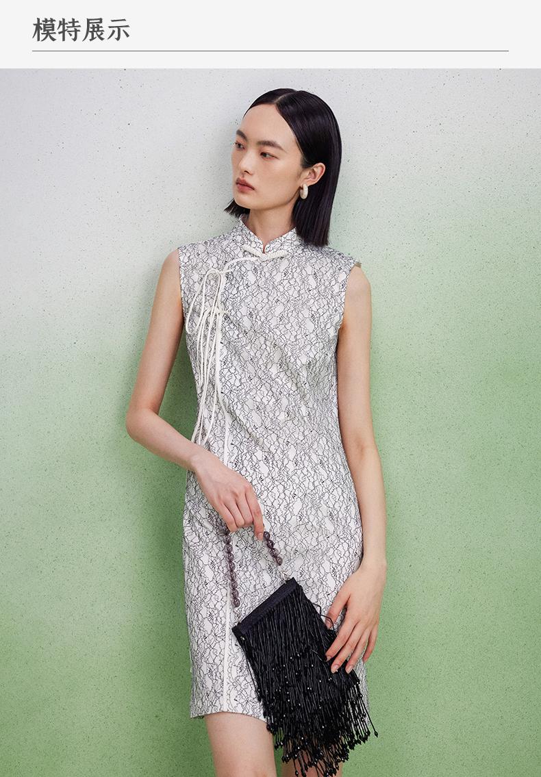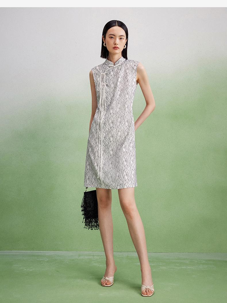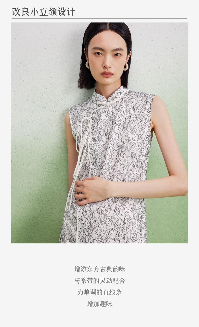 西嘉【现货】C+IMPRESS/西嘉醋酸底山茶花蕾丝无袖新中式连衣裙女高端精致裙子LYQ2402048