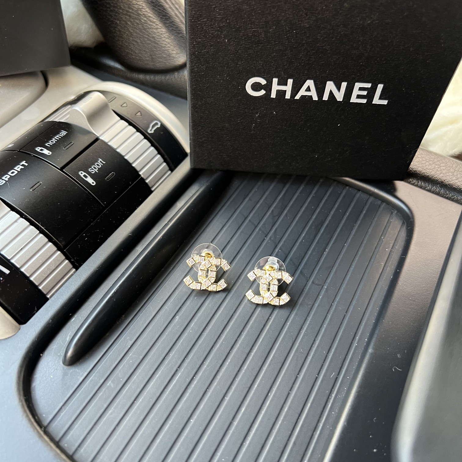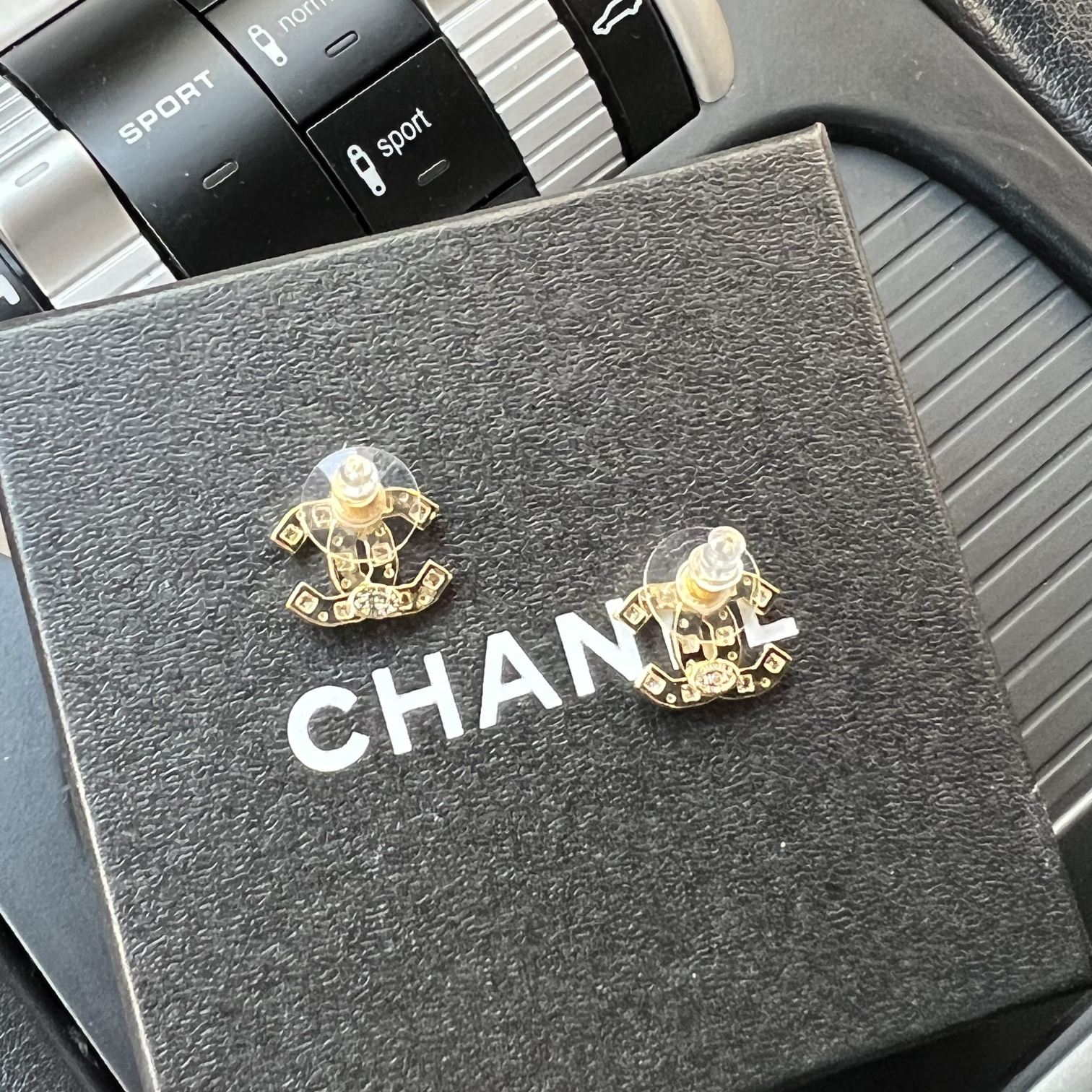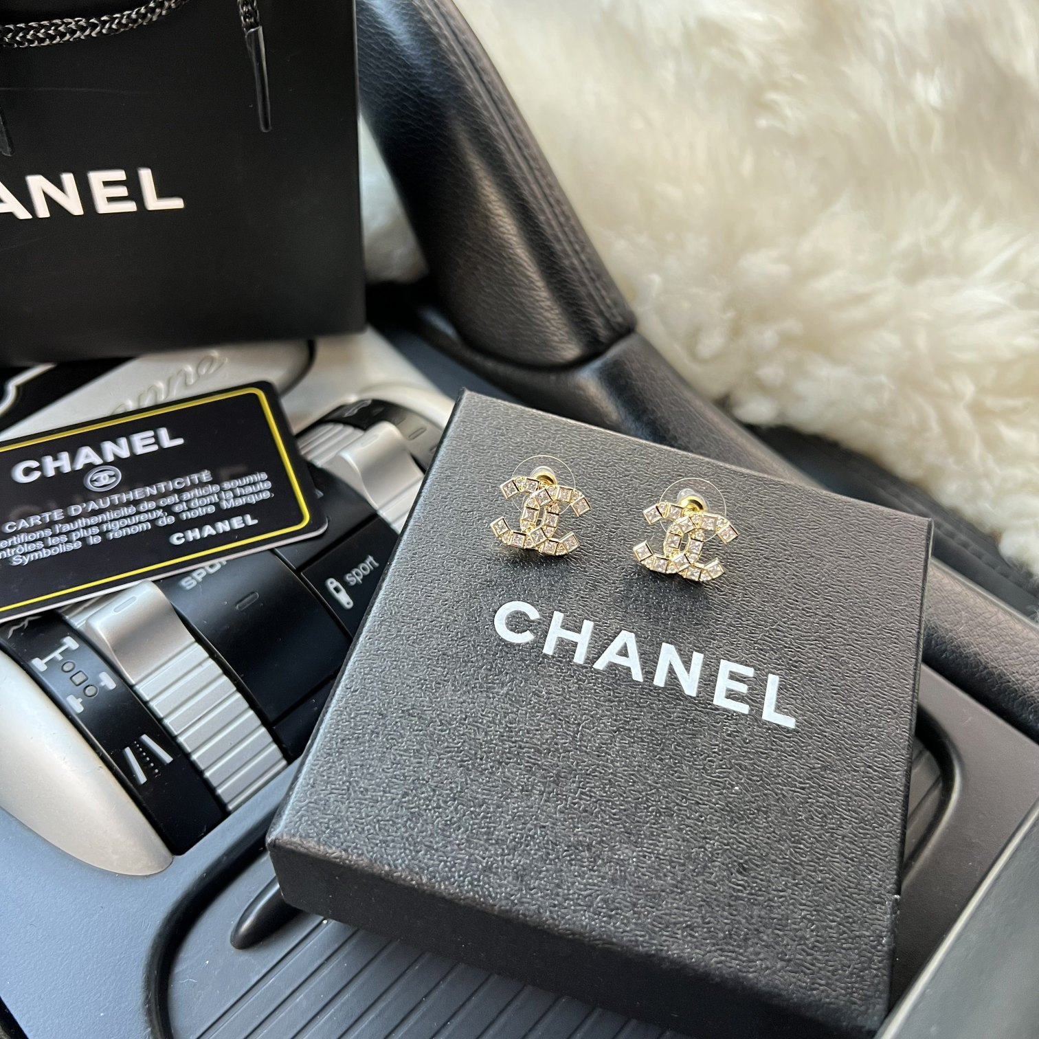 香奈儿CHANEL黄铜水晶镶嵌双C方钻系列耳钉