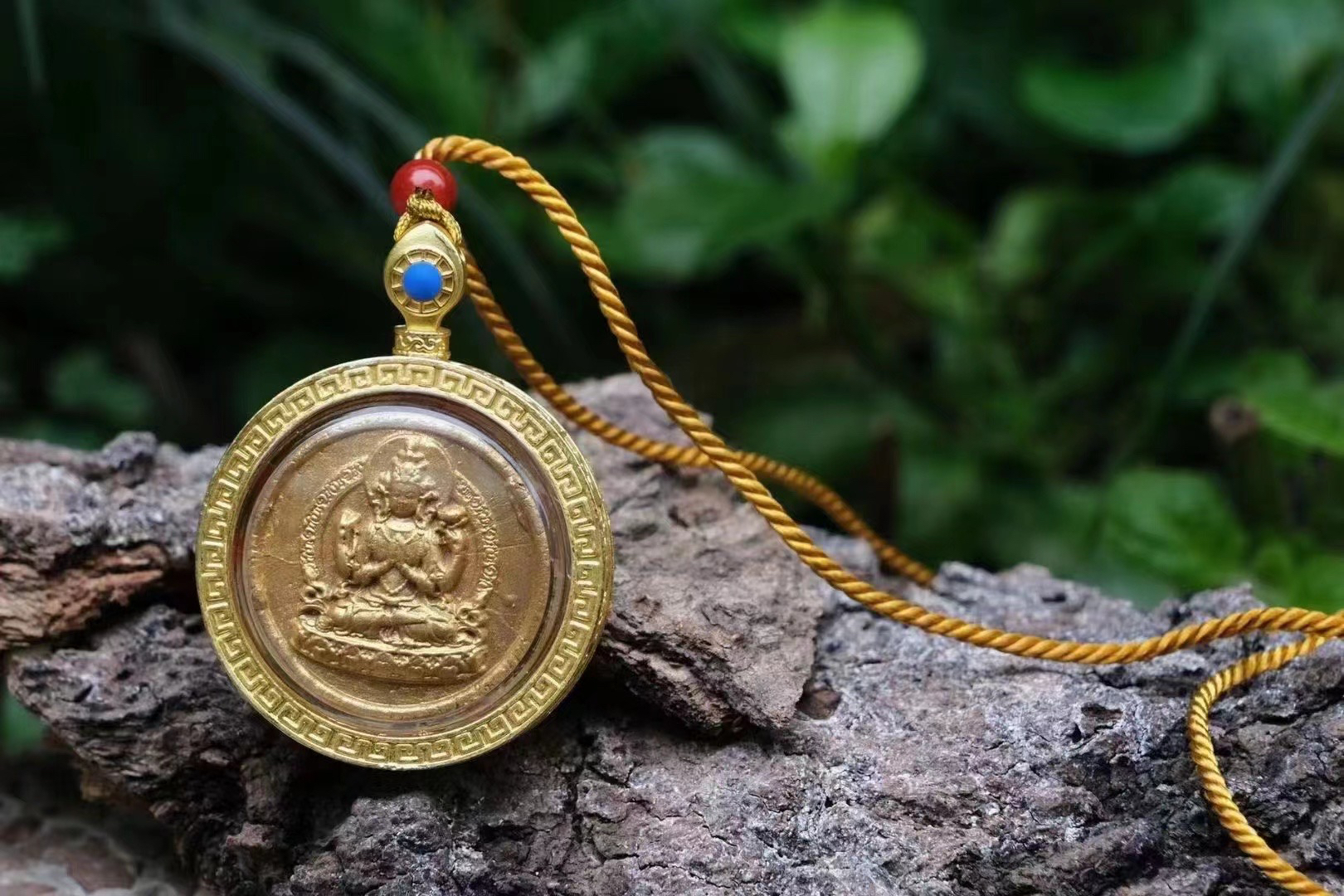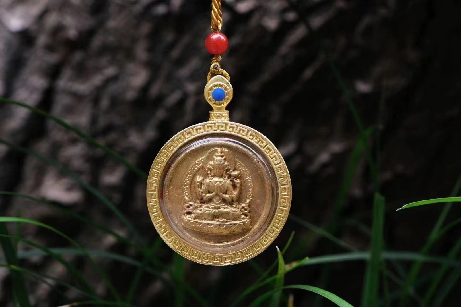 亚青四臂观音佛像款泥擦擦纯铜挂件吊坠