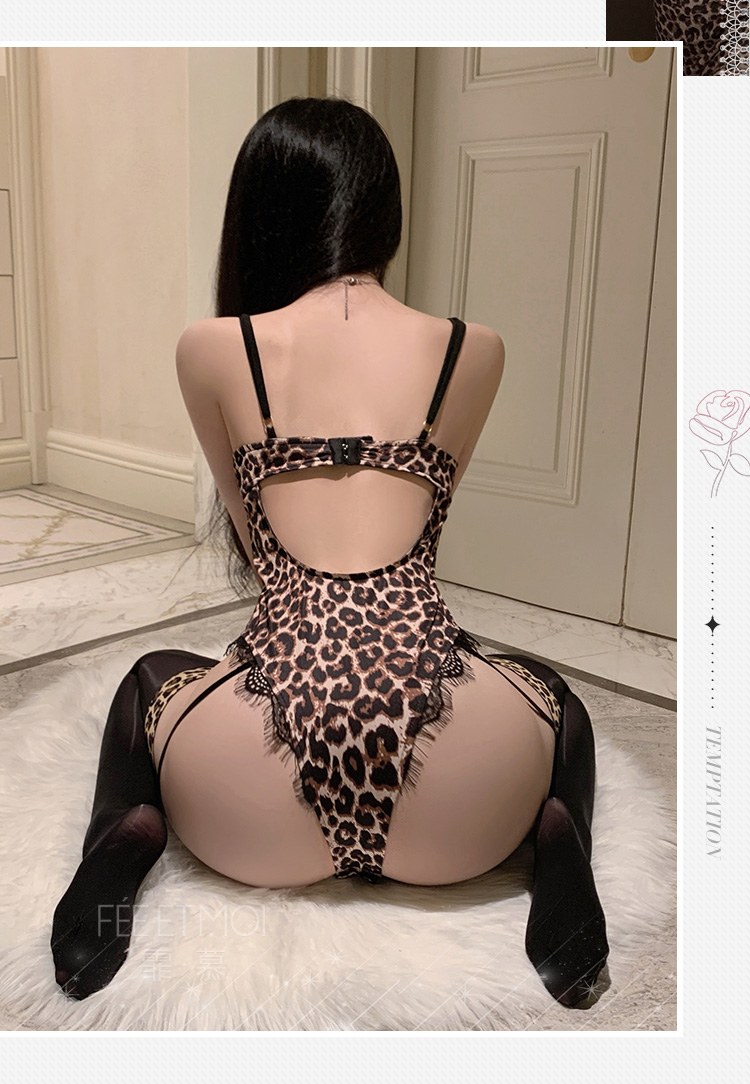 【情趣内衣】霏慕 惹火小豹暗扣开裆连体衣7014