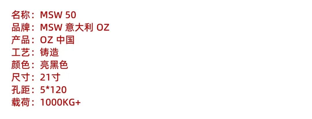 MSW 50 进口轮圈21寸 5*120 OZ子品牌 进口品牌 新能源 理想L9